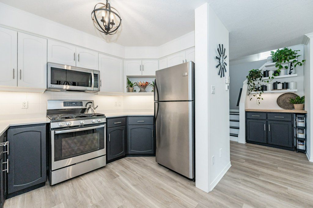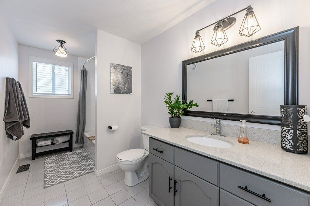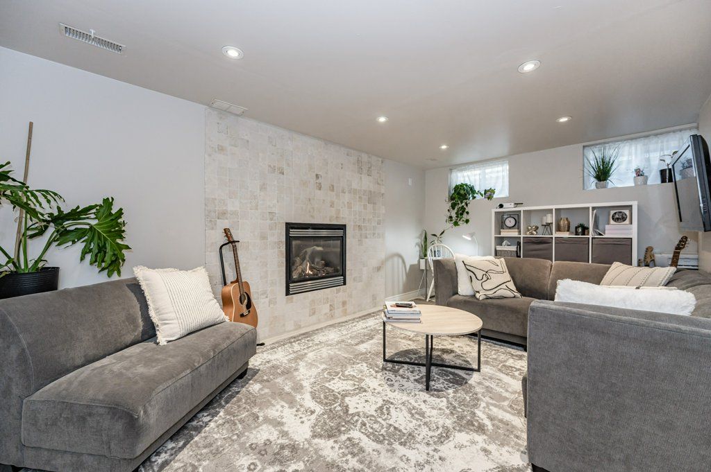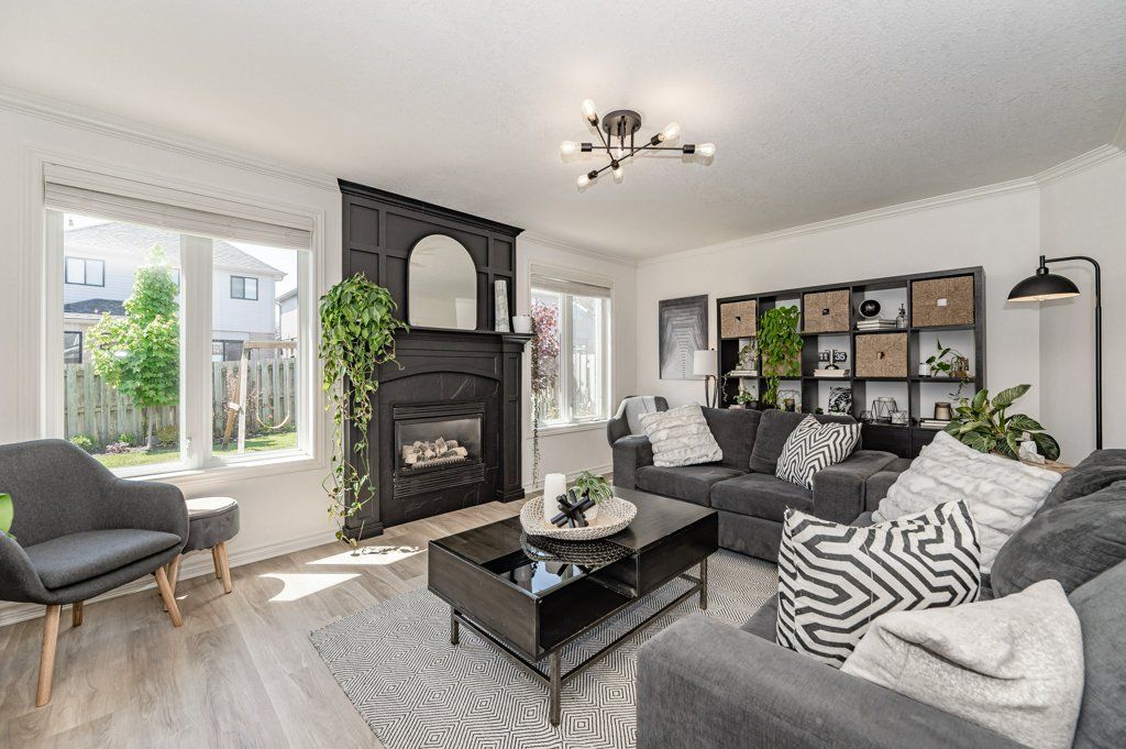 Stunning 3-bedrm home has been renovated from top to bottom & is in highly sought-after family neighbourhood! Spacious foyer offers double closet. Eat-in kitchen W/trendy 2-toned cabinetry, white quartz counters, backsplash, S/S appliances including gas stove, light fixtures & B/I coffee bar! Bright & airy living room W/new luxury vinyl floors & striking floor-to-ceiling gas fireplace nestled in between 2 large windows. Completing this level is renovated 2pc bath W/quartz counters. Upstairs is spacious master bdrm W/solid hardwood, large window & W/I closet. 4pc ensuite W/stone walls & shower/tub. 2 additional bdrms both with large windows & ample closet space. 4pc main bath W/oversized vanity & quartz counters complete upper level. Finished bsmt W/large rec room W/ample pot lighting, large windows & gas fireplace W/floor-to-ceiling stone mantel. There are 2 double closets for additional storage space & 3pc bath. Relaxing on covered porch overlooking beautifully landscaped backyard.Around the corner from William C. Winegard PS & Lee St Park offering fenced-in off-leash area. Walking distance of Holy Trinity Catholic School. Mins from groceries, banks, LCBO & more! Less than 5-mins from trails that lead to Guelph Lake.