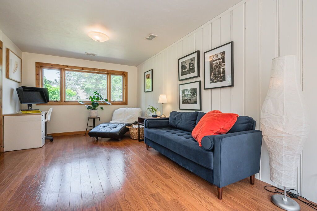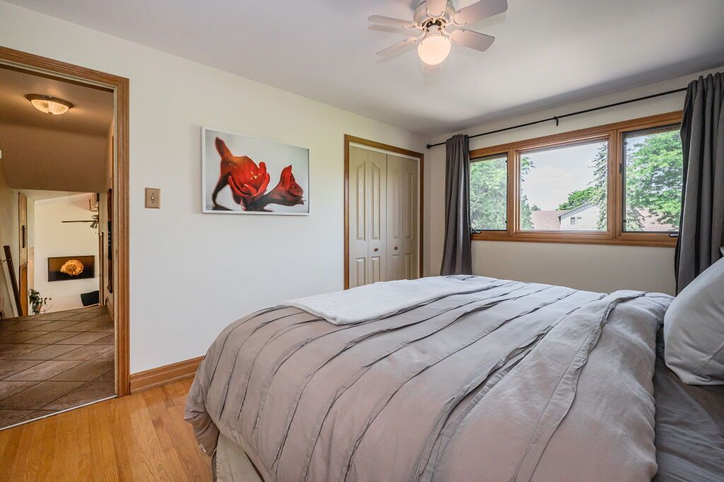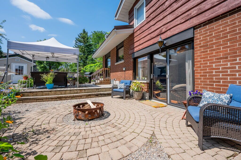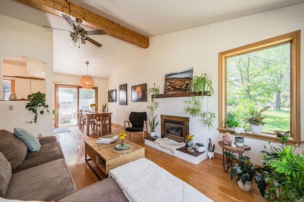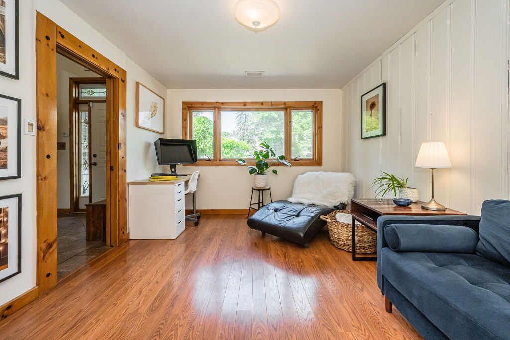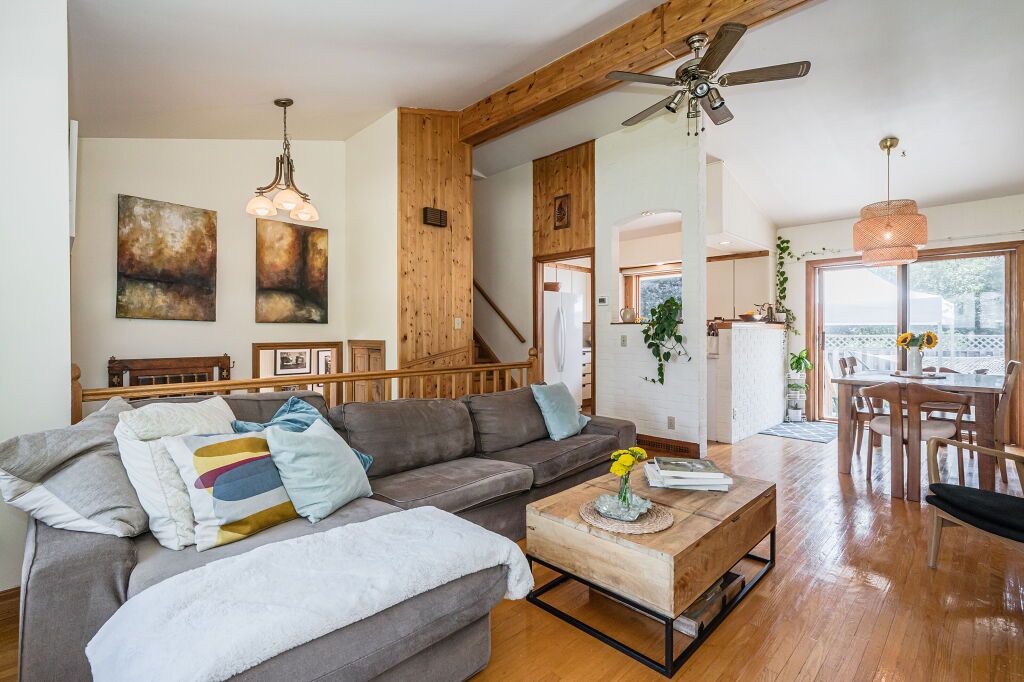 Remarkable 3-bdrm home tucked away on large corner lot on tranquil crescent W/mature trees in highly sought-after family neighbourhood! Sacious foyer W/2-storey ceilings & convenient double closet. Family room has expansive windows & sliding doors that connect the indoor & outdoor spaces flooding area W/natural light. This versatile space is perfect for creating bright & inviting home office, hobby room or cozy retreat for movie nights! Ascend a few steps to great room W/vaulted ceilings, rustic wood beams & solid hardwood floors. Multiple windows illuminate the room W/natural light while elegant gas fireplace creates warm & inviting atmosphere. Open concept dining room offers sliding doors & plenty of space to accommodate large table for hosting dinner parties. Kitchen W/ample cupboard/cabinetry space & window over double sink providing views of backyard. Upstairs primary suite W/double closet & large window. 2 other good-sized bdrms & 4pc bath W/oversized vanity & shower/tub.Bsmt W/laundry room, storage space & renovated 3pc bath W/oversized glass shower & vanity W/quartz counters. Beautiful landscaped yard offers deck for BBQing & interlock patio with B/I firepit. Close to all amenities, schools & Parks!