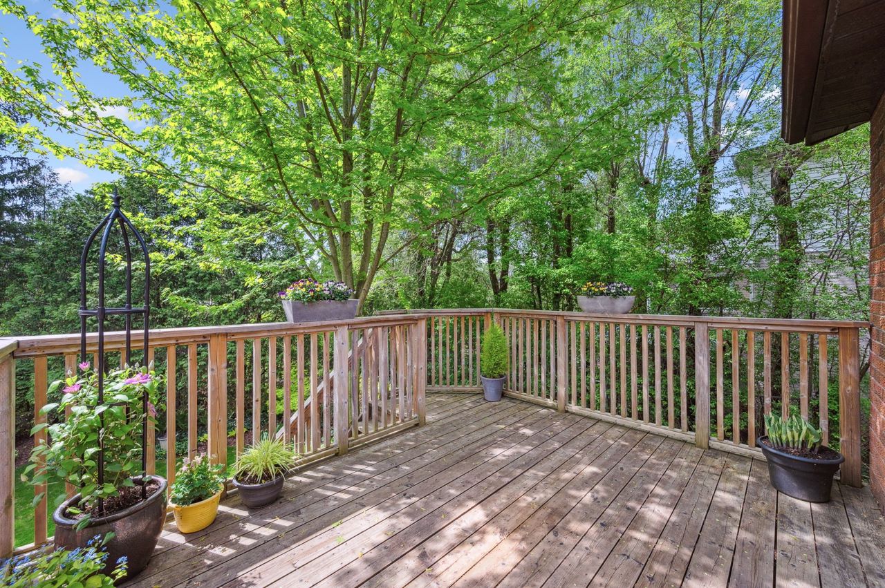 欢迎来到15 Wagoners Trail,这栋精心打理的平房,提供近2600平方英尺的已完成空间,坐落在Guelph备受喜爱的Kortright Hills社区最理想的街道之一。房产直接背靠Woodland Glen Park,提供隐私、美丽和无与伦比的宁静感。从您到达的那一刻起,您就能感受到主人的自豪感。一棵令人惊叹的40年树龄的粉色海棠树、盛开的岩石花园和茂盛的多年生花坛欢迎您回家。春天的球根花、夏季的葱、鸢尾花、出血心、蕨类植物和玉簪,每个季节都带来新的乐趣。室内,自然光透过凸窗倾泻而下,营造出宁静的花园景观。主楼的厨房经过精心翻新(2017),配有石英台面、防溅板、不锈钢电器和地暖。开放式起居和餐厅区域,通向高架的后阳台,非常适合款待家人和朋友,或者只是享受一个安静的早晨咖啡。宽敞的主卧室可以俯瞰后院绿洲,并享有特权通道到温暖的、受水疗中心启发的浴室,配有深浸浴缸、舒缓的瓷砖装饰和地暖。第二卧室和舒适的休闲室(或第三卧室)完成了主楼层。明亮的Walk-Out地下室是家的真正延伸,拥有大窗户、燃气壁炉(2018)、定制内建书架和两个额外的卧室,非常适合客人或大家庭。完整的浴室和宽敞的洗衣房提供舒适和便利。步出家门,来到您的私人圣地。多个休息区、葡萄藤覆盖的凉亭和充满牡丹、狼尾草和日本草的弯曲花园等待着您。这栋房子是一颗稀有宝石,提供宁静、美丽和便捷的设施、公共交通、YMCA和顶尖学校。