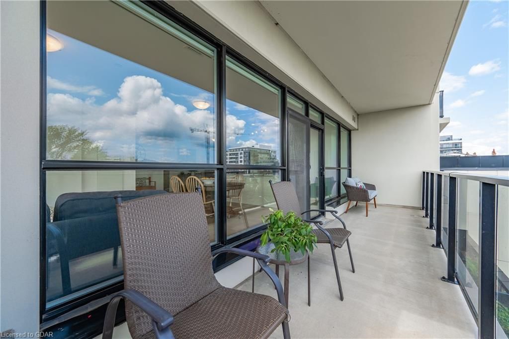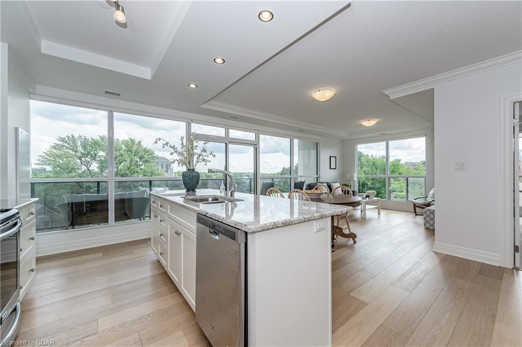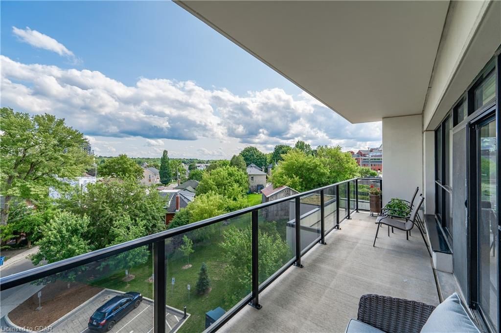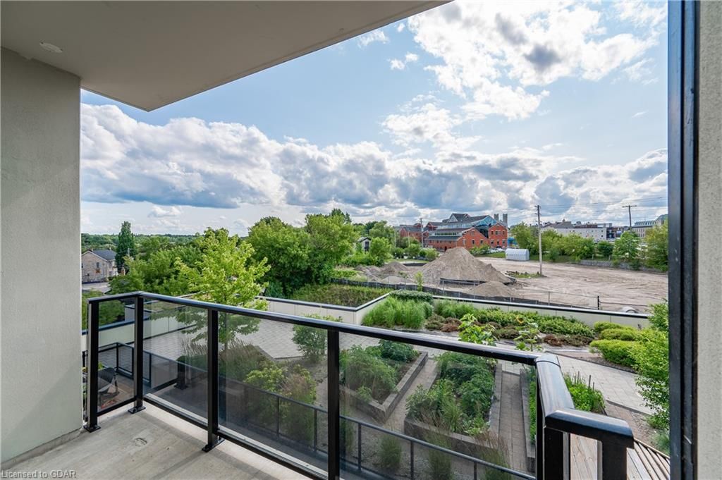 Introducing an exquisitely designed corner suite in downtown Guelph! This residence combines an ideal location with panoramic views. Picture yourself savoring your morning coffee on one of the two balconies, relishing the sunrise, or unwinding in the evening while watching the sun setting on the horizon. The proximity to a multitude of amenities such as restaurants, cinemas, shops, and scenic trails along the Speed River grants unparalleled convenience. The building's advantageous position ensures easy access to Guelph transit and the Go train to Toronto, featuring multiple return trips daily—an exceptional perk for those seeking to explore beyond the city limits. Step inside this unit to discover Tricar's finest craftsmanship. The spacious layout encompasses two bedrooms, two bathrooms, and a den, adorned with beautiful hardwood floors throughout and elegant granite countertops. If you have been looking for a two-bedroom condo, this is the unit thta meets your desires!Add Inclusions: Built-in murphy bed