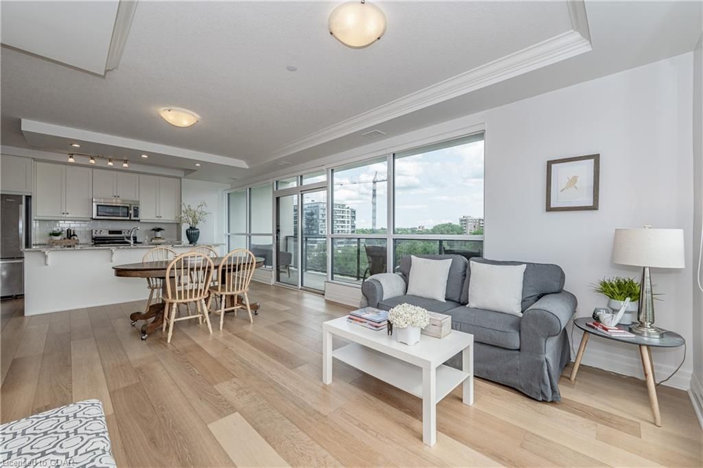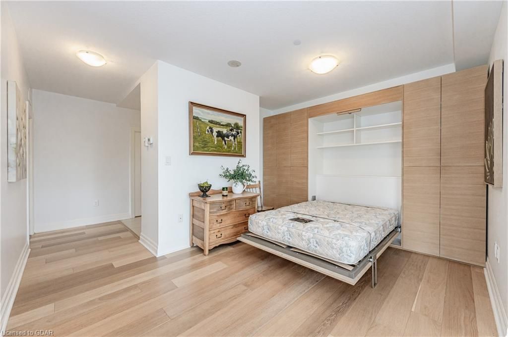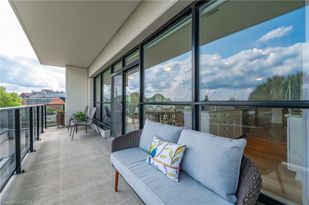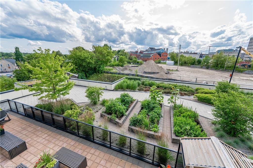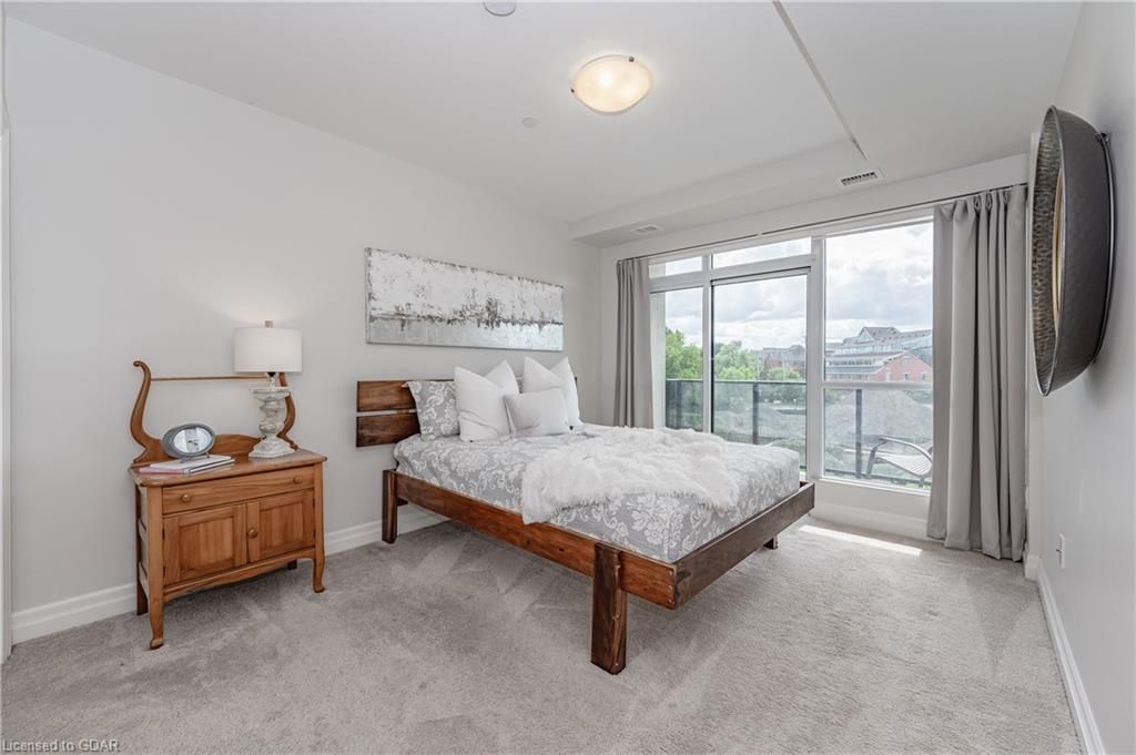 Introducing an exquisitely designed corner suite in downtown Guelph! This residence combines an ideal location with panoramic views. Picture yourself savoring your morning coffee on one of the two balconies, relishing the sunrise, or unwinding in the evening while watching the sun setting on the horizon. The proximity to a multitude of amenities such as restaurants, cinemas, shops, and scenic trails along the Speed River grants unparalleled convenience. The building's advantageous position ensures easy access to Guelph transit and the Go train to Toronto, featuring multiple return trips daily—an exceptional perk for those seeking to explore beyond the city limits. Step inside this unit to discover Tricar's finest craftsmanship. The spacious layout encompasses two bedrooms, two bathrooms, and a den, adorned with beautiful hardwood floors throughout and elegant granite countertops. If you have been looking for a two-bedroom condo, this is the unit thta meets your desires!Add Inclusions: Built-in murphy bed