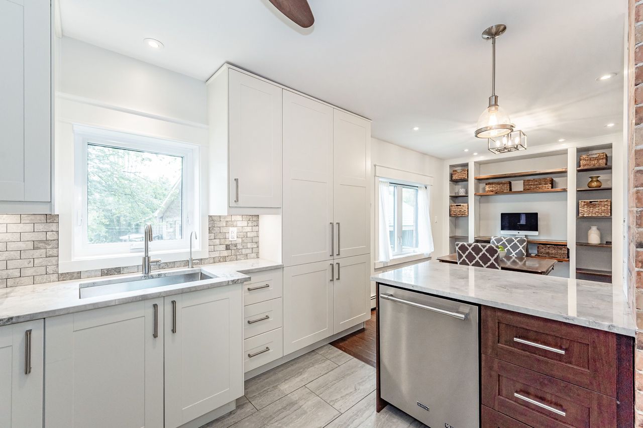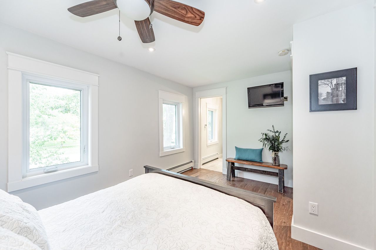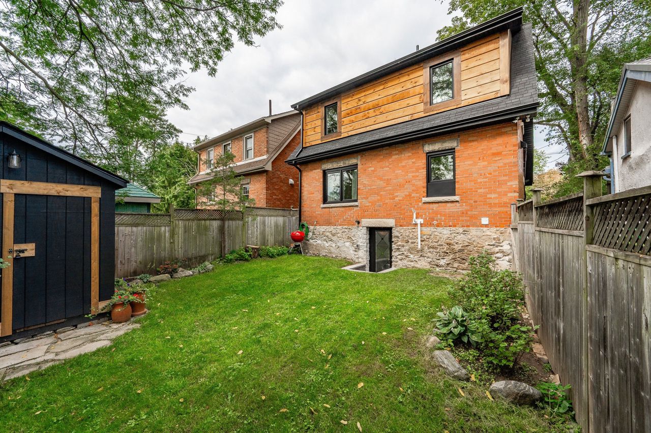 This century home has been gutted and rebuilt with attention to flow and function resulting in a one- of-a kind home on the doorstep of downtown Guelph. The gas fireplace, wide plank oak floors, exposed brick, main floor powder room, solid wood doors and master ensuite (with heated floor) are just a few of the beautiful features of this unique home. The home is hardwired for home entertainment, and all mechanics of the home have been replaced: new wiring and panel, new plumbing, on demand hot water heater, water filtration system, hot water hydronic heating system, ductless A/C and heat pump. R26 insulation in walls, R60 in attic. Roof sheathing/shingles, soffits, facia eaves and downspouts have been replaced. Worry free living for years to come in a century home with an unbeatable downtown location.The unfinished basement has a walk out to a fully fenced backyard complete with a charming garden shed with electricity. Unbeatable location with downtown Guelph's shops, restaurants and GO/VIA station just a 5 minute walk away.