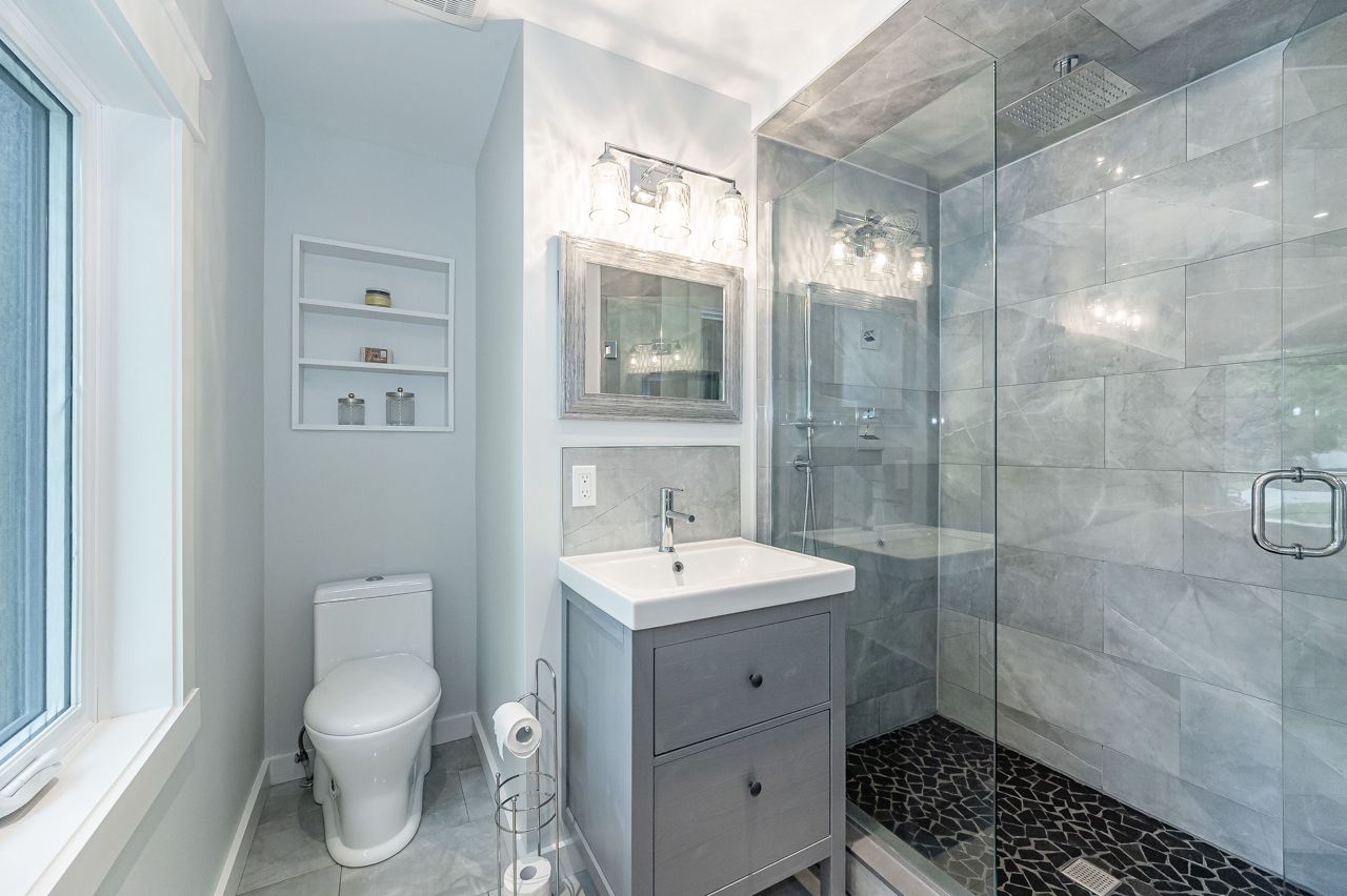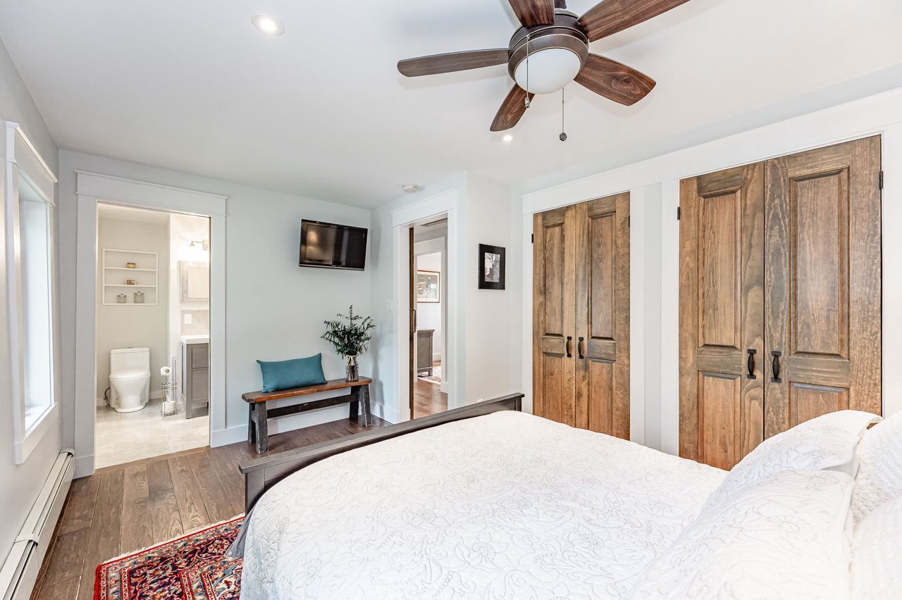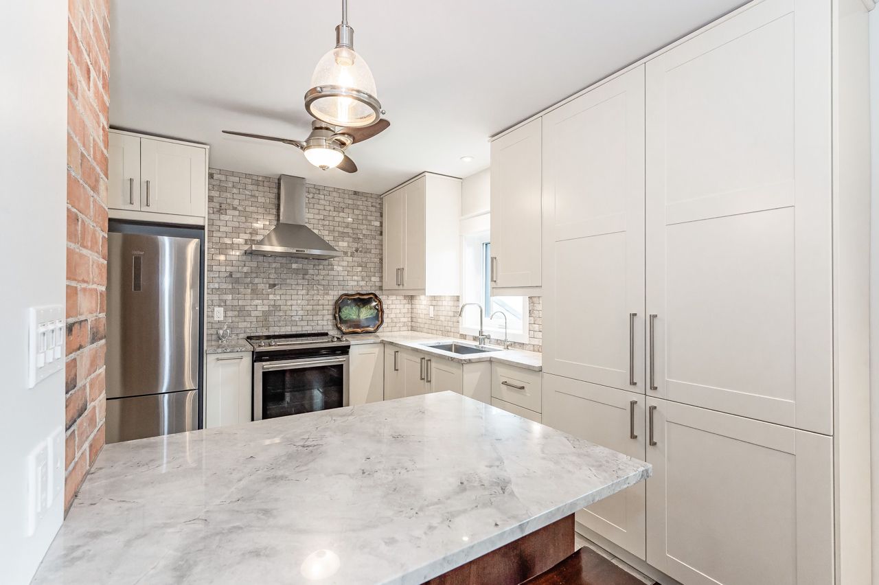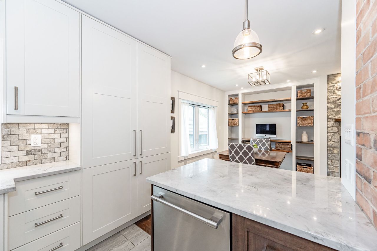 This century home has been gutted and rebuilt with attention to flow and function resulting in a one- of-a kind home on the doorstep of downtown Guelph. The gas fireplace, wide plank oak floors, exposed brick, main floor powder room, solid wood doors and master ensuite (with heated floor) are just a few of the beautiful features of this unique home. The home is hardwired for home entertainment, and all mechanics of the home have been replaced: new wiring and panel, new plumbing, on demand hot water heater, water filtration system, hot water hydronic heating system, ductless A/C and heat pump. R26 insulation in walls, R60 in attic. Roof sheathing/shingles, soffits, facia eaves and downspouts have been replaced. Worry free living for years to come in a century home with an unbeatable downtown location.The unfinished basement has a walk out to a fully fenced backyard complete with a charming garden shed with electricity. Unbeatable location with downtown Guelph's shops, restaurants and GO/VIA station just a 5 minute walk away.