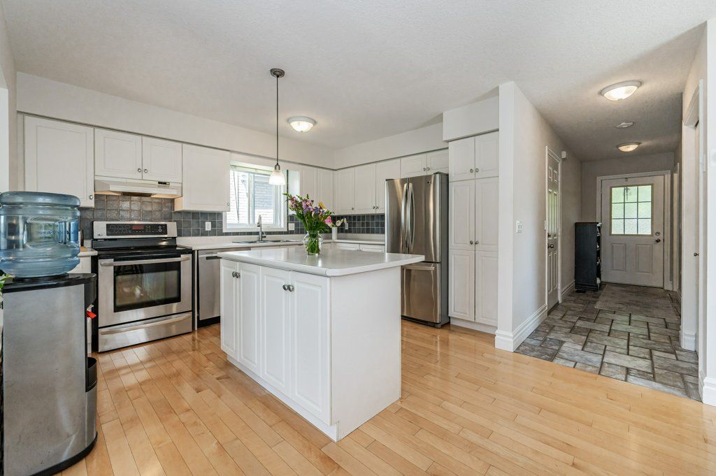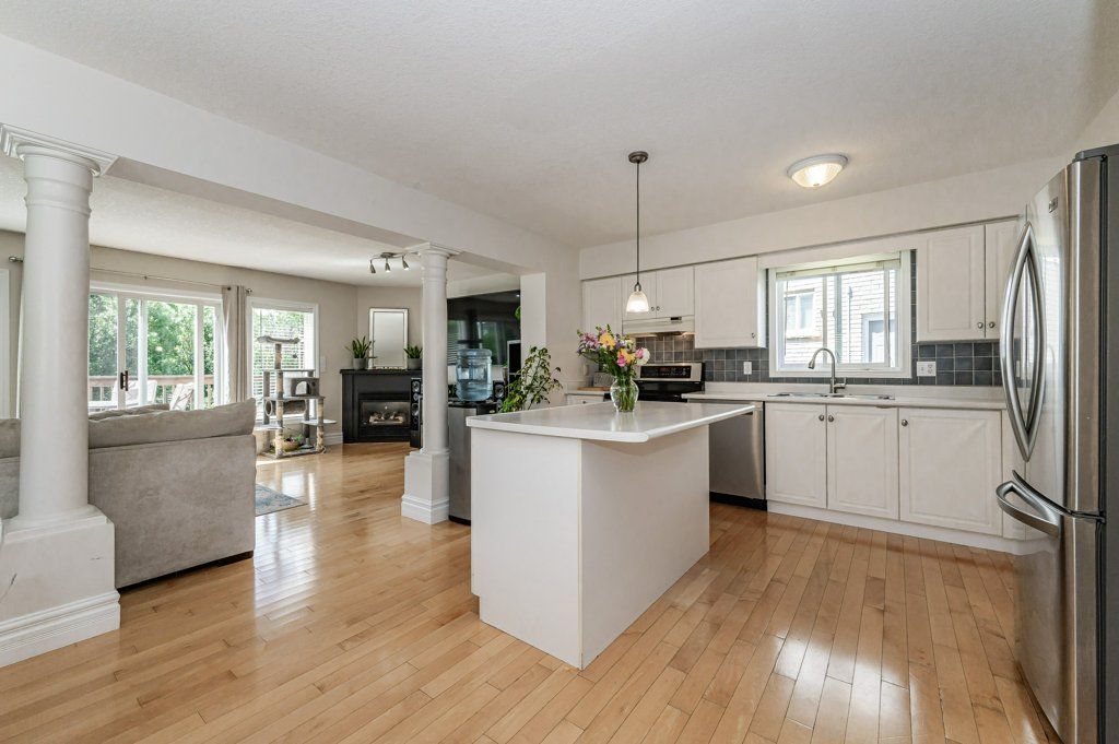 THE BEST OF BOTH WORLDS. Conveniently located on a desired cul-de-sac with all amenities close at hand. This bright home offers over 2400 square feet of living space, all above grade, and offers a huge bonus of conservation land at the rear. Spacious, open-concept principal area is pleasantly lit by window lined rooms and boasts a walkout to a huge deck overlooking trees and greenery for miles, making it a perfect extension for entertaining family and friends. This three bedroom, 2.5 bath home also features a generous sized primary suite with ensuite privilege to the five piece bath. The walkout basement creates many options. Perhaps a space for multi-generational families or a perfect hide-away for a teenager to have their own space, or simply extended living area for your family. On sunny days, enjoy your main floor deck, or escape the rain on your covered walkout patio from the lower level. Attached garage completes the picture.Possibility of an addition on your extra deep lot. Whatever you choose to do with the potential of this home, inside and out, one thing is constant. The peace and quiet of your