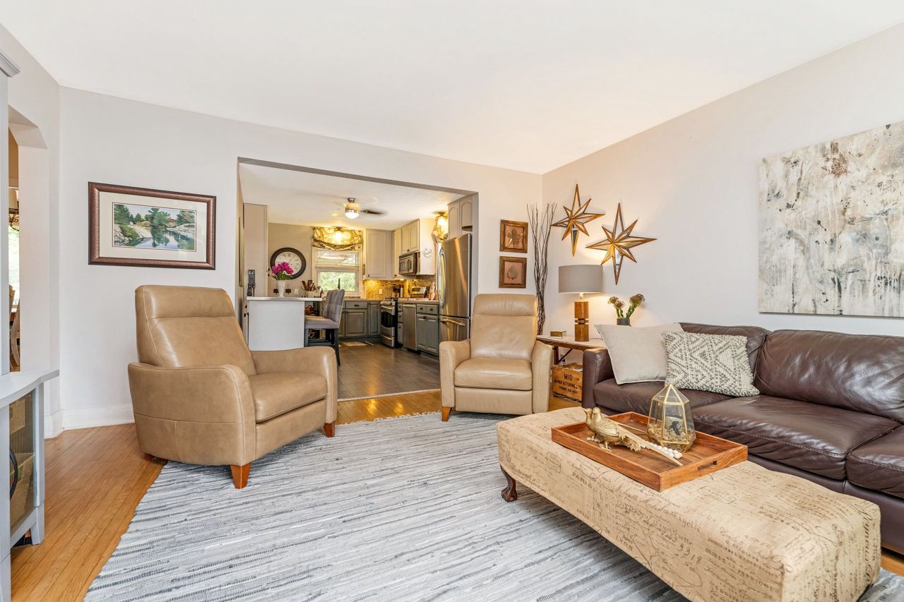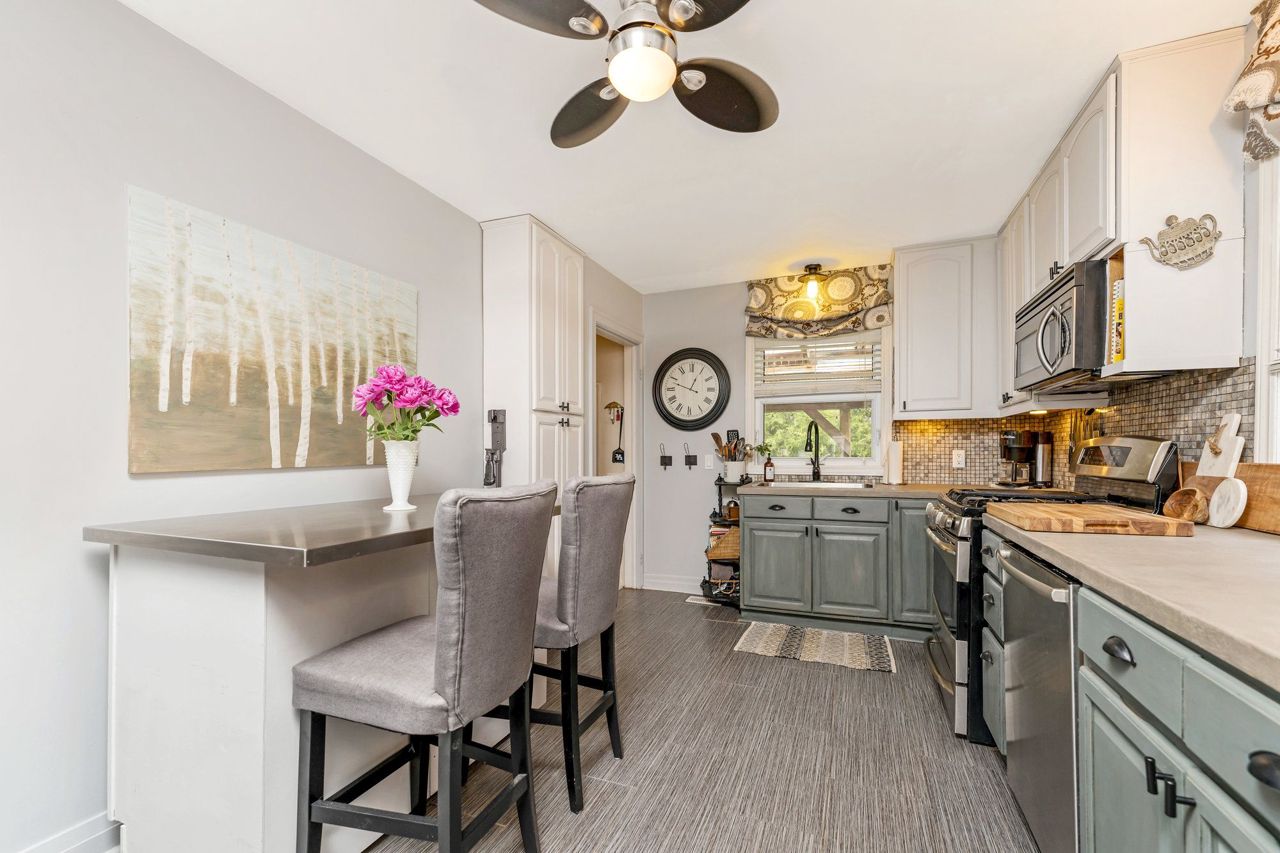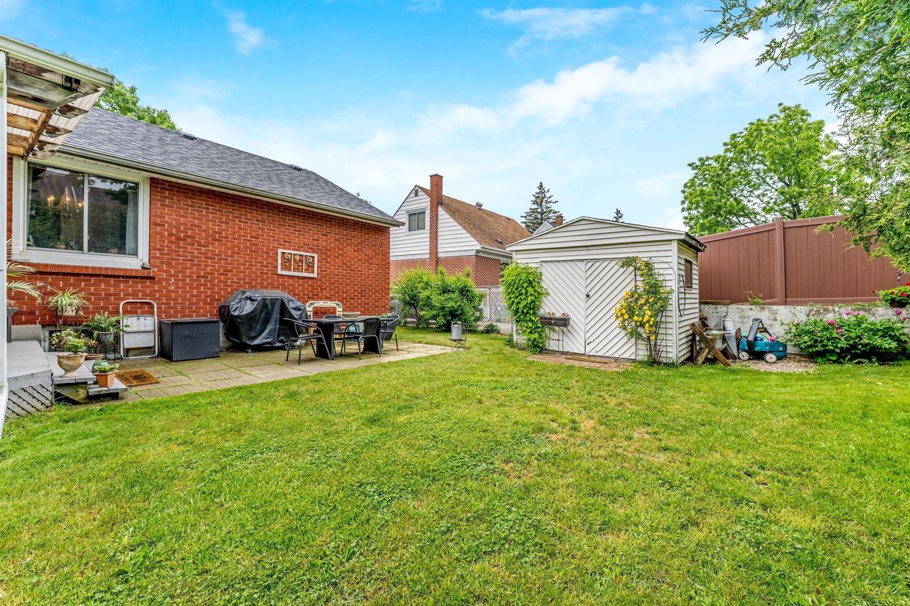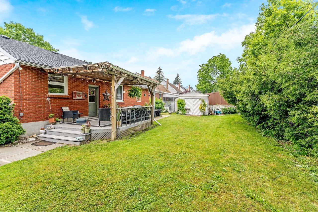 Looking for something special? This is it!!! Cozy 3 bedroom detached all brick bungalow on great street in a mature area. Main floor features an eat-in kitchen with stainless steel appliances, concrete counter and open to living room with large bay window – perfect for your morning coffee!! Three (3) good sized bedrooms and 4 pce bathroom. Finished basement consists of a finished rec room with gas fireplace, laundry room, workout/craft room and 3 pce bathroom. 68’ x 91’ lot with covered back deck for that perfect view of your private back yard and perennial gardens. Outdoor shed for storage and 2 driveways, one on either side of the house. Close to downtown Guelph and major highway for easy commute. Just move in and enjoy!! 3rd bedroom is used as dining room.
