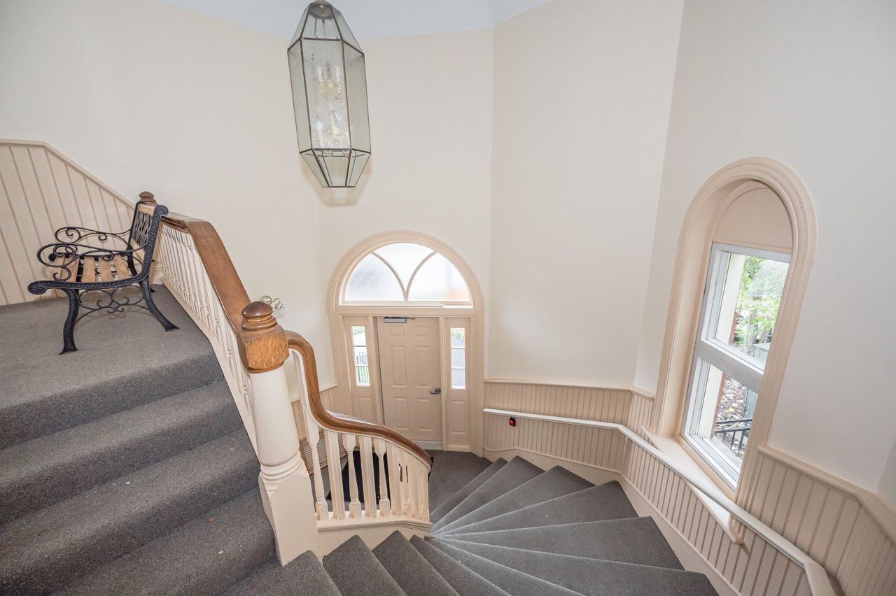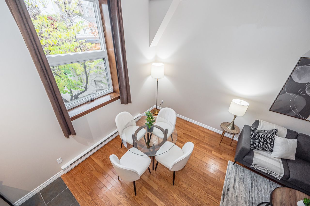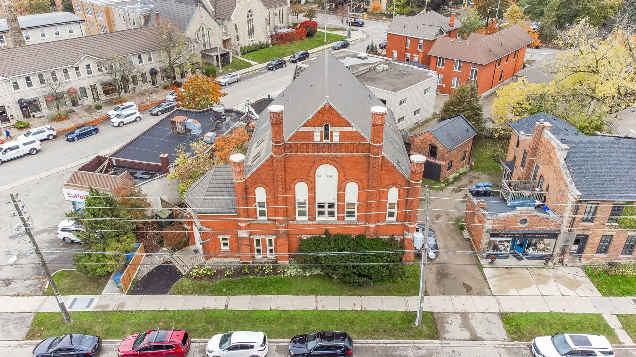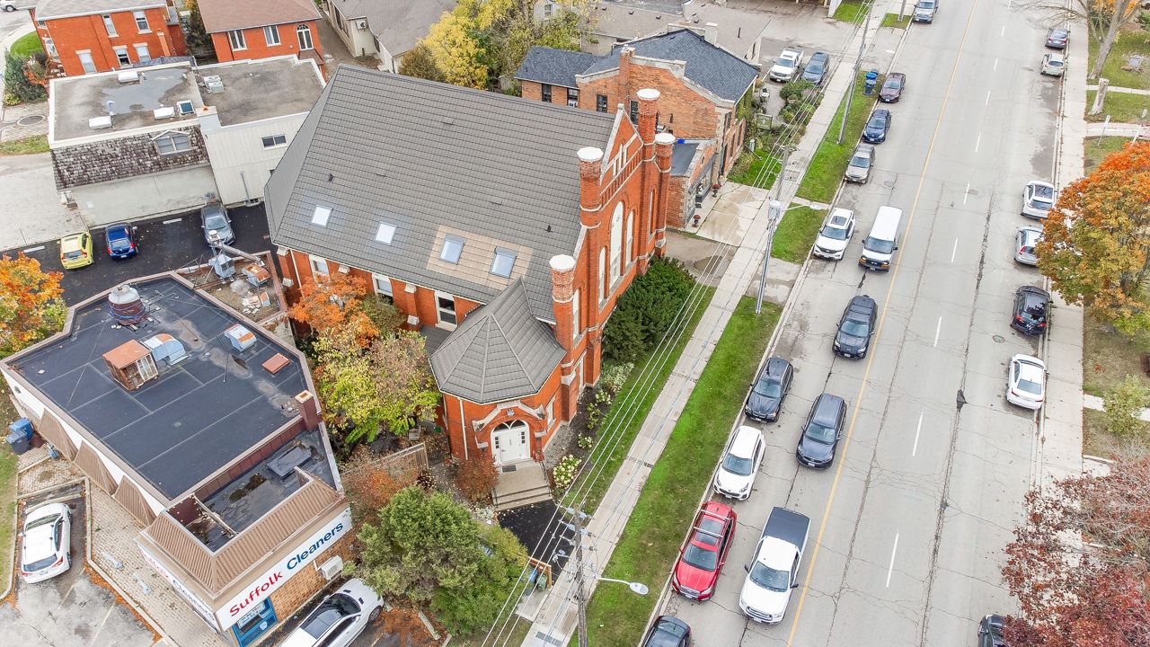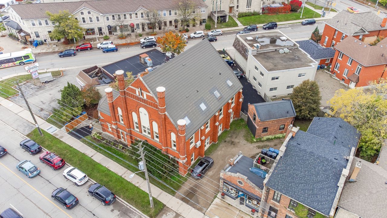 Experience a unique living experience in the heart of Guelph's charming Downtown, surrounded by rich history and picturesque views. The prime location allows for easy access to Guelph's VIA GO Train/Bus Central Transportation Hub, as well as the farmer's market, delectable baked goods, and everything downtown has to offer. Each unit in this stunning, former 100+ year-old church boasts a unique architectural identity and high-end features. This two-level, loft-style open-concept floor plan with soaring 10+ foot main floor ceiling heights offers a one-of-a-kind living space for those seeking something beyond the standard two-bedroom condo options. The east-facing extra-large windows provide an abundance of morning light, highlighting the huge bedrooms, 2 baths, 2 second-floor skylights, and in-suite laundry with a newer washer and dryer.The unit also comes with one exclusive assigned parking spot, controlled entry, freshly painted walls, gleaming oak hardwood and ceramic tiled floors on the main floor, and a private owner-access courtyard for BBQs.
