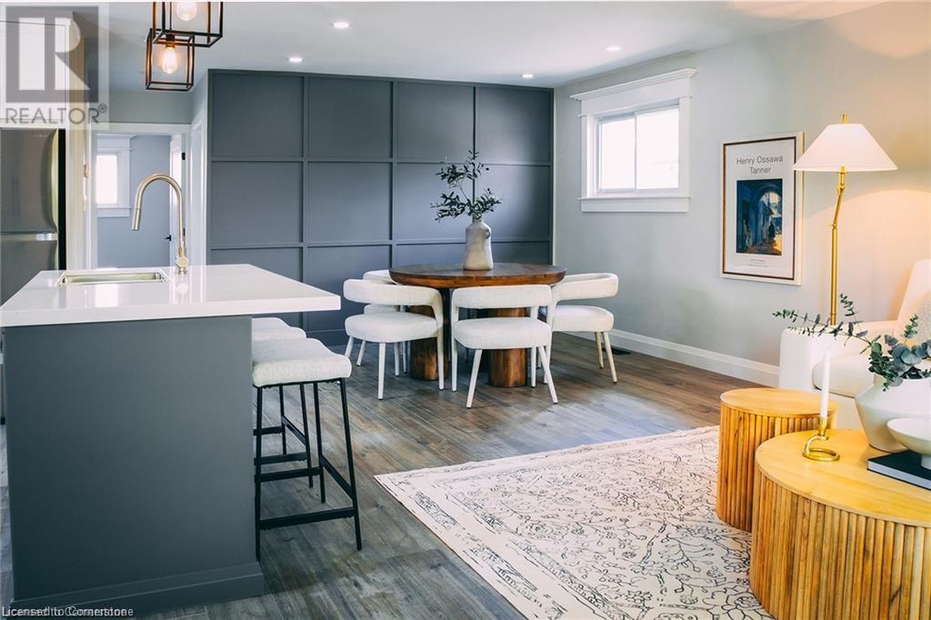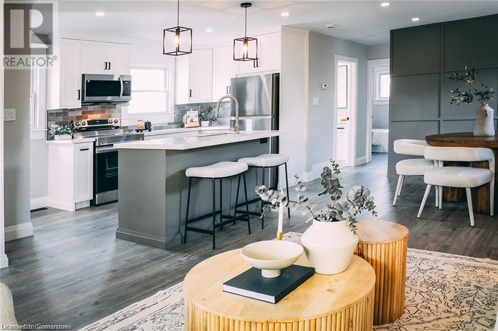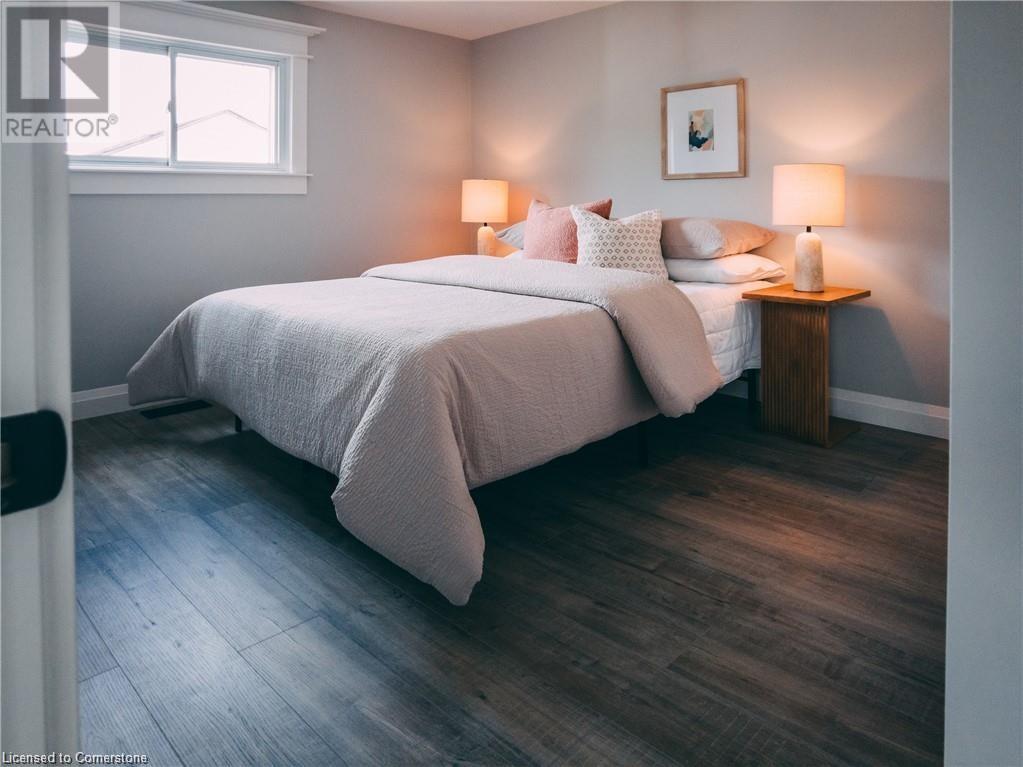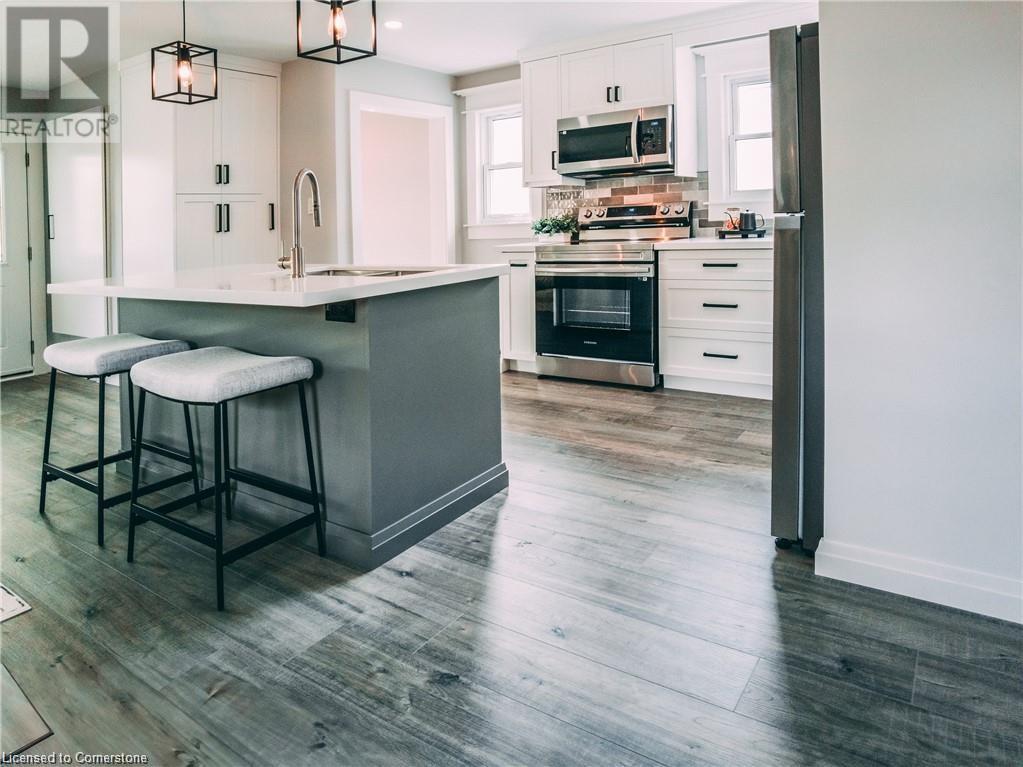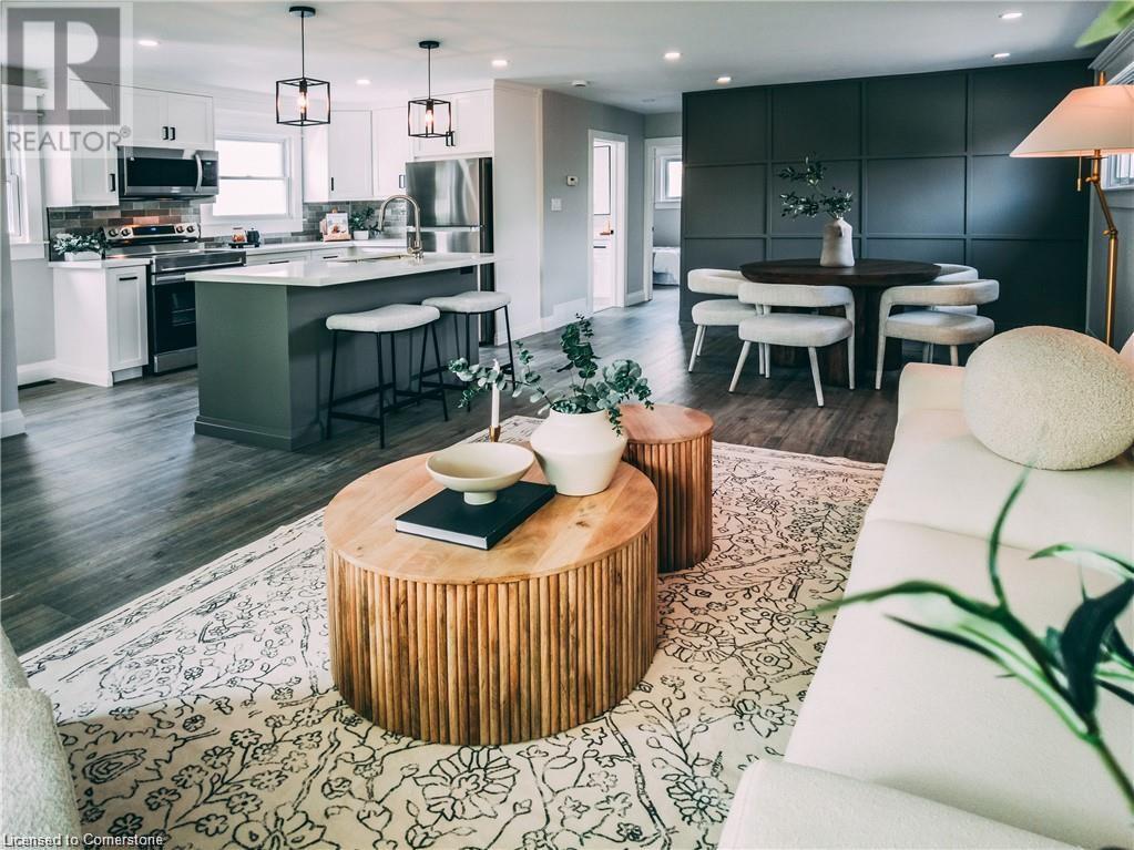 This meticulously, newly renovated bungalow offers modern sophistication with timeless charm. The open concept main floor features an absolutely stunning, upgraded kitchen with new stainless steel appliances, spacious island and sleek countertops. Two main floor bedrooms and an elegant main bathroom boasts a tiled, no-threshold entry. The finished basement includes a spacious bedroom, full bath, laundry and a cozy recreation room. Enjoy ample storage and a separate basement entrance with possible in-law potential. Outside, relax in your private backyard with a mature garden or on the new front deck shaded by a large maple tree. The property includes a larger detached garage, resealed driveway, and ample parking. Additional updates include new plumbing and electrical systems and newer roof. Located within walking distance to downtown Guelph, this move-in-ready home offers immediate possession. Don't miss out on this perfect blend of style and convenience!Must see! (id:22211)