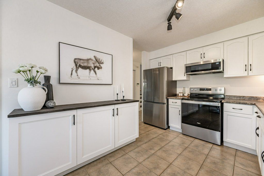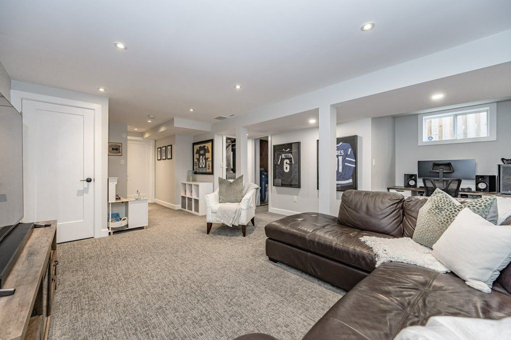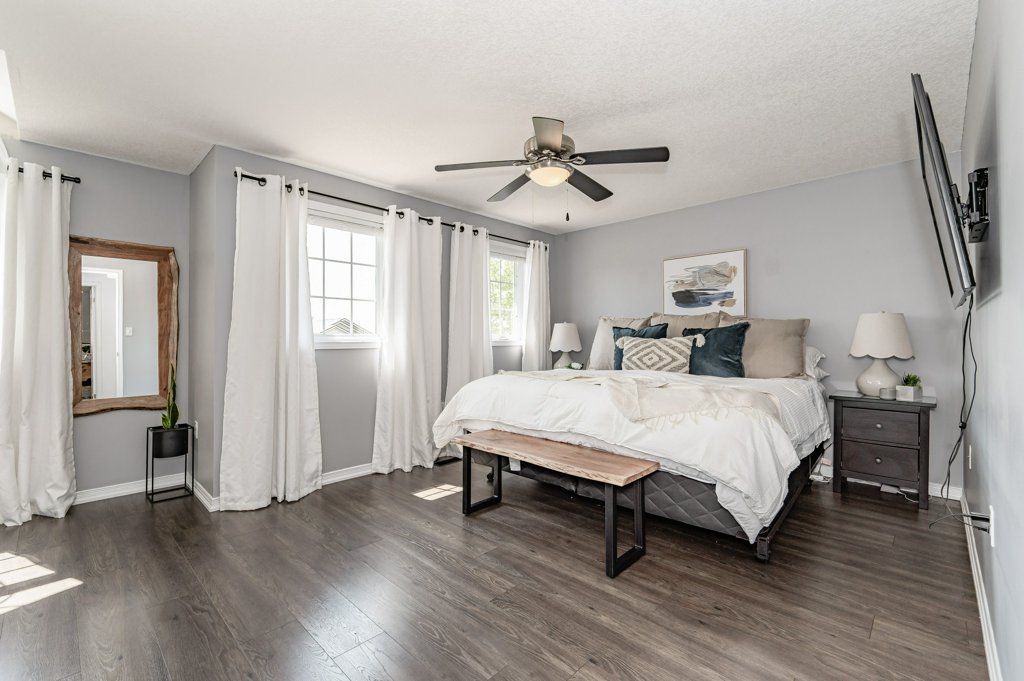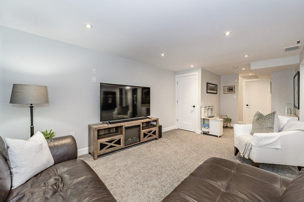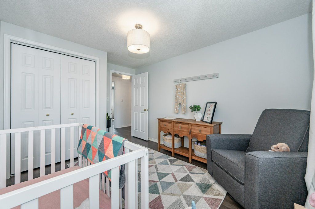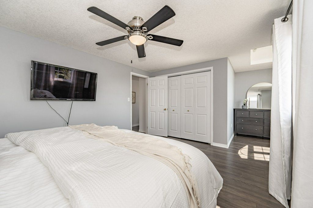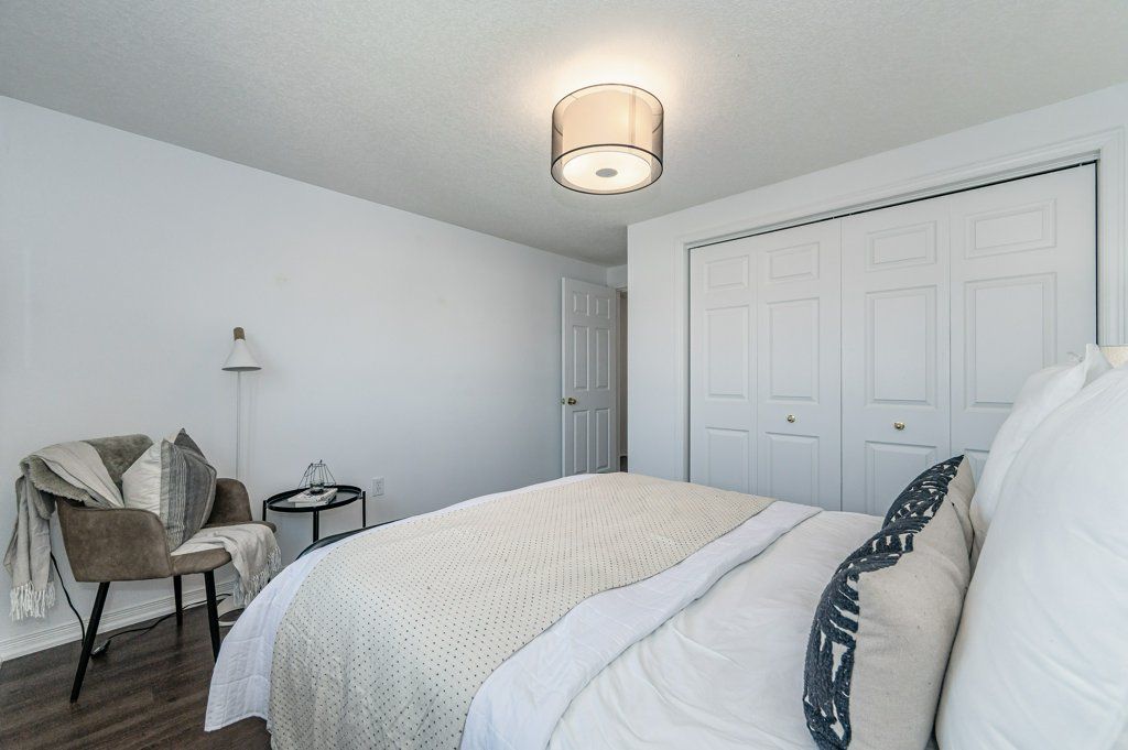 This inviting home boasts an eat-in kitchen showcasing white cabinetry, complemented by high-end stainless steel appliances, abundant cupboard space and a sliding door leading to a sizable deck, making this kitchen perfect for entertaining. The living room is bright and airy, featuring a large window that floods the home with natural light. Completing this level is a convenient two-piece powder room Upstairs, you'll discover a generously proportioned master bedroom with double closets and ample windows. Two other well-sized bedrooms offer comfortable living space for the entire family. The main bathroom features a tiled soaker tub. The fully finished basement offers even more living space and includes a spacious recreation room with pot lighting, laundry facilities, a cold room, and a three piece bathroom that is roughed-in and ready for your finishing touches. The fully fenced backyard boasts a deck, perfect for outdoor gatherings, while the mature trees provide a serene backdrop.Situated in a desirable neighborhood, this home is within walking distance to Severn Drive Park, École Guelph Lake School, and Grange Road Park. It's also a quick bike ride away from the new Eastview Community Park.