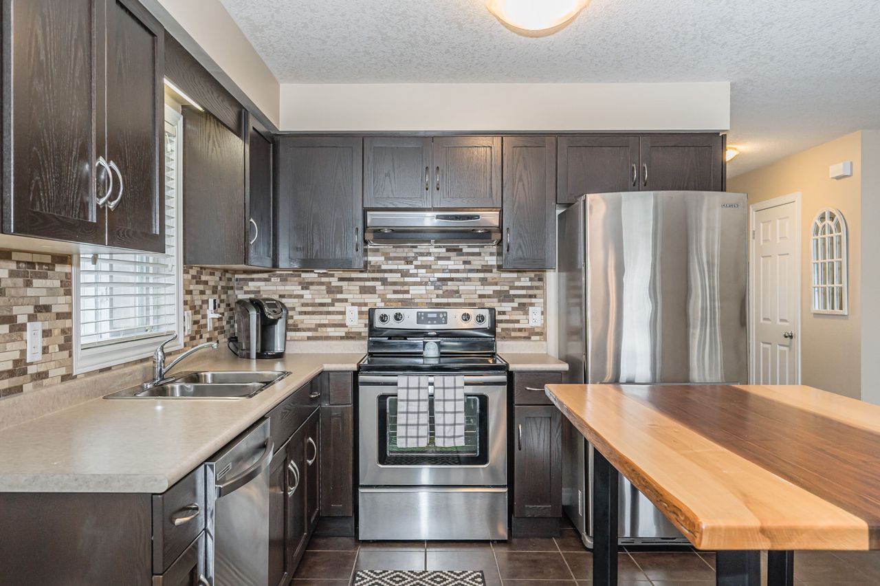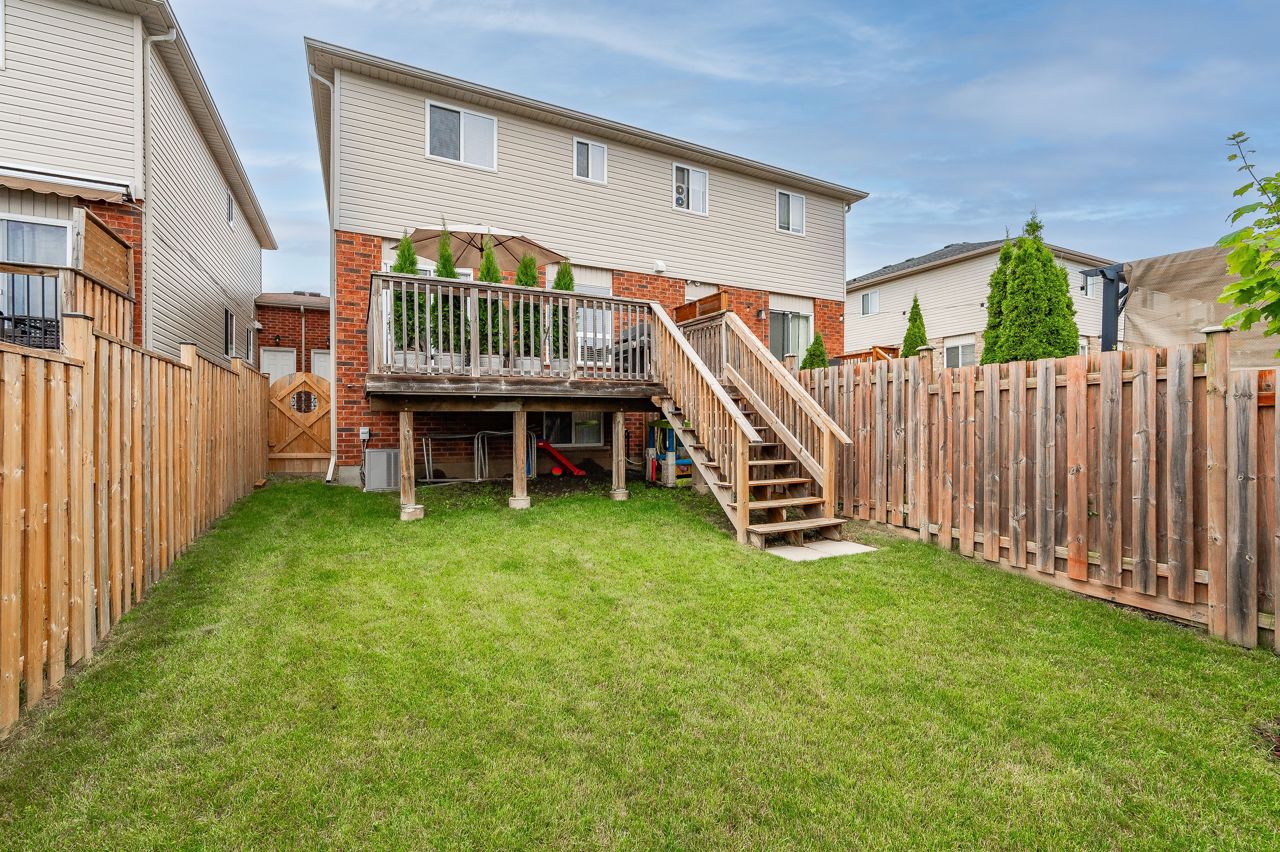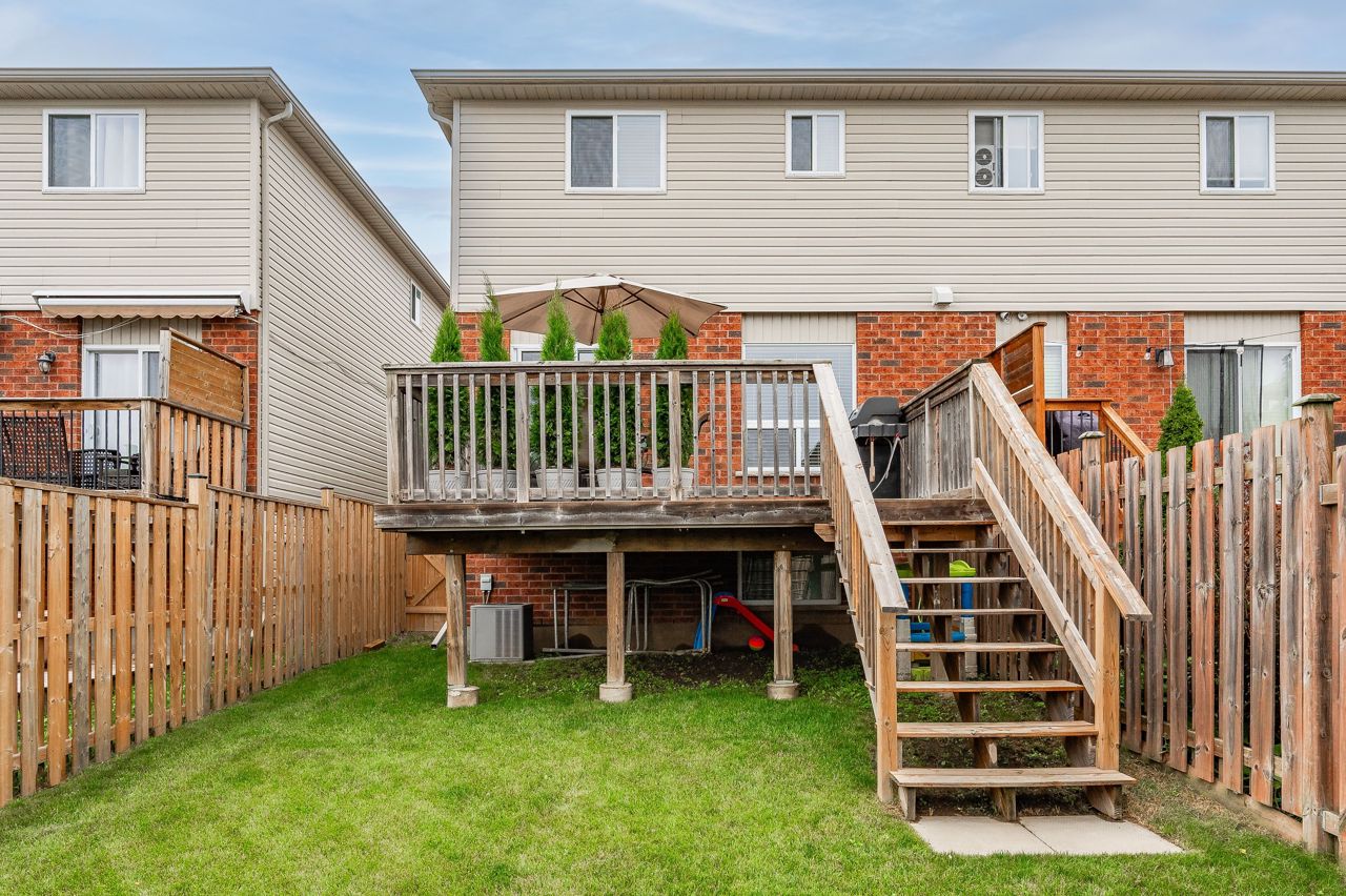 No Condo Fees! Located in the heart of Guelph's east end, this freehold townhome features an open house concept floor plan, 3 bedrooms and 3 baths, and large kitchen overlooking the dining room and bright living room. The garage is extra wide and offers direct separate access to the fully fenced in yard, featuring large deck with sunset views. Unspoiled basement has high ceilings, ample storage, cold cellar and laundry. Lots of space for a future rec room! With easy walking distance to schools, restaurants, multiple parks, trails that lead all the way to Guelph Lake, sports fields and Guelph's own Pollinator Park, your kids will have plenty of places to bike to, meet up with friends and make lasting memories. Call today to see this fantastic family home.