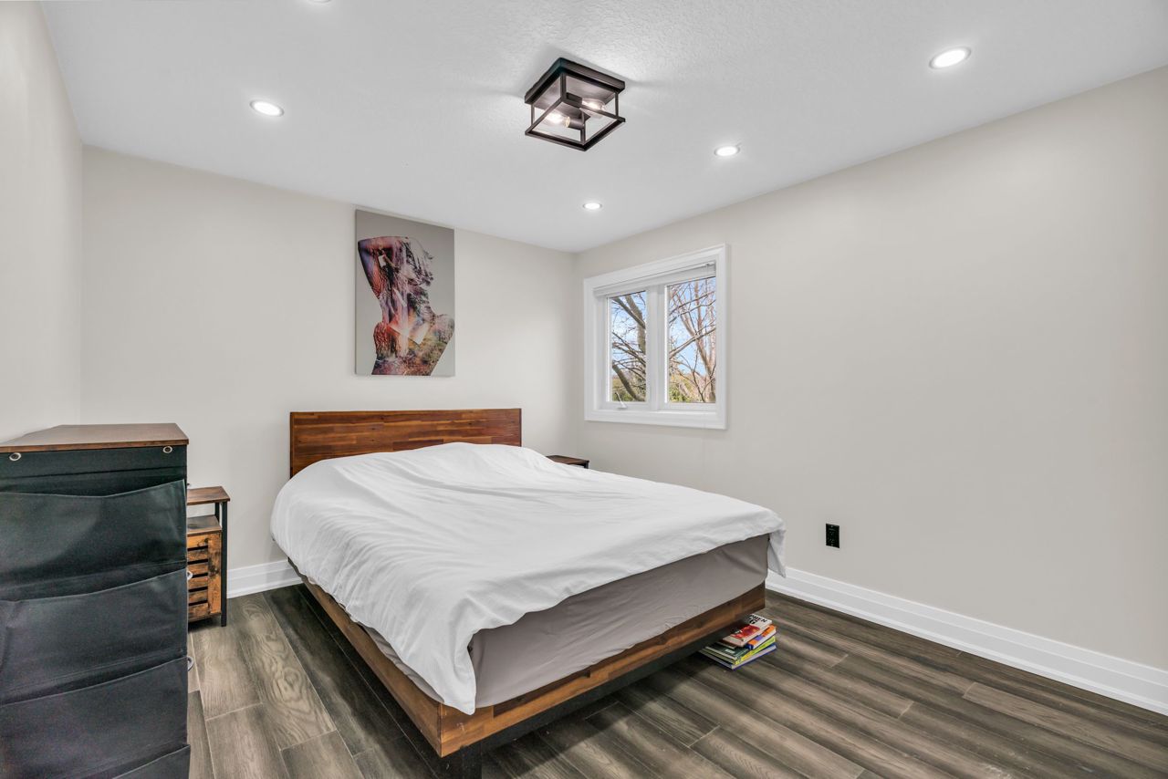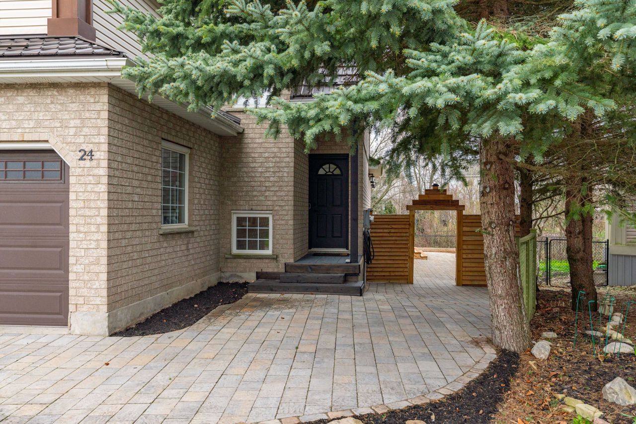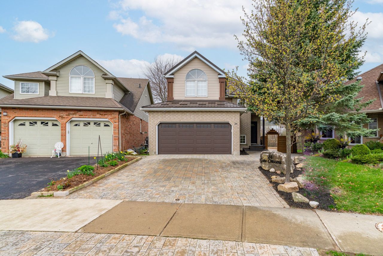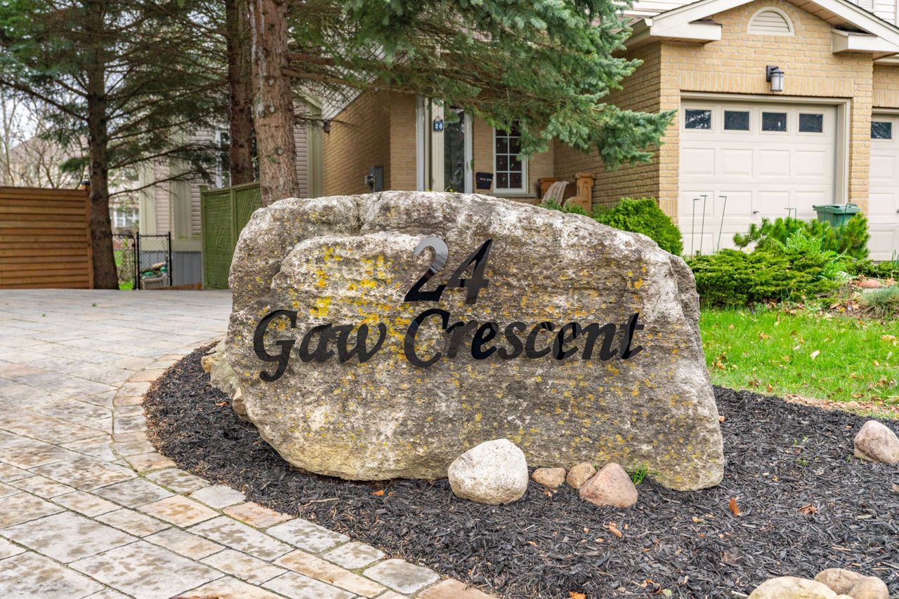 Welcome to 24 Gaw Gres, Guelph. This fully updated, totally renovated 4 bedroom family home is located on a gorgeous and sizeable pie-shaped lot in a quiet crescent. The bright main floor brings open concept living to a new level. Enjoy the spacious living and dining room with beautiful hardwood floors, soaring cathedral ceilings, gas fireplace and sliding doors allowing plenty of natural light into the room. The Kitchen is fully updated with modern styling, new appliances and plenty of light. Convenient 2pc powder room completes this level. Upstairs youll find huge master bedroom with 2 closets, cathedral ceilings & beautiful arched feature window. 2 more large bedrooms and a fully-updated bathroom complete this level. The basement is finished with an in-law suit; complete with kitchenette, full bathroom, laundry room, living room and bedroom. The double driveway and 2-car garage provide plenty of parking, storage and working space. The fully landscaped property has mulched garden beds galore; allowing you to put the finishing touches on your backyard oasis. The enormous deck provides ample entertaining space with access to the home through the gorgeous and wide double doors. Backing on to green-space, this home will give you a quiet and private space with walking paths just over the ravine. Close to Westminster Woods Park & Pine Ridge Park. Walking distance to many schools. Surrounded by, restaurants, grocery stores, banks, fitness centres and more! This is a prime location for commuters; the 401 is minutes away. Don't miss out and book your showing now; this property won't last long!