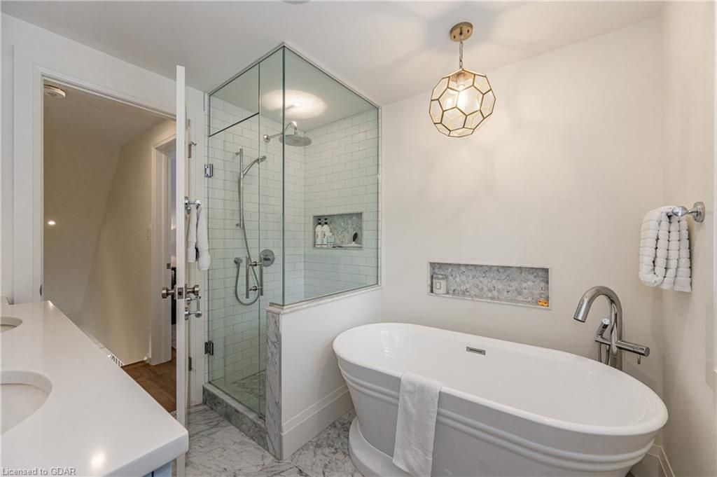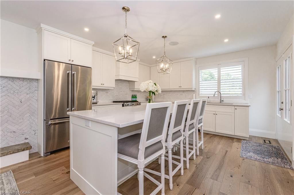 Welcome to 24 Winston Cres! This charming home in the sought-after neighbourhood of St. George’s Park is situated on a quiet street. This home has been professionally renovated. Inviting entrance w/covered porch. The main floor features an open-concept living area w/many windows. The wood burning fireplace anchors the living room, finished in marble & a built in bookcase. Kitchen designed by Barzotti w/a large quartz island & marble backsplash. Appliances are all stainless steel. The kitchen sink has an amazing west facing view. The main floor hosts one bedroom. The laundry room features a sink, built-in pantry, & a pocket door. Powder room on main floor. The second level offers two bedrooms w/good sized closets. The upstairs features a 5 pcs bathroom w/two sinks, a free standing tub, glass shower and heated marble floors. Sound system throughout home. Lower level is unfinished & offers flexible space. Exterior is low maintenance. The front garden features boxwoods & hydrangeasAdded Inclusions: 1 Sonos AMP (speakers in kitchen & dining), exterior security camera system (4 cameras), security alarm system, upstairs bedroom TVs and brackets (two). Powder room mirror.