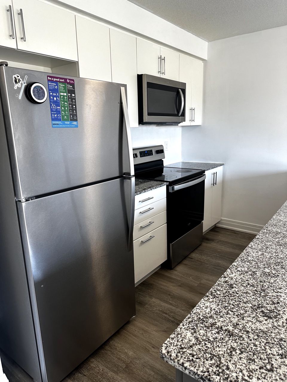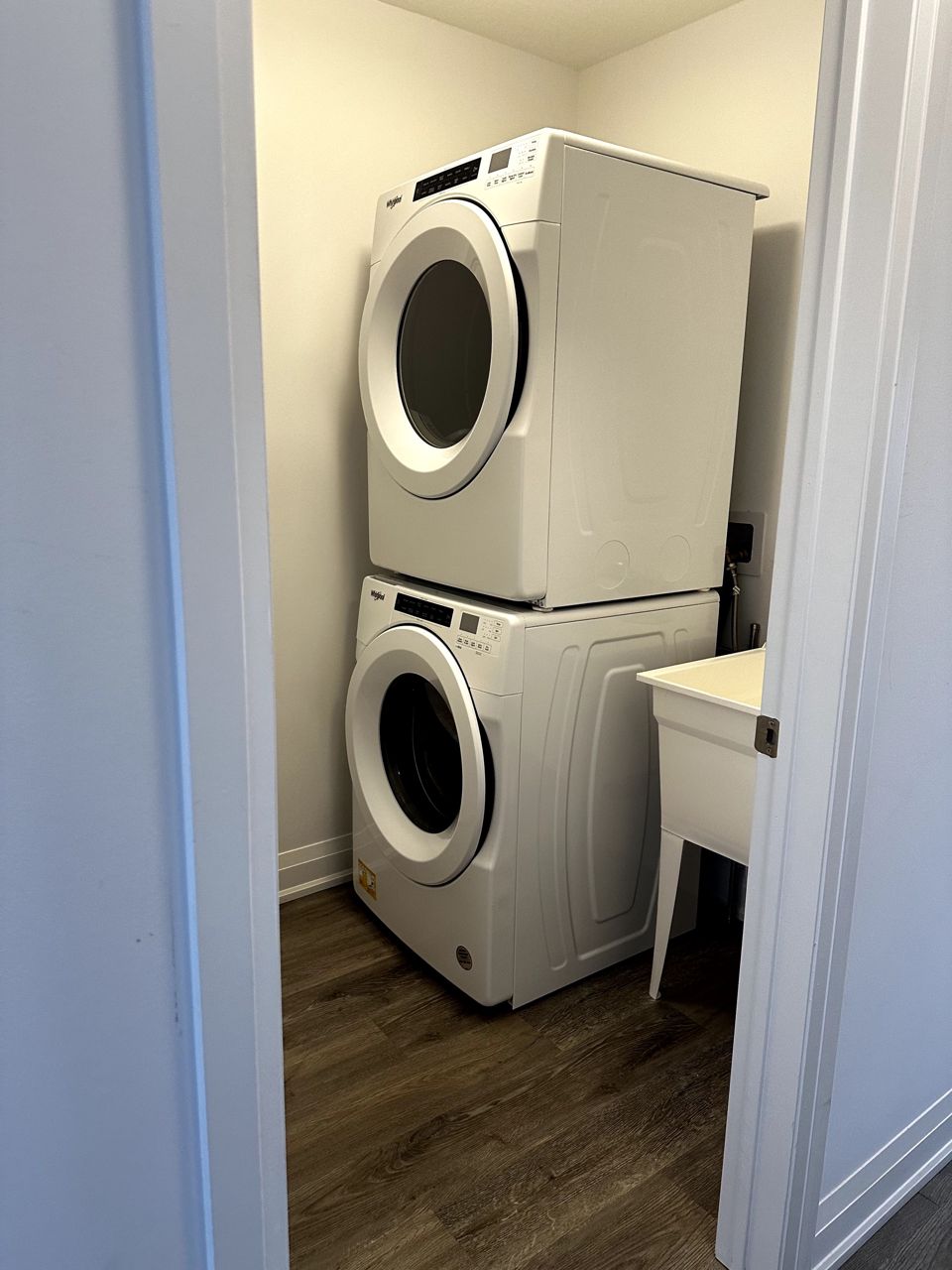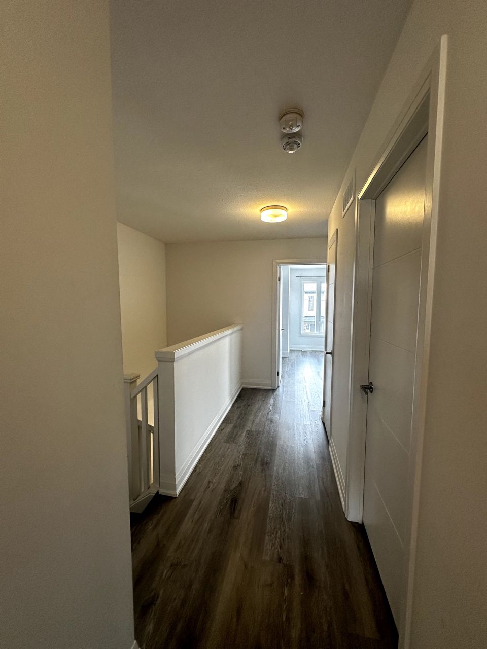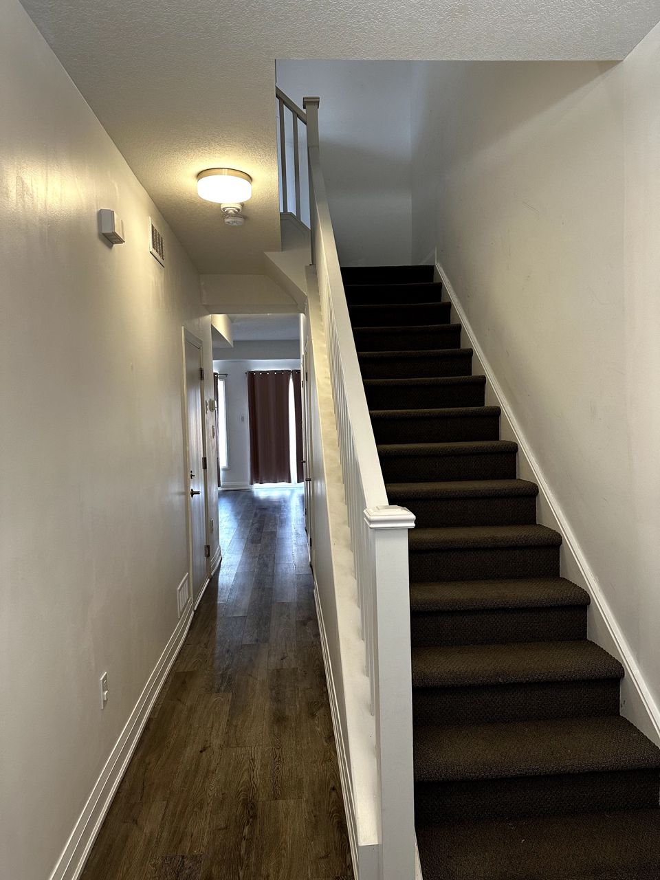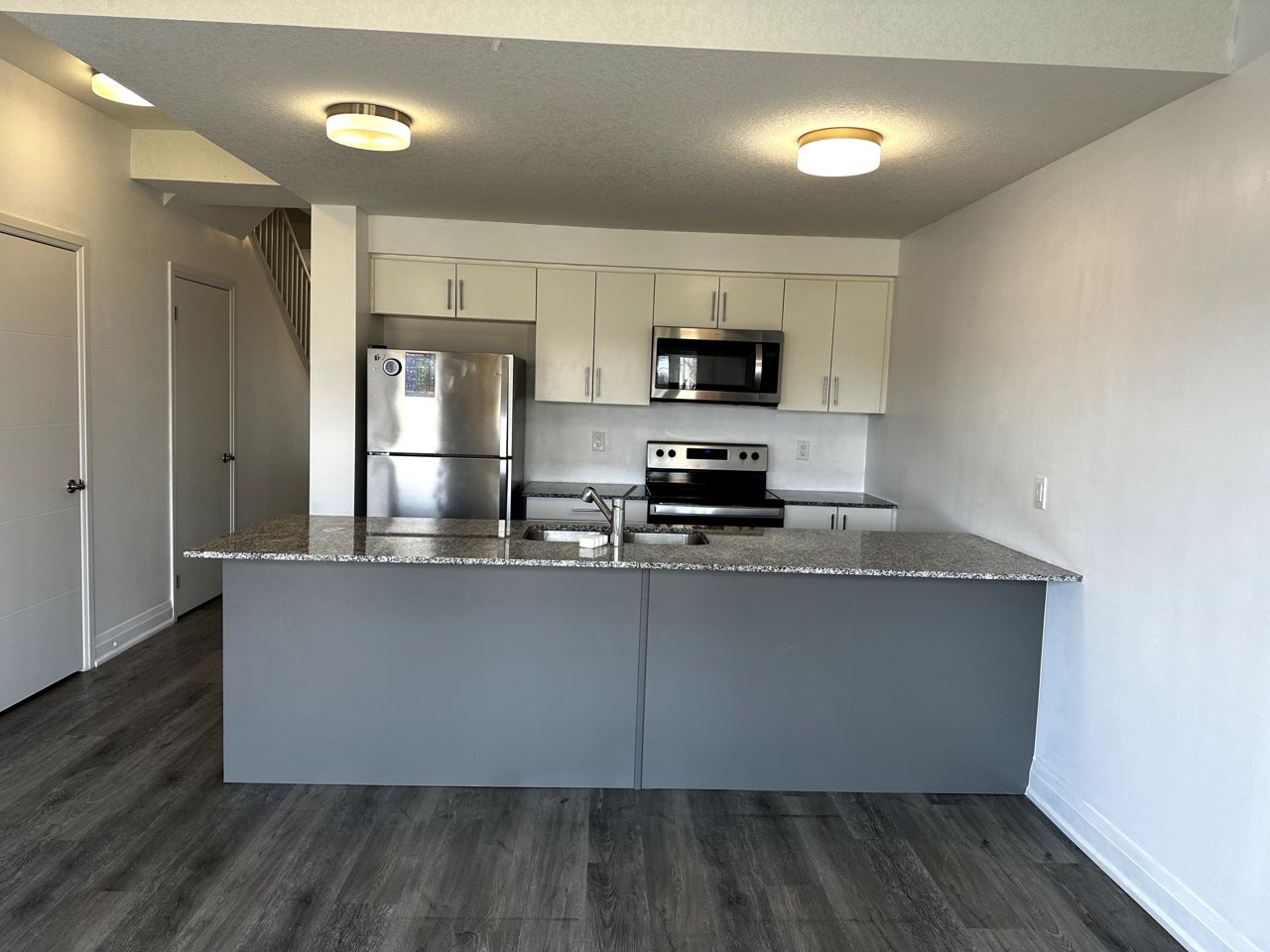 Gorgeous High-End Townhouse! The main floor boasts a stunning open-plan layout for family, dining, and kitchen areas. Enjoy high ceilings, laminate flooring throughout, a kitchen adorned with quartz countertops and stainless steel appliances. 3 generous sized rooms that are perfect for a growing or established family! The primary bedroom includes an ensuite and walk-in closet, while the second and third bedrooms have easy access to a shared washroom. Convenient laundry facilities are located on the second floor. Just minutes away from the downtown core.S/S Appliances, Fridge, Stove, Dishwasher, Microwave, Washer, Dryer.