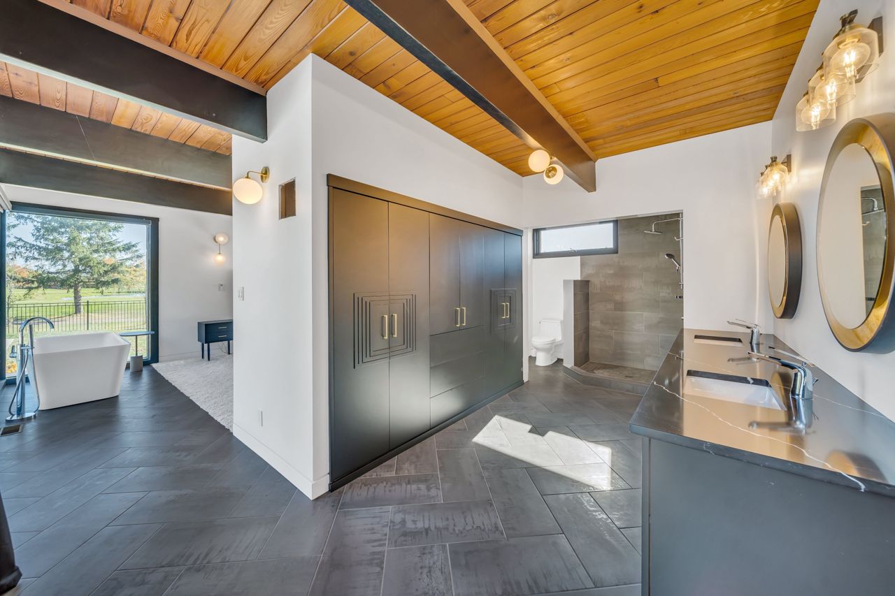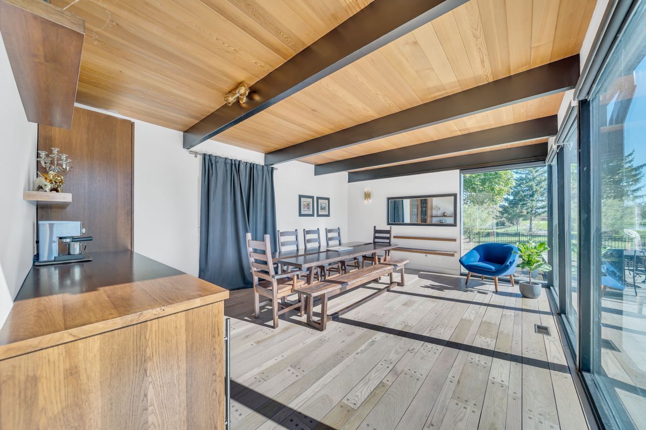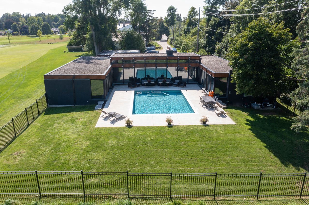 An extremely rare opportunity to own one of Guelph’s most esteemed homes! This exciting opportunity has become available and is ready to take your lifestyle to the next level. The dream home has been entirely custom renovated while keeping the style and feel of the original design. It is nestled quietly on Dormie Lane, backing onto the immaculate greens of the exclusive Cutten Fields Golf Club. It is the perfect blend of modern comfort and quality style. Floor-to-ceiling windows and doors let in abundant natural light, and modern finishes and fixtures flow throughout. The gourmet kitchen features quality Gaggenau appliances, sweeping countertops and, again, those fantastic wall-to-wall windows. From here, you can move into the open-plan breakfast and living area that is part-separated by a gorgeous double-sided fireplace and the separate dining room. Large glass sliding doors connect these spaces with the sun-drenched patio.