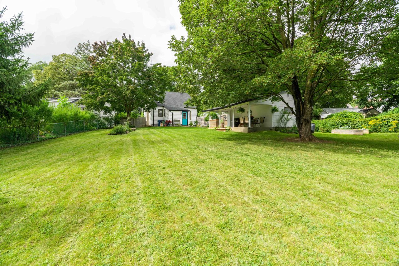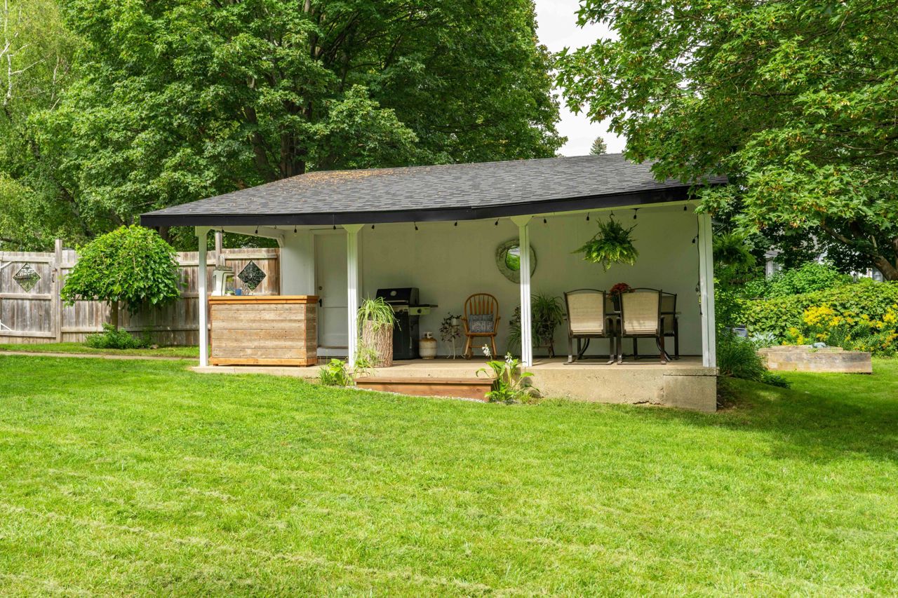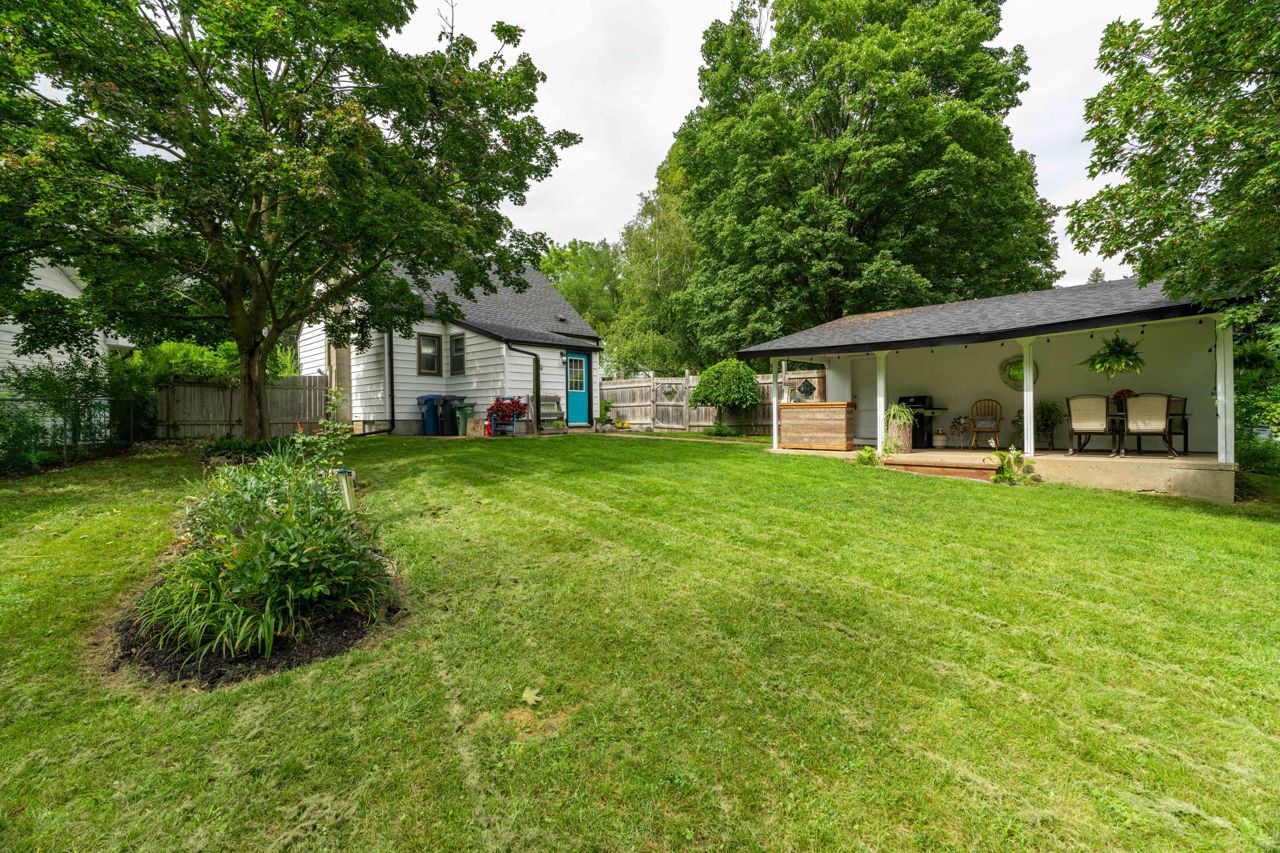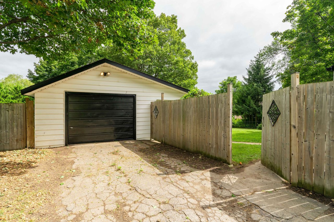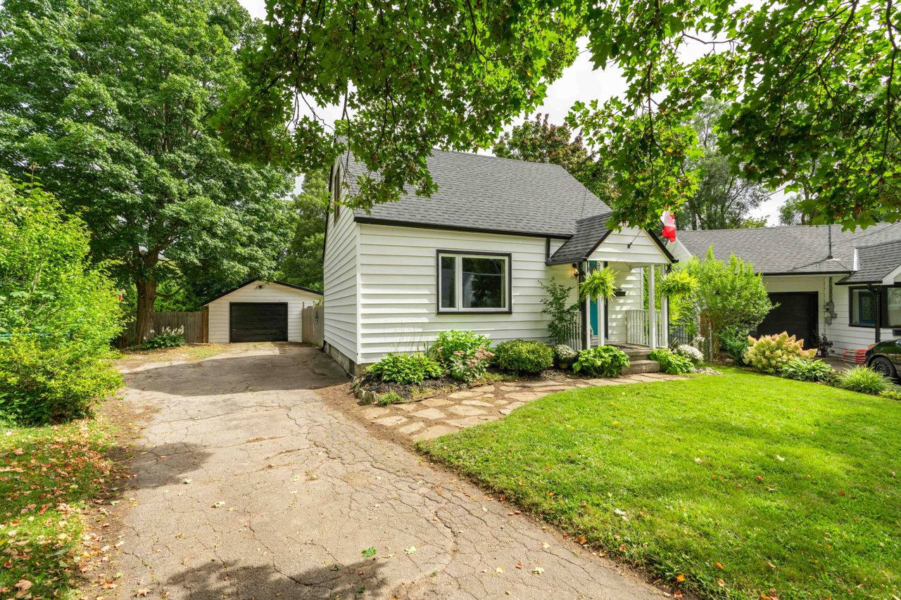 Situated on a sprawling THIRD OF AN ACRE on a charming cul-de-sac. This property offers endless possibilities and boasts a serene and lovely street setting. The exterior of the house is complemented by a detached garage (384 sq. ft) with hydro and featuring an adorable covered porch. With a spacious lot, you can let your imagination run wild, whether it's adding an addition to the existing structure, creating your dream pool oasis, or even establishing an outdoor office space – the options are limited only by your creativity. This home exudes charm and character at every turn. The large rooms are bathed in natural light, creating an inviting atmosphere throughout. The bright and welcoming family room is perfect for relaxation and gatherings, while the adjacent dining room provides an elegant space for meals and entertaining. Freshly painted oak cabinets and plenty of storage in the kitchen. With two bedrooms and a well-appointed bathroom, it offers a cozy yet comfortable living space.Hardwood floors have been refinished! basement offers additional living space and a 3rd bedroom!