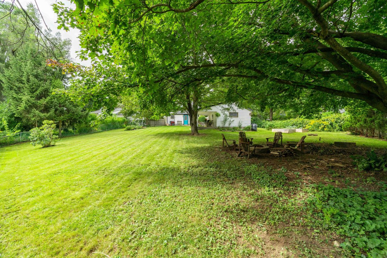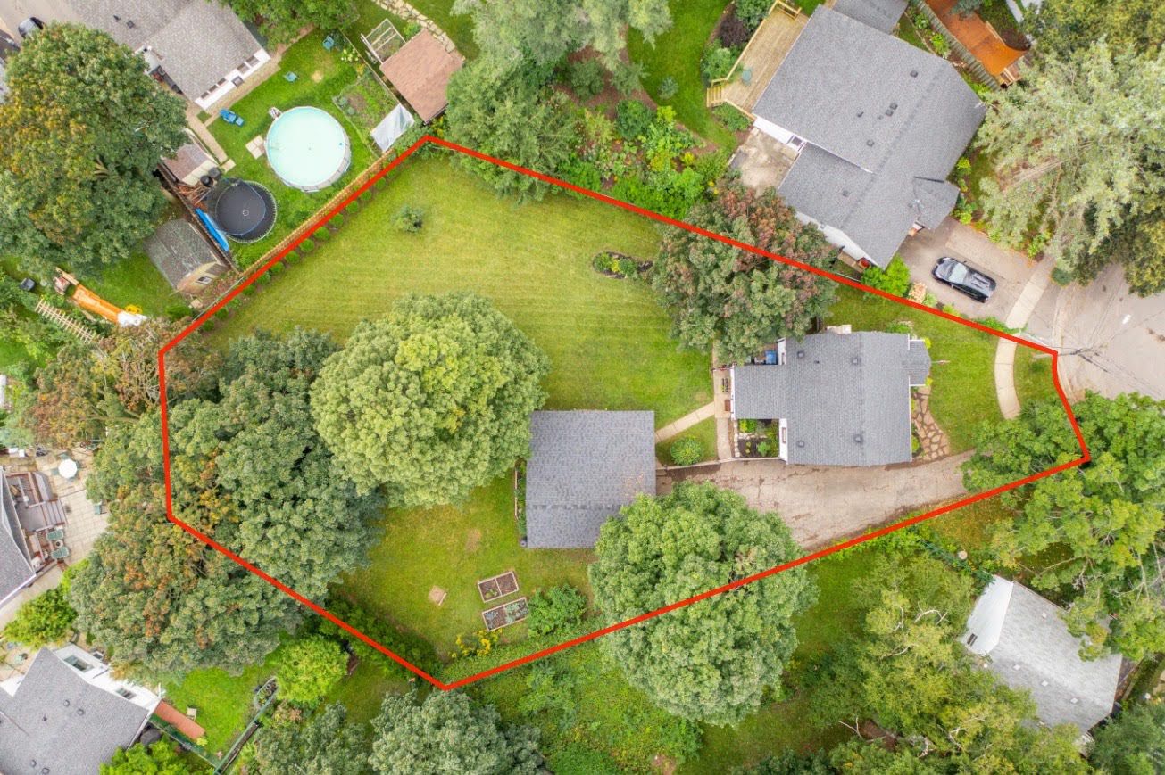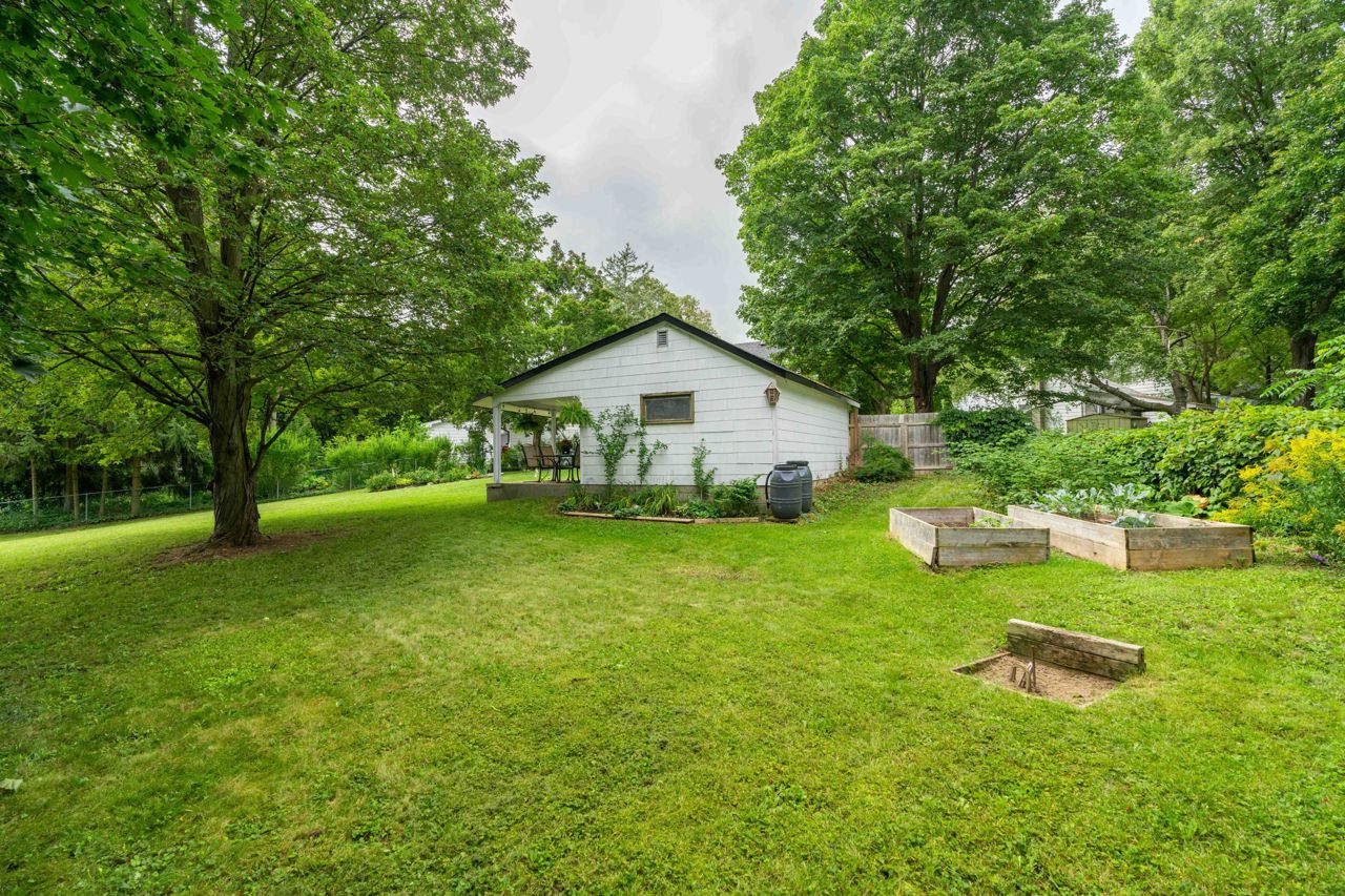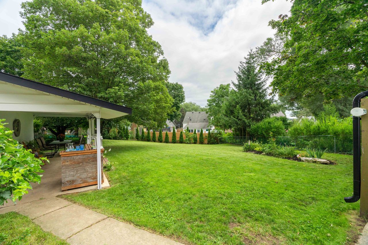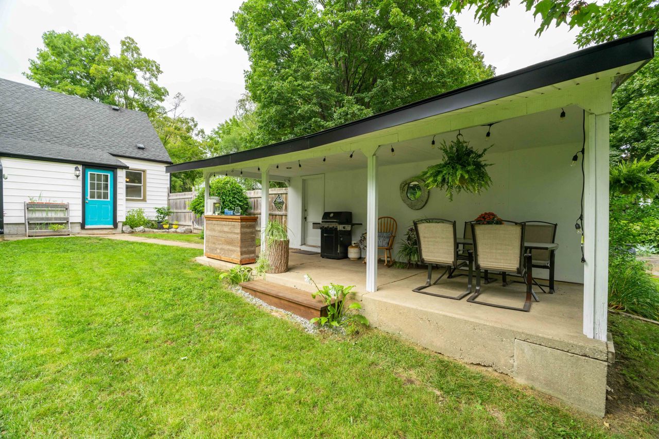 Situated on a sprawling THIRD OF AN ACRE on a charming cul-de-sac. This property offers endless possibilities and boasts a serene and lovely street setting. The exterior of the house is complemented by a detached garage (384 sq. ft) with hydro and featuring an adorable covered porch. With a spacious lot, you can let your imagination run wild, whether it's adding an addition to the existing structure, creating your dream pool oasis, or even establishing an outdoor office space – the options are limited only by your creativity. This home exudes charm and character at every turn. The large rooms are bathed in natural light, creating an inviting atmosphere throughout. The bright and welcoming family room is perfect for relaxation and gatherings, while the adjacent dining room provides an elegant space for meals and entertaining. Freshly painted oak cabinets and plenty of storage in the kitchen. With two bedrooms and a well-appointed bathroom, it offers a cozy yet comfortable living space.Hardwood floors have been refinished! basement offers additional living space and a 3rd bedroom!