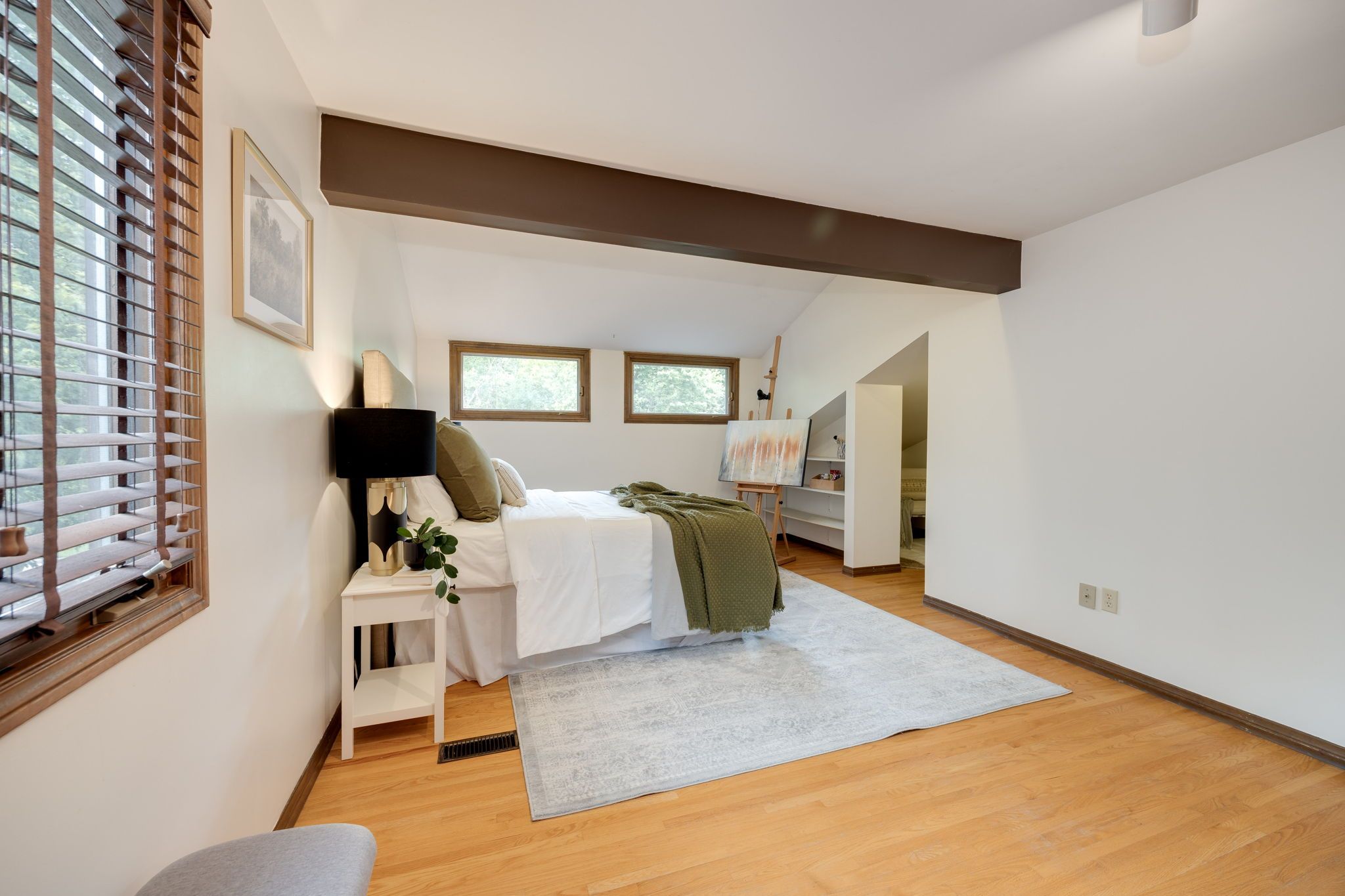 & park, viewed from bay windows in both the living room & primary bedroom. A rich West coast