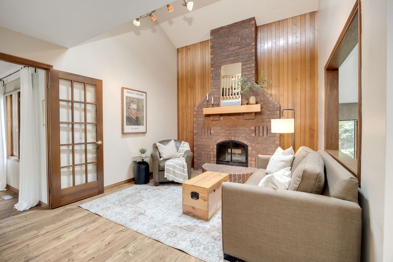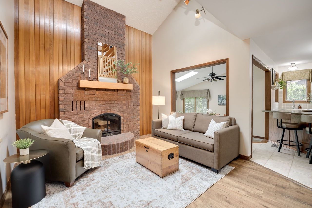 a gorgeous wood burning brick fireplace spanning up the entire wall in the family room. Enjoy the