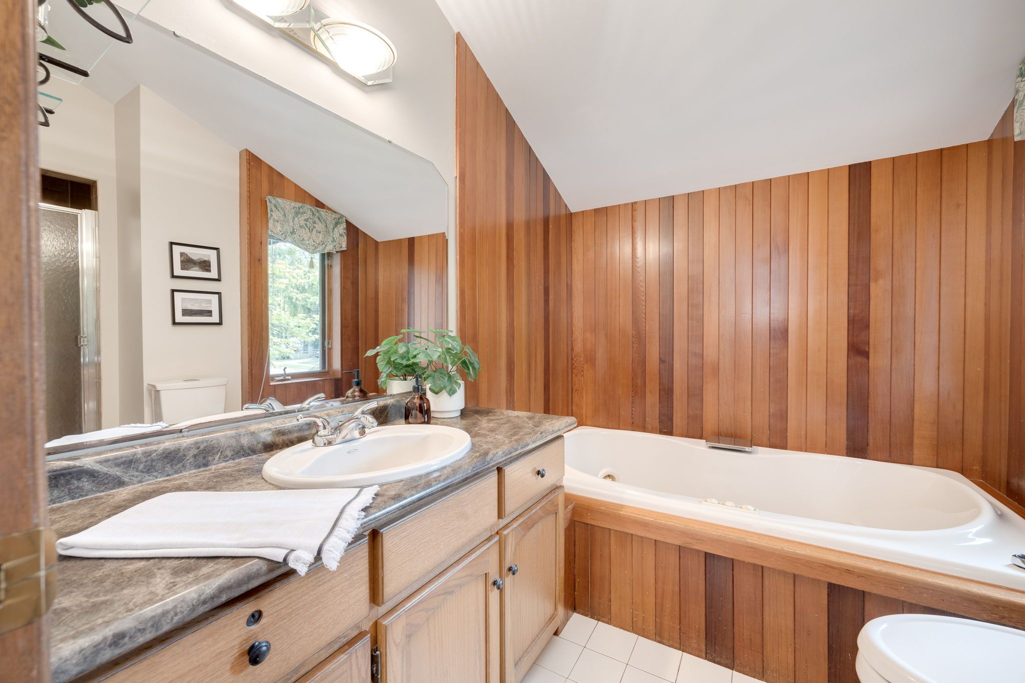 cozy ambience indoors and soak in the Jacuzzi tub or step out into the lush backyard where you