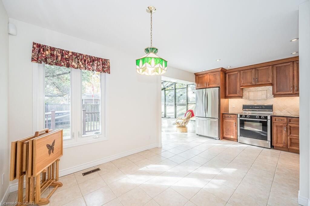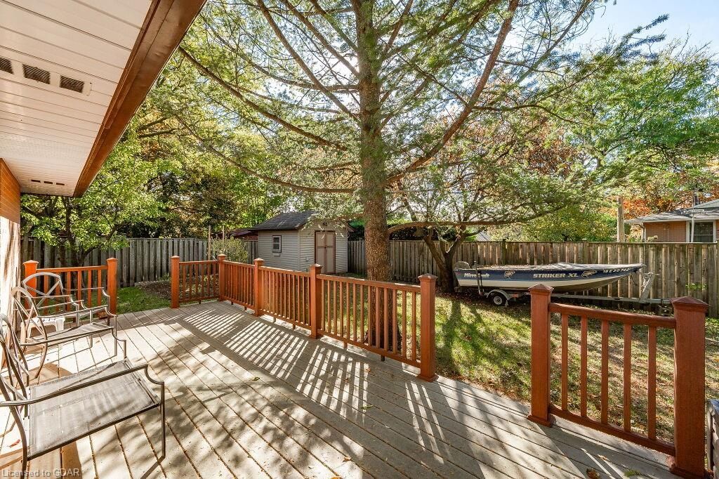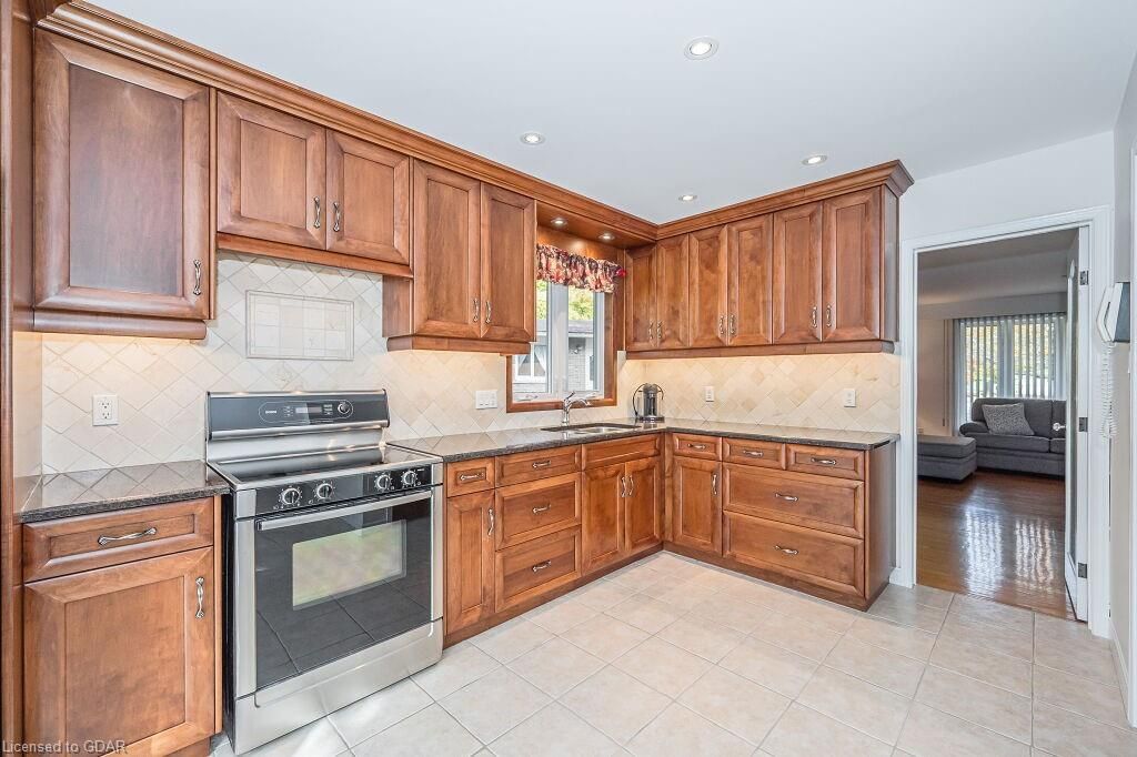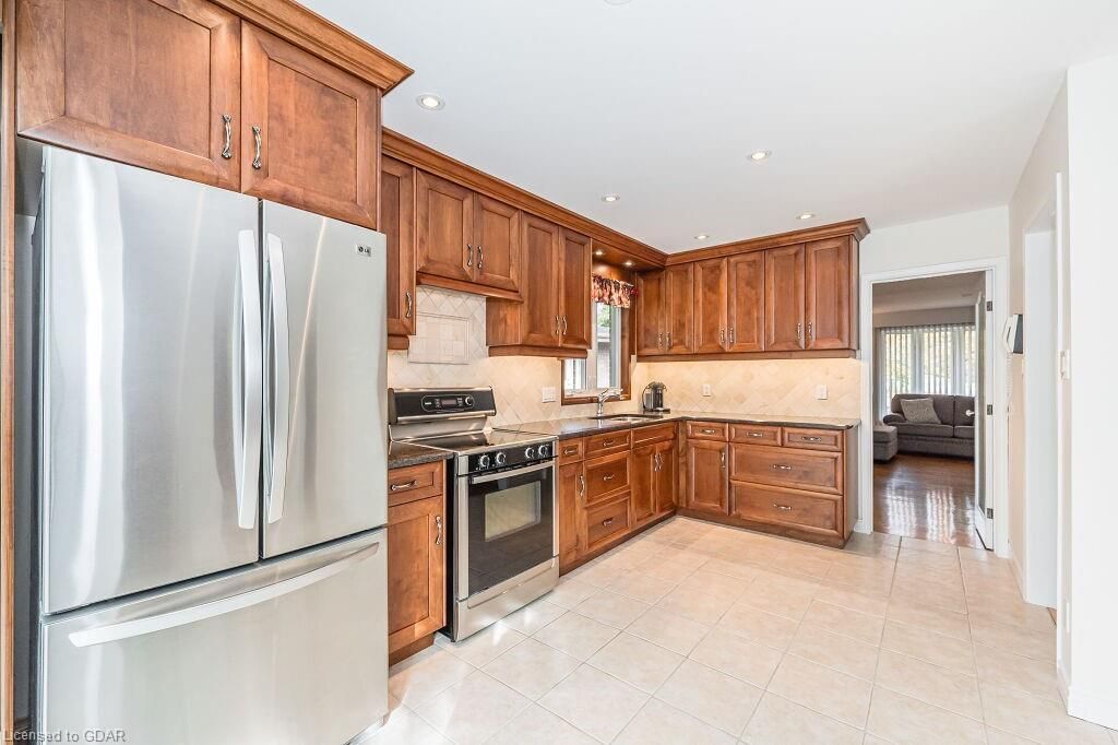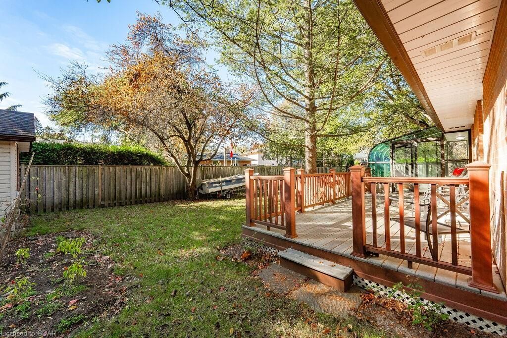 Nestled in a prime south end location, this house has recently been professionally painted, including all baseboards & trim! With Over 1800 SqFt of living space, there’s room for the whole family. You’re greeted by a welcoming foyer w/ a deep coat closet. The 1225 SqFt main floor features a Large Eat In Kitchen w/ Updated Cabinetry, Newer Appliances, Granite Counter Tops & Double Stainless Sinks. The main floor is flooded with Natural Light from the attached Sunroom & impressive windows. Sliding glass doors lead to the large 10’ x24’ composite deck. This level includes 2 large king-sized bedrooms as well as a 4-piece bathroom. The lower level has 3 bedrooms & 2-piece bathroom w/ new Vinyl Plank Flooring. The largest room (19’5 x10’9) is being used as a rec-room. The basement offers a sitting area, storage room & a Laundry/Utility room. The fully fenced yard includes a storage shed w/ power & gas hook up. Located minutes to Schools, University of Guelph, transit & amenitiesOpen House Sat October 28th and Sunday October 29th 2:00 to 4:00. Kitchen & appliances (2017), Roof (2016), Furnace approx. 10 yrs, older AC, Main floor windows (2008).