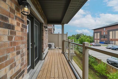 Welcome to Enclave at Pergola. This is Fusion homes built modern stack townhouse with 1301 SQ FT of space PLUS Private DRIVEWAY and One CAR GARAGE. This stunning Richmond Model offers 3 bedrooms, 2 bathrooms, and a great open concept layout with your own enclosed Balcony. END-UNIT TOP - FLOOR model provides privacy that is desired by many home owners. Reasonable CONDO - FEES and lots of sunlight. Freshly PAINTED and no expense spared to make this home MOVE-IN-READY. The main floor offers upgraded flooring with large windows and a patio walk-out. The great room provides plenty of living space as well as an open concept dining room and kitchen area. Upstairs there are 3 bright bedrooms with ample space, 4 PC washroom and ensuite Laundry/Dryer. Situated in the heart of Guelph's trendy and desirable South end, this neighborhood is minutes away from Parks, Trails, Grocery Stores, Banks, Restaurants, Galaxy Cinemas, and the Guelph Public Library - to meet all your shopping, dining, and entertainment needs. Owners have maintained this home meticulously. This unit comes with SINGLE CAR Garage with it own private Driveway. EASY COMMUTE as it is close to the 401 HWY and to elementary and high schools.Garage is located behind the unit with yellow ribbon on garage door handle. Garage has automated door with keypad access.