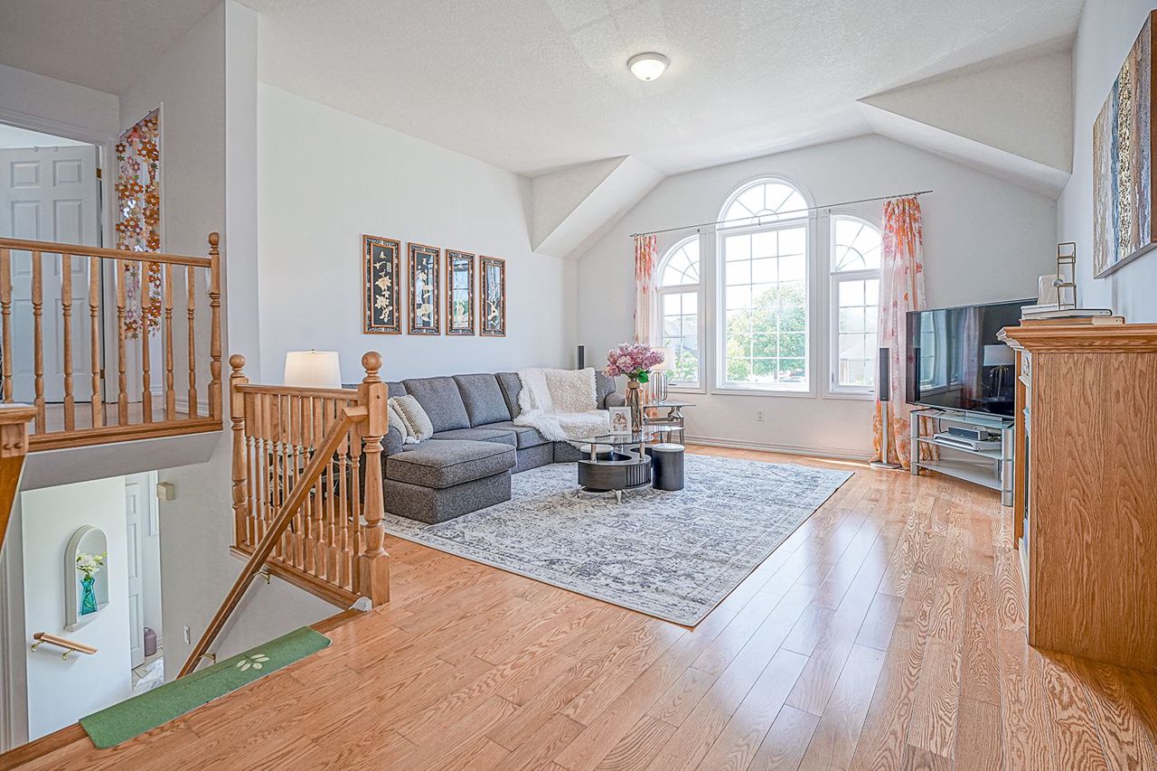 In the south end of Guelph, great for commuters. This home features beautiful nature oak hardwood through-out the house, Bright & spacious. The large kitchen has a huge pantry, stunning granite counter and large dinette area. the combined Living/Dining room give you a lot option for furniture layout, Located upstairs is a gorgeous family room with soaring cathedral ceiling and a gas fireplace. The master feature a large walk-in closet and deluxe ensuite. The two other bedrooms are spacious. The basement is completely finished with a separate entrance. Outside you will find a deck and lovely perennial gardens. The full double garage for easy parking. This home is move than 2200 square feet. This does not include the basement. large windows, central air & central vac, Great value, don't wait!