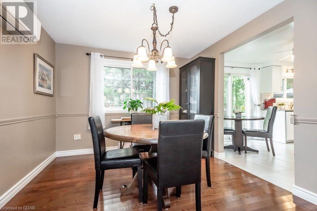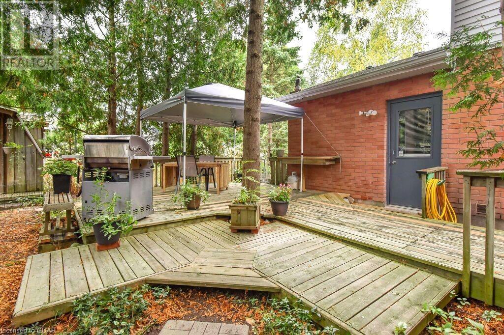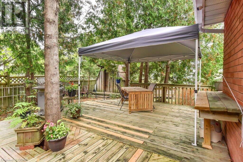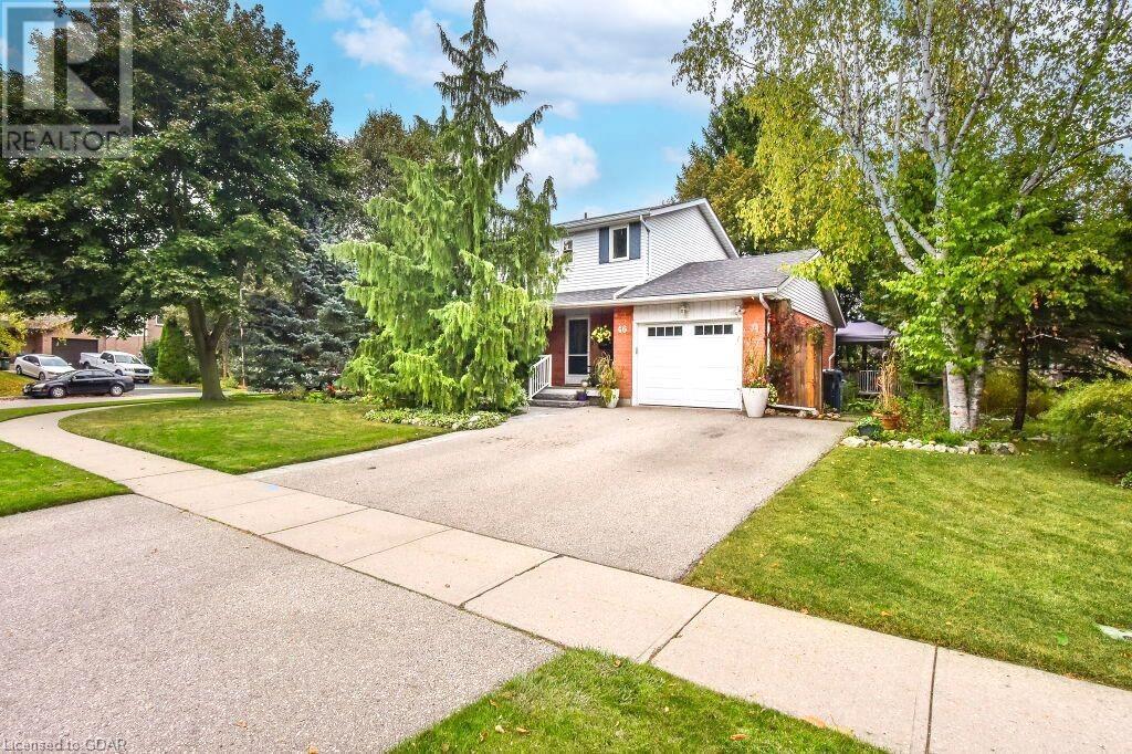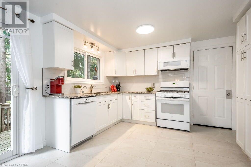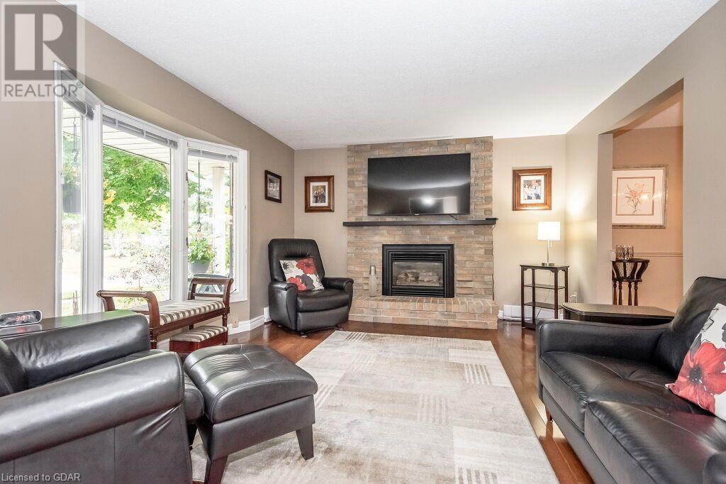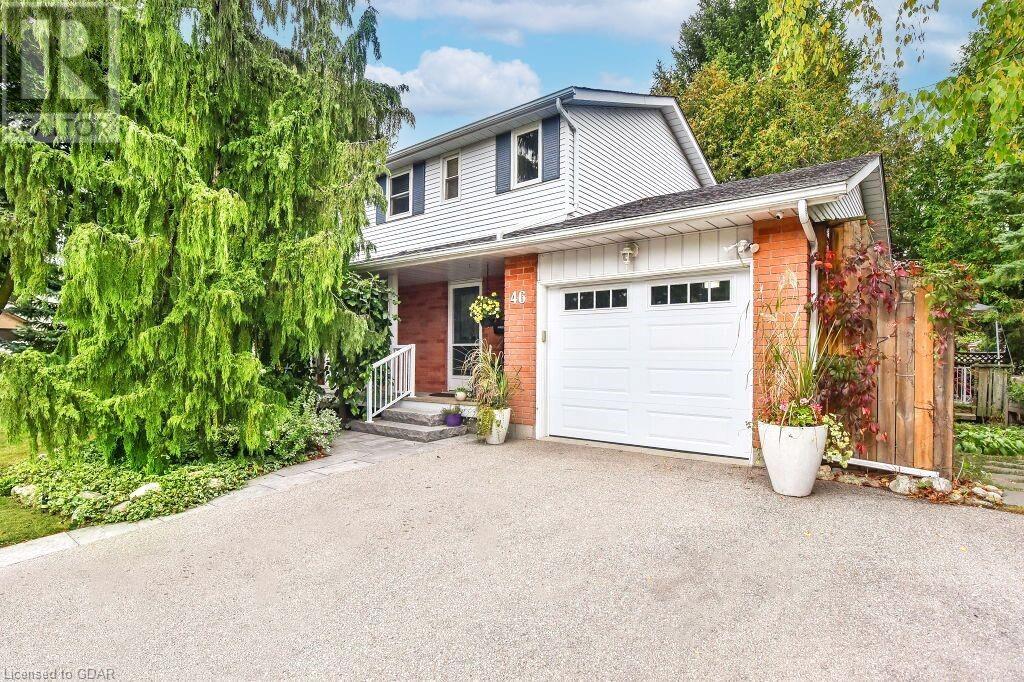 46 McElderry Rd is an exceptional 3+1 bdrm home set on a prime corner lot, meticulously landscaped & located in highly sought-after neighbourhood! You'll be greeted by mature trees, red brick exterior, attached garage & covered porch. Step inside the welcoming foyer where heated floors & ample closet space offer a cozy introduction to your new home. Bright & spacious living room W/solid hardwood floors, generous bay window & floor-to-ceiling brick mantel housing a gas fireplace creating the perfect ambience to relax & unwind. Seamlessly connected, the dining area offers picturesque views of backyard through large window & comfortably accommodates gatherings with its expansive space. Renovated eat-in kitchen W/granite counters, white cabinetry, subway tile backsplash, heated floors, bank of pantry cupboards, gas stove, garburator & hot water dispenser. Sliding doors lead to back deck surrounded by mature trees & private yard. 2pc bath completes this level of luxury. Upstairs primary bdrm offers solid hardwood floors, ample closet space & large window. 2 add'l generously sized bdrms & updated bathroom W/oversized vanity & tiled shower/tub. Lower level of home offers rec room W/gas fireplace, sizable bdrm, 3pc bath & laundry area. With some minor adjustments you can easily add sep entrance through garage creating the perfect in-law or income suite! Outside indulge in relaxation on expansive balcony perfect for family gatherings & BBQs with friends. Enjoy the serene view of your private yard & surrounding mature trees. This home has been impeccably maintained evident in every corner. Efficient heating is ensured, predominantly through main floor heated floors, fireplaces & heat pumps. Nestled in a sought-after neighbourhood, conveniently located down the street from St. Michael Catholic School, Jean Little PS & Rickson Park. Minutes from U of G, Stone Rd Mall & plethora of amenities catering to all your needs. Short drive to the Hanlon provides effortless access to 401. (id:22211)