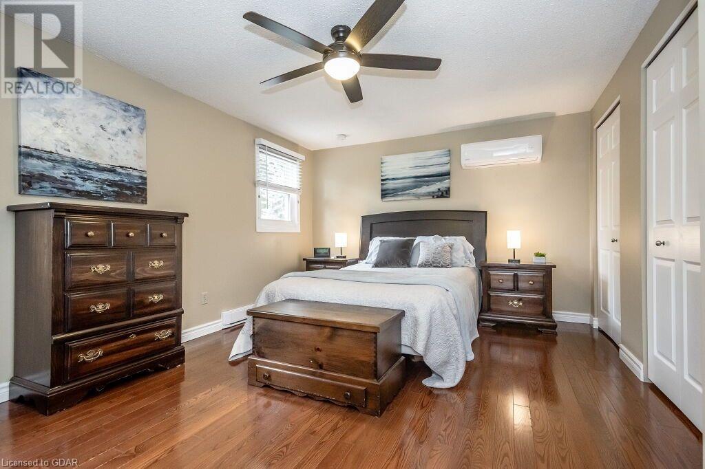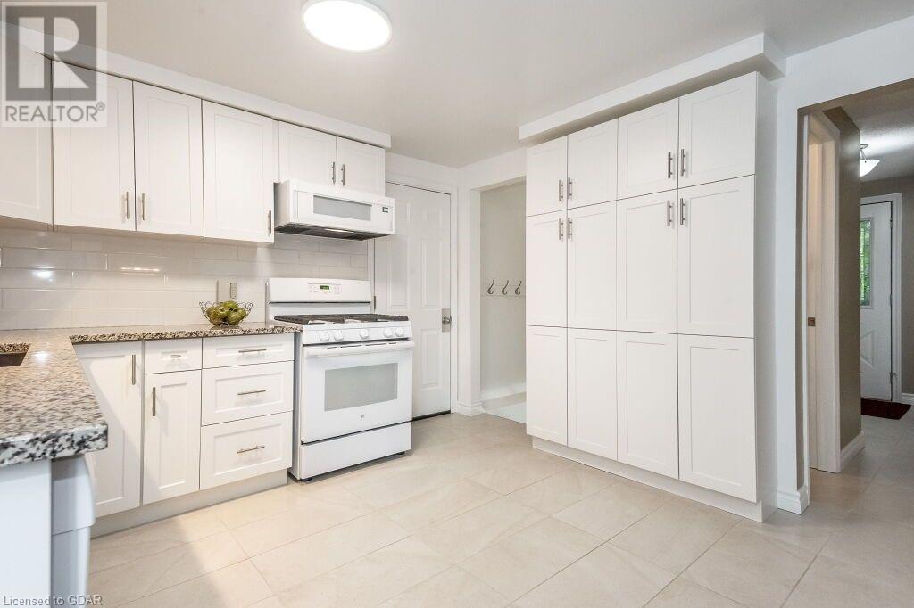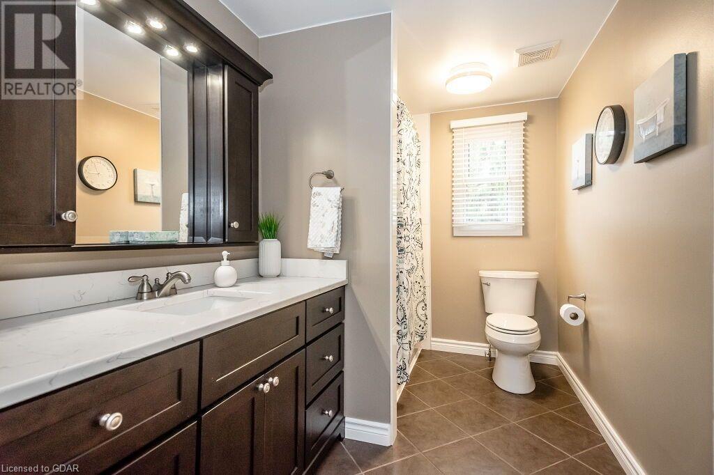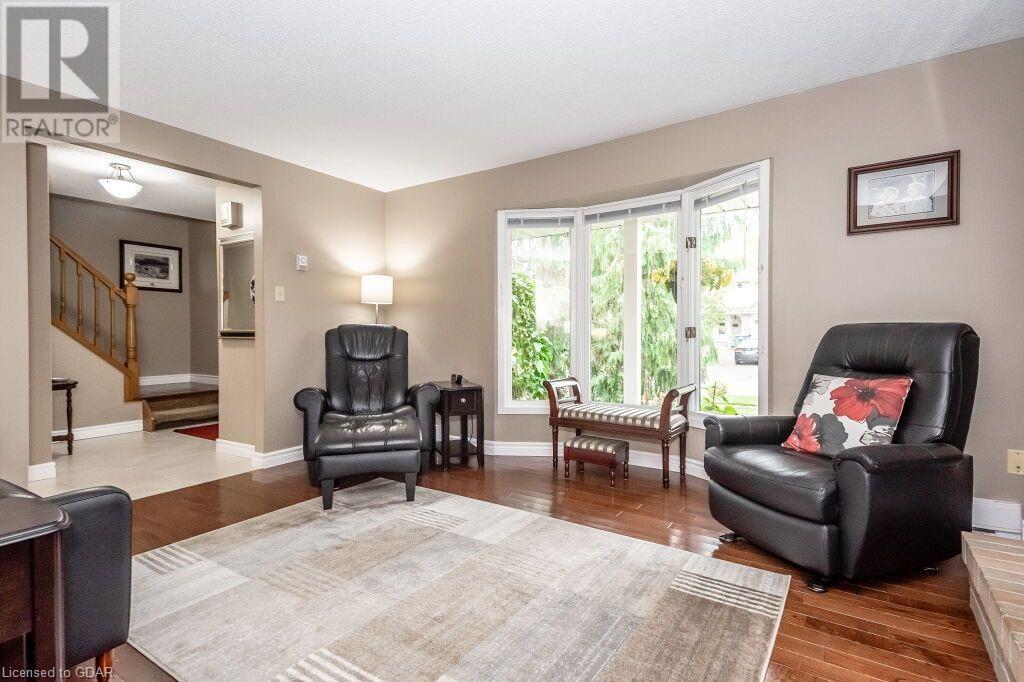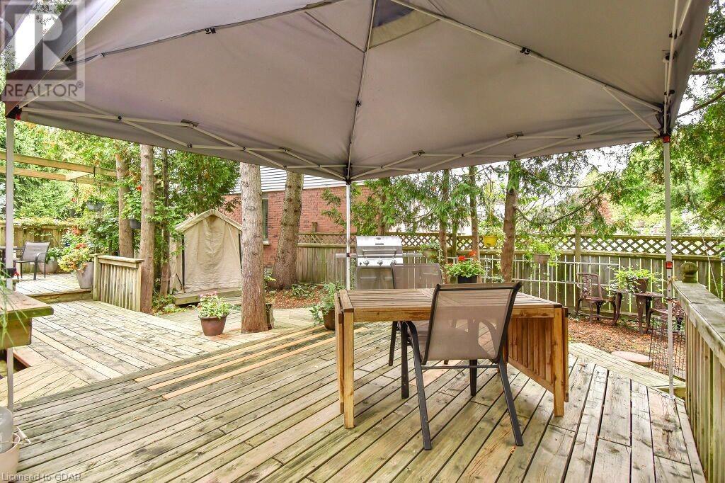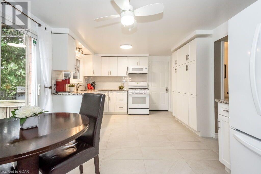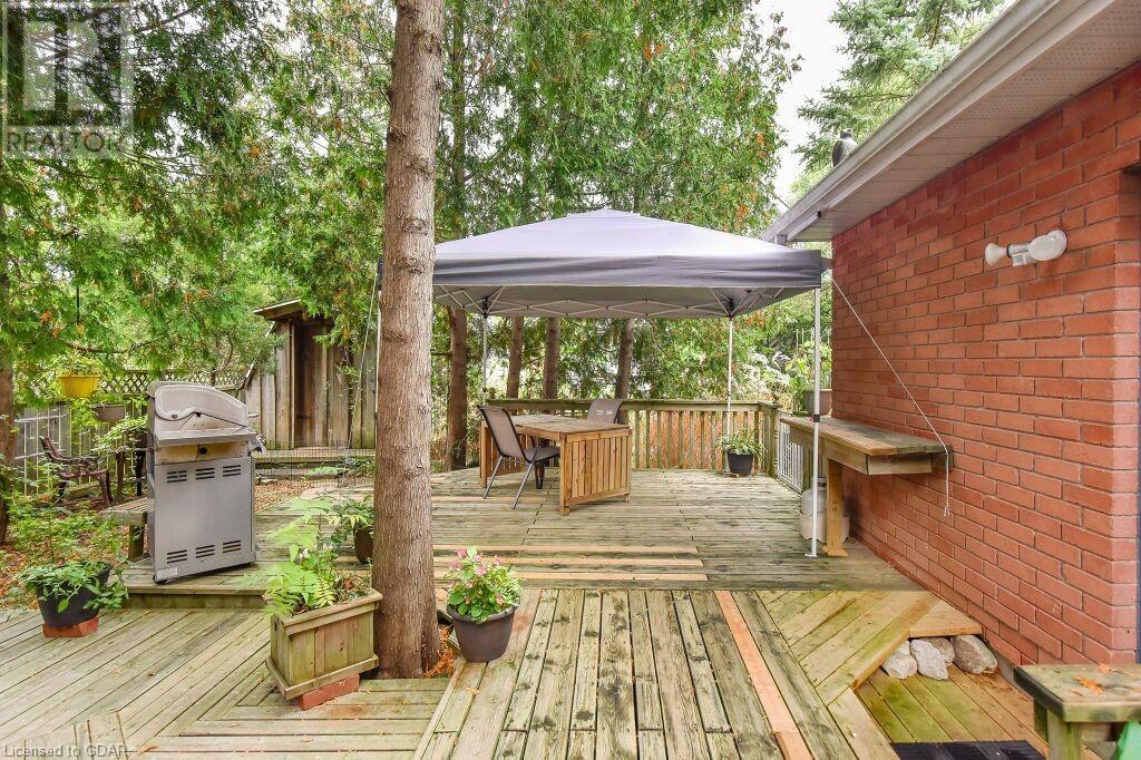 46 McElderry Rd is an exceptional 3+1 bdrm home set on a prime corner lot, meticulously landscaped & located in highly sought-after neighbourhood! You'll be greeted by mature trees, red brick exterior, attached garage & covered porch. Step inside the welcoming foyer where heated floors & ample closet space offer a cozy introduction to your new home. Bright & spacious living room W/solid hardwood floors, generous bay window & floor-to-ceiling brick mantel housing a gas fireplace creating the perfect ambience to relax & unwind. Seamlessly connected, the dining area offers picturesque views of backyard through large window & comfortably accommodates gatherings with its expansive space. Renovated eat-in kitchen W/granite counters, white cabinetry, subway tile backsplash, heated floors, bank of pantry cupboards, gas stove, garburator & hot water dispenser. Sliding doors lead to back deck surrounded by mature trees & private yard. 2pc bath completes this level of luxury. Upstairs primary bdrm offers solid hardwood floors, ample closet space & large window. 2 add'l generously sized bdrms & updated bathroom W/oversized vanity & tiled shower/tub. Lower level of home offers rec room W/gas fireplace, sizable bdrm, 3pc bath & laundry area. With some minor adjustments you can easily add sep entrance through garage creating the perfect in-law or income suite! Outside indulge in relaxation on expansive balcony perfect for family gatherings & BBQs with friends. Enjoy the serene view of your private yard & surrounding mature trees. This home has been impeccably maintained evident in every corner. Efficient heating is ensured, predominantly through main floor heated floors, fireplaces & heat pumps. Nestled in a sought-after neighbourhood, conveniently located down the street from St. Michael Catholic School, Jean Little PS & Rickson Park. Minutes from U of G, Stone Rd Mall & plethora of amenities catering to all your needs. Short drive to the Hanlon provides effortless access to 401. (id:22211)