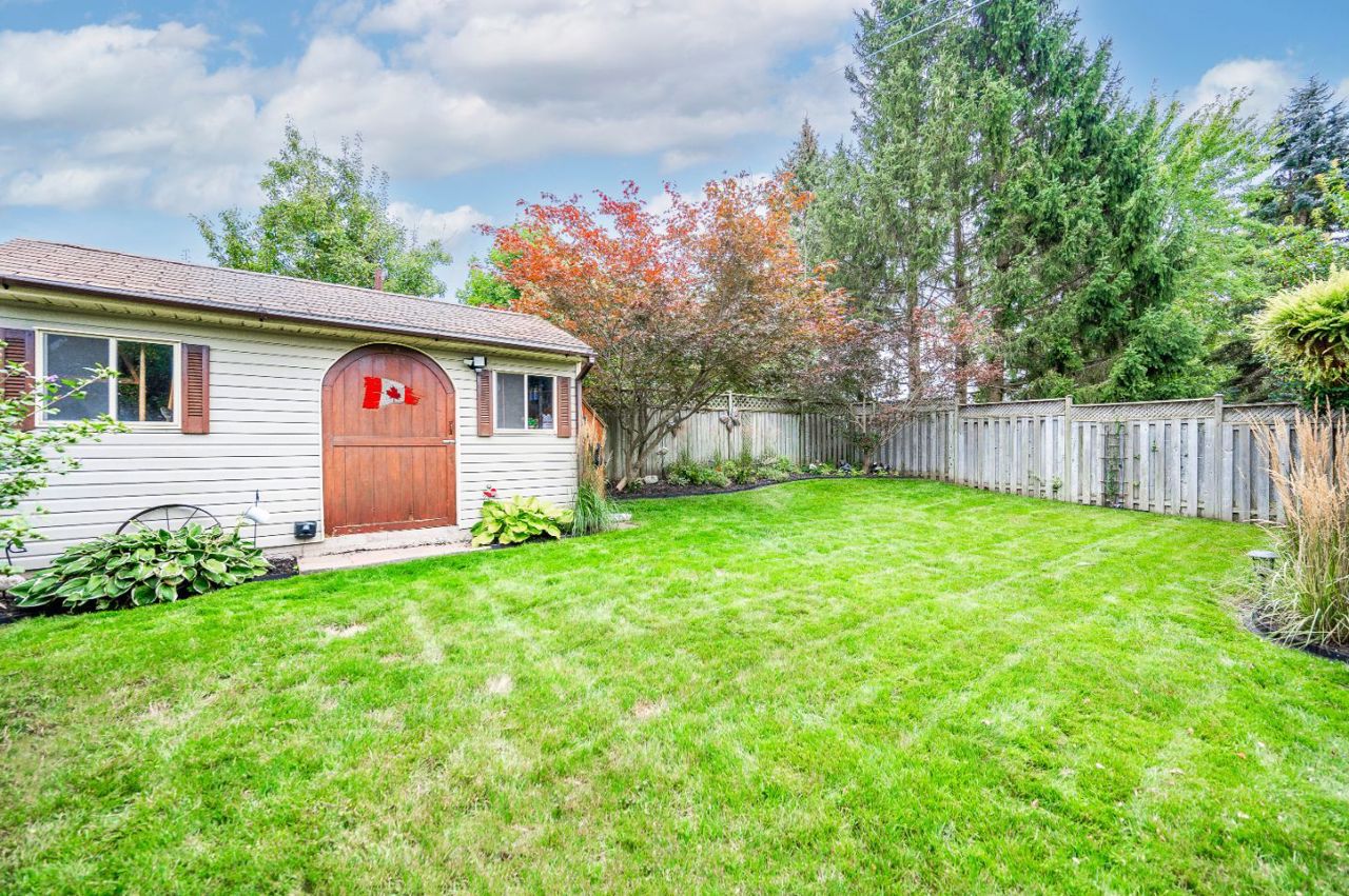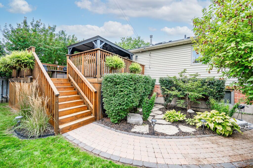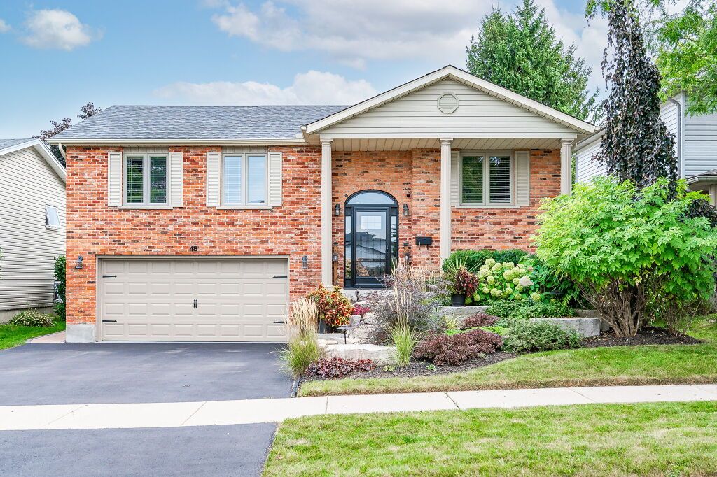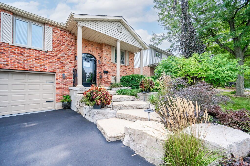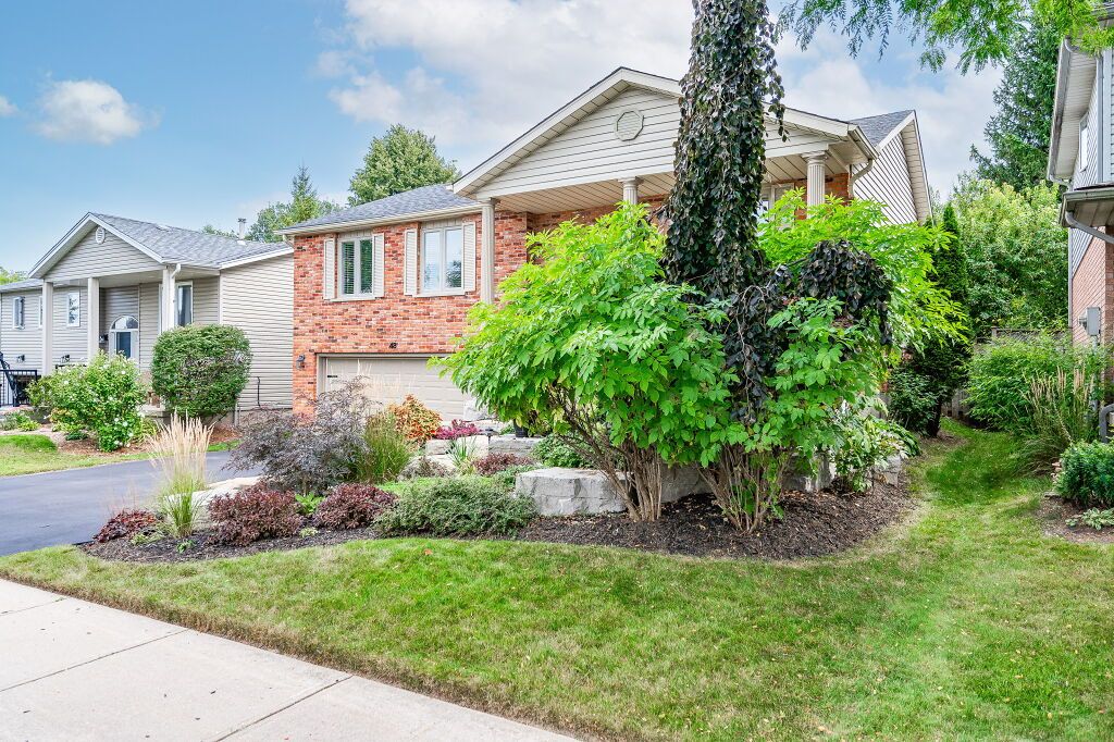 Spectacular 3-bdrm raised bungalow on mature street in highly sought-after, family-friendly neighbourhood! Red brick exterior, landscaped gardens, covered porch & recently sealed driveway greet you complemented by attached 2-car garage. Spacious living & dining area W/hardwood & natural light streaming through generously sized windows. Dining space easily accommodates large gatherings perfect for creating memories. Updated eat-in kitchen W/freshly stained cabinetry, backsplash, ample counter space & high-quality S/S appliances. Primary bdrm W/window W/views of backyard & W/I closet W/custom B/I shelving. 2 add'l bdrms W/ample closet space. Updated 5pc bath W/dbl sinks, separate shower, separate tub, heated floors & skylight. Finished bsmt W/rec room, expansive windows & gas fireplace. 3pc bath, laundry & cold room. Entertain on back deck overlooking landscaped yard. Gas hook up on deck for BBQing. Lush gardens & mature trees create serene oasis providing ample privacy W/tall wood fence14 X 8 ft shed & interlock pathway leading to front of house. Close to Elmira Park, Stephanie Dr Park & trails. Short stroll to Taylor Evans PS, Gateway Dr PS & St Francis of Assisi Catholic.Mins from Costco, Zehrs, LCBO, banks, restaurants