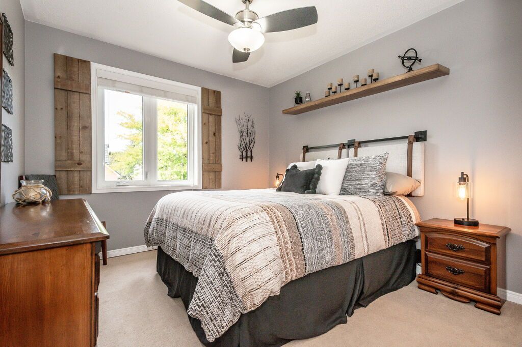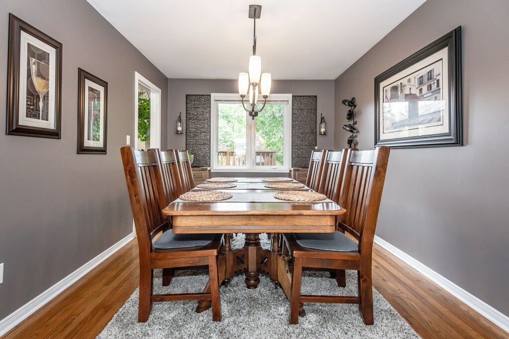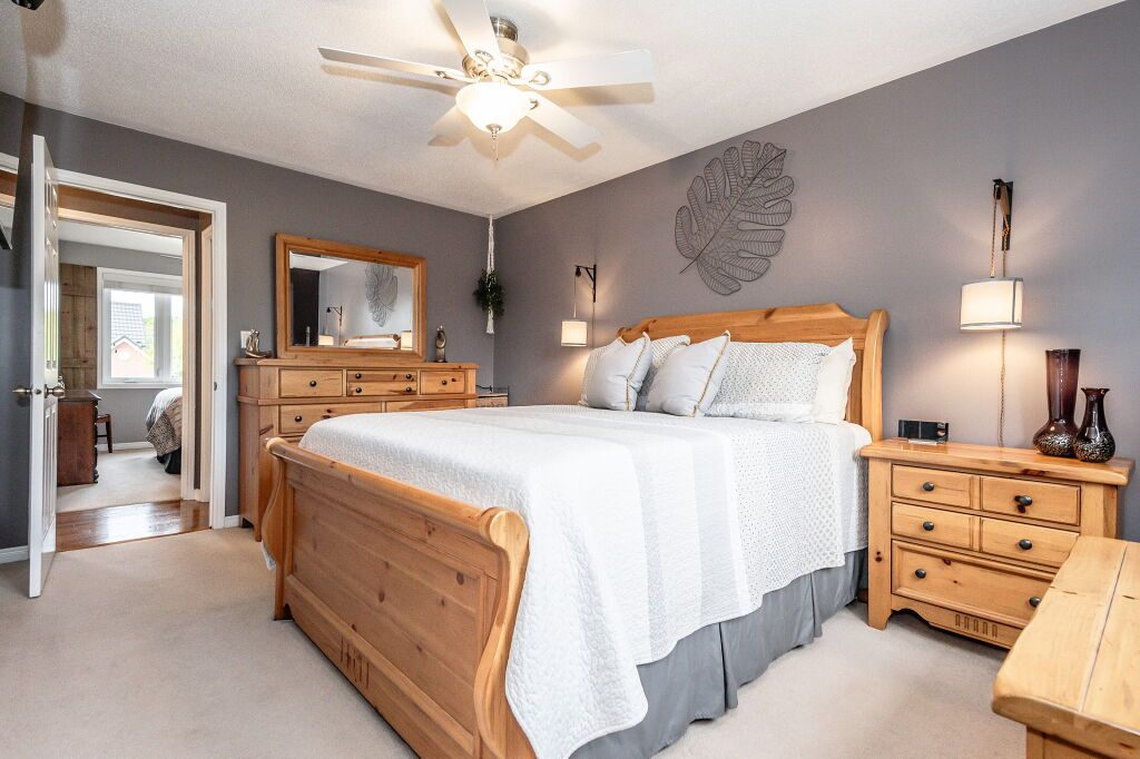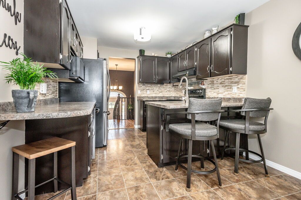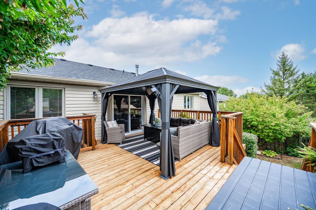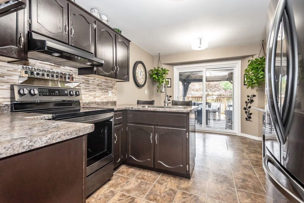 Spectacular 3-bdrm raised bungalow on mature street in highly sought-after, family-friendly neighbourhood! Red brick exterior, landscaped gardens, covered porch & recently sealed driveway greet you complemented by attached 2-car garage. Spacious living & dining area W/hardwood & natural light streaming through generously sized windows. Dining space easily accommodates large gatherings perfect for creating memories. Updated eat-in kitchen W/freshly stained cabinetry, backsplash, ample counter space & high-quality S/S appliances. Primary bdrm W/window W/views of backyard & W/I closet W/custom B/I shelving. 2 add'l bdrms W/ample closet space. Updated 5pc bath W/dbl sinks, separate shower, separate tub, heated floors & skylight. Finished bsmt W/rec room, expansive windows & gas fireplace. 3pc bath, laundry & cold room. Entertain on back deck overlooking landscaped yard. Gas hook up on deck for BBQing. Lush gardens & mature trees create serene oasis providing ample privacy W/tall wood fence14 X 8 ft shed & interlock pathway leading to front of house. Close to Elmira Park, Stephanie Dr Park & trails. Short stroll to Taylor Evans PS, Gateway Dr PS & St Francis of Assisi Catholic.Mins from Costco, Zehrs, LCBO, banks, restaurants