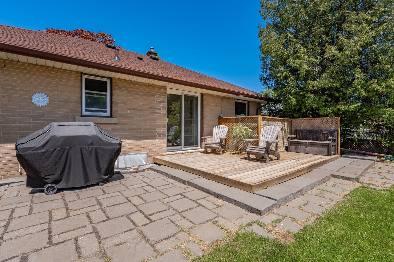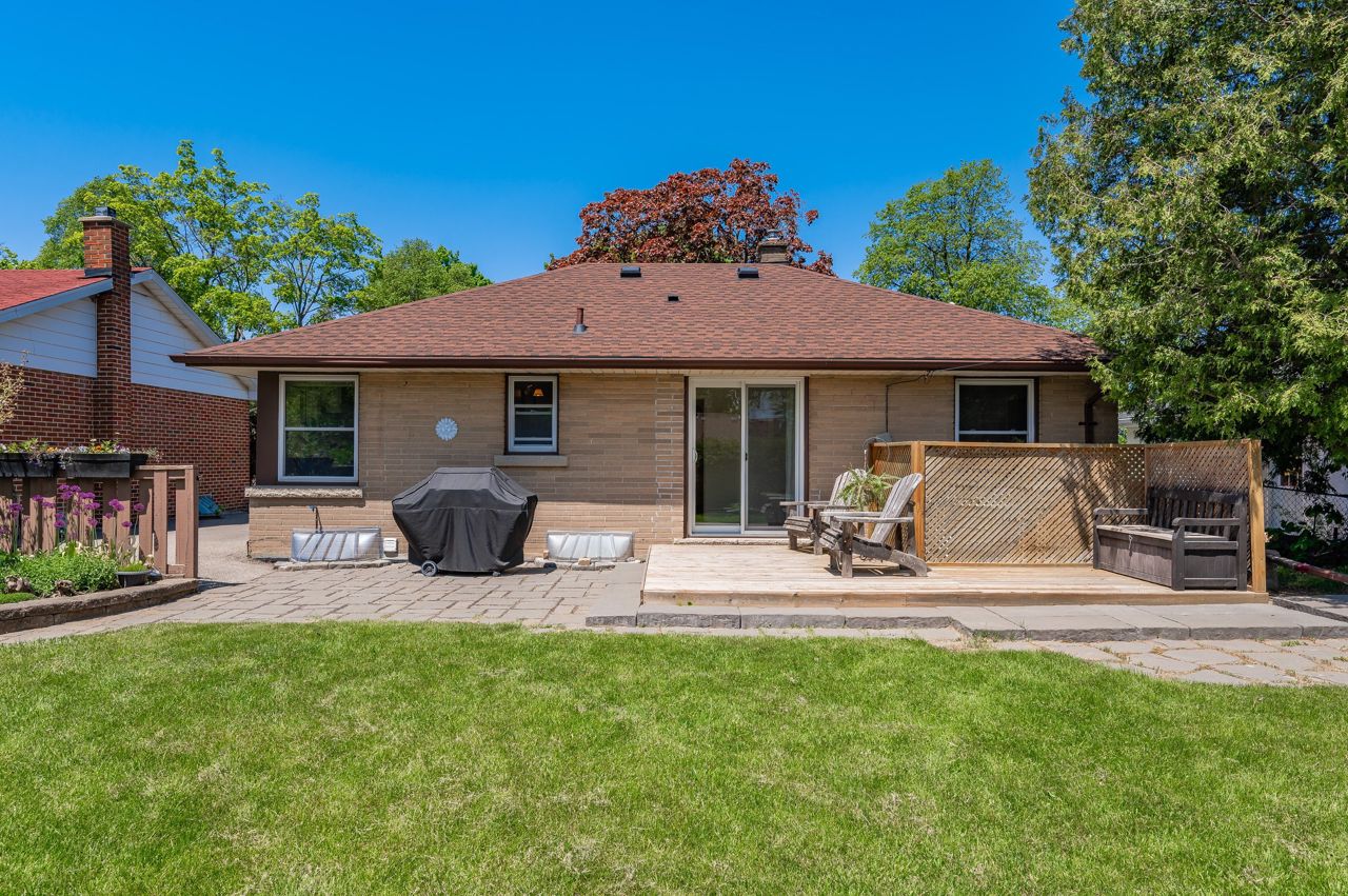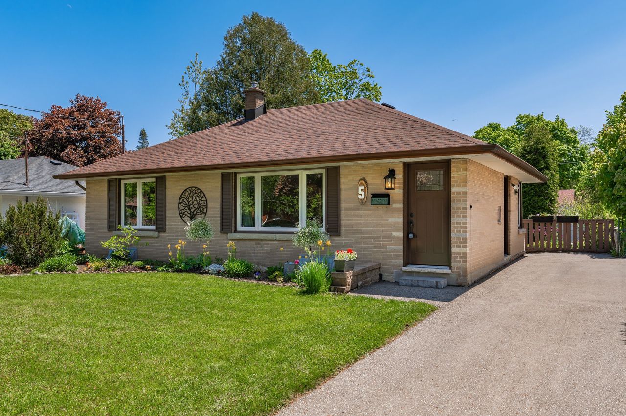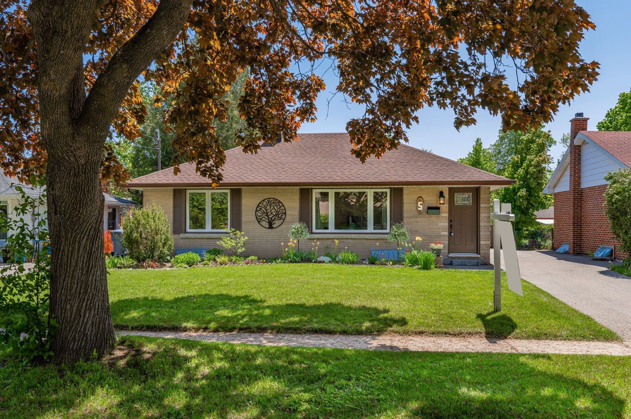 This 5-bedroom (3+2) brick bungalow sits near Riverside Park on a beautiful 50x100 ft lot and is truly move-in ready with some amazing updates. The main level is carpet-free and plaster construction. Hardwood flooring in the living room, updated kitchen with tiled backsplash, newer cabinetry and countertops, stainless steel appliances including a gas stove. The 3 main-level bedrooms have either hardwood or laminate flooring, updated windows, and high baseboards. Main level bathroom is updated with slate tile flooring, a walk-in shower, and stone counters. Side entrance leads to finished basement with a large family room, 2 additional bedrooms, another 3-piece bathroom, and laundry room with additional storage. The driveway has parking for 3 cars and there is a beautiful backyard with a deck, natural gas hookup for the BBQ, some stone hardscape, beautiful trees, and gardens. This neighborhood is very quiet with mature trees and easy access to all the amenities you would need steps away.Furnace/AC (2012), roof (2021), windows (2013), hardwood (2017), waterproof foundation with weeping tile (2016 - wasn't leaking but done preventatively), driveway (2017).