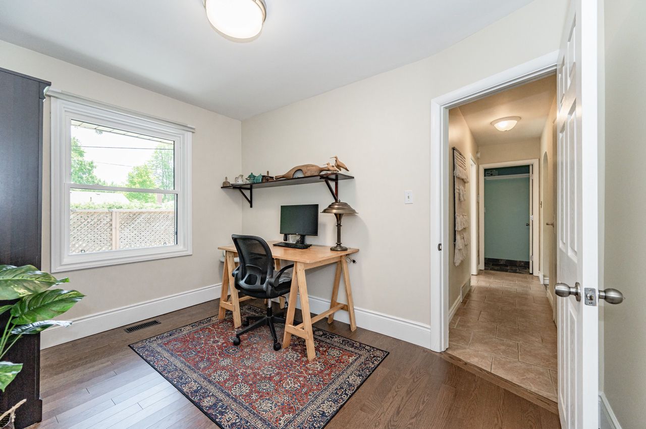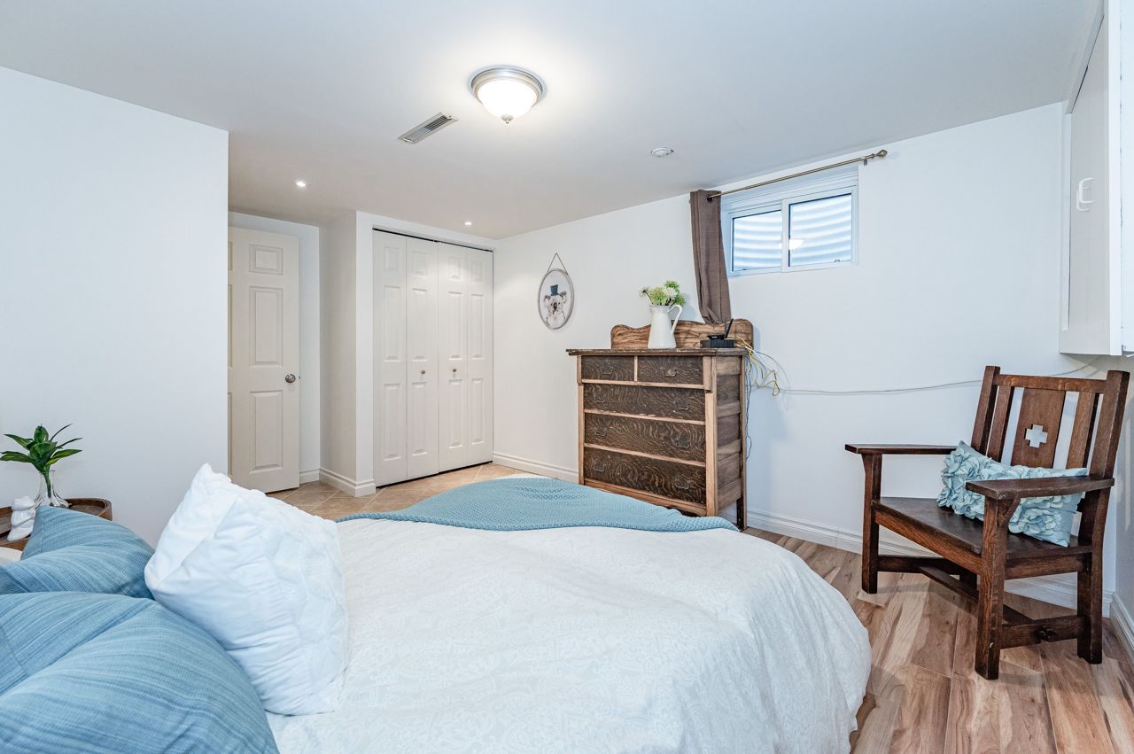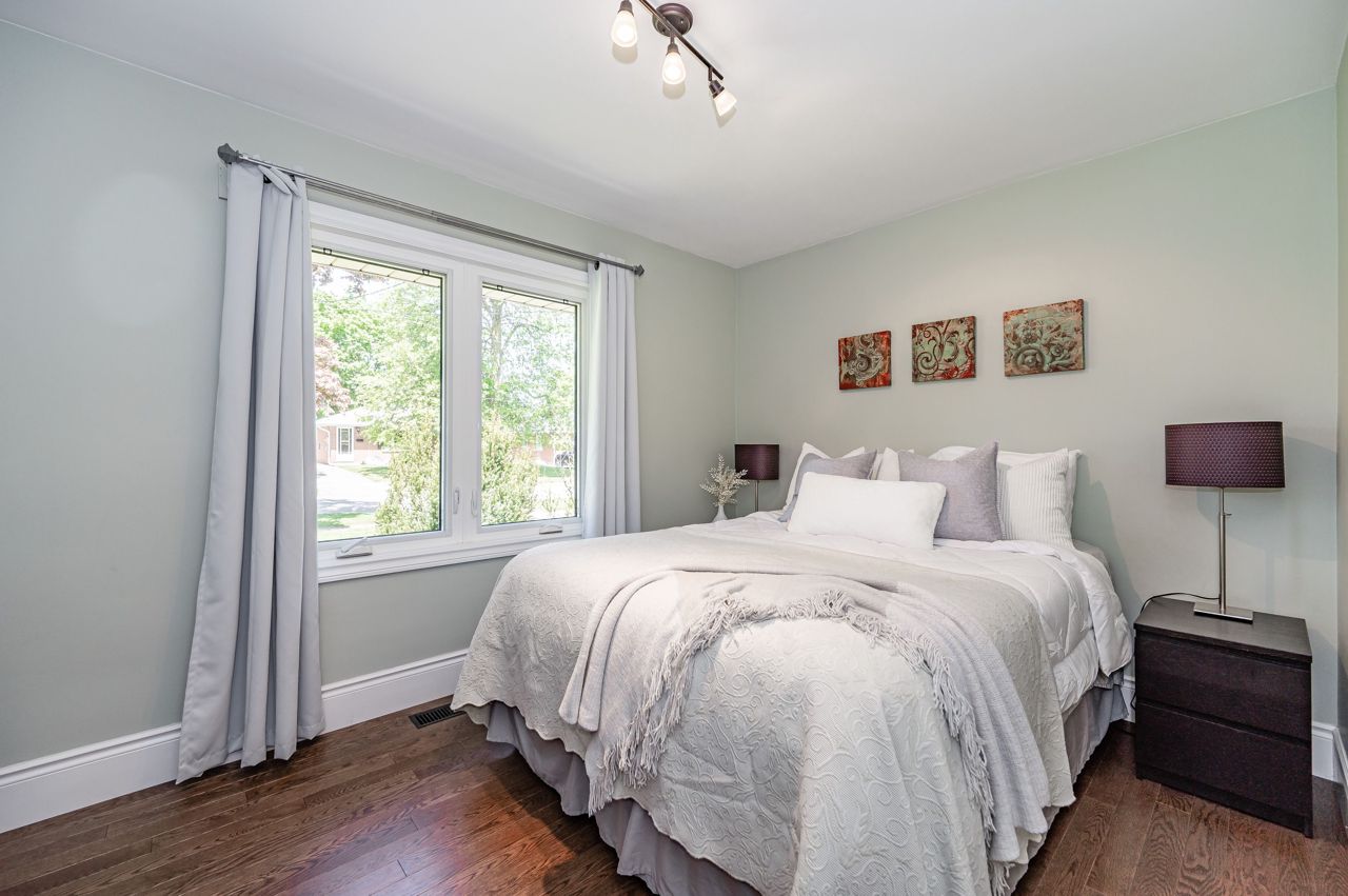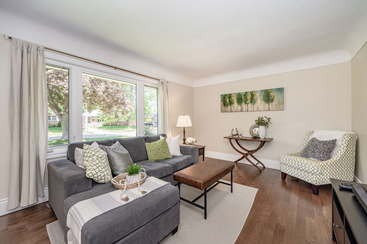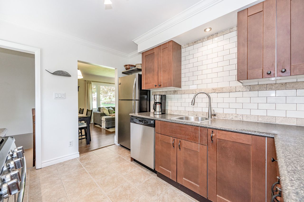 This 5-bedroom (3+2) brick bungalow sits near Riverside Park on a beautiful 50x100 ft lot and is truly move-in ready with some amazing updates. The main level is carpet-free and plaster construction. Hardwood flooring in the living room, updated kitchen with tiled backsplash, newer cabinetry and countertops, stainless steel appliances including a gas stove. The 3 main-level bedrooms have either hardwood or laminate flooring, updated windows, and high baseboards. Main level bathroom is updated with slate tile flooring, a walk-in shower, and stone counters. Side entrance leads to finished basement with a large family room, 2 additional bedrooms, another 3-piece bathroom, and laundry room with additional storage. The driveway has parking for 3 cars and there is a beautiful backyard with a deck, natural gas hookup for the BBQ, some stone hardscape, beautiful trees, and gardens. This neighborhood is very quiet with mature trees and easy access to all the amenities you would need steps away.Furnace/AC (2012), roof (2021), windows (2013), hardwood (2017), waterproof foundation with weeping tile (2016 - wasn't leaking but done preventatively), driveway (2017).