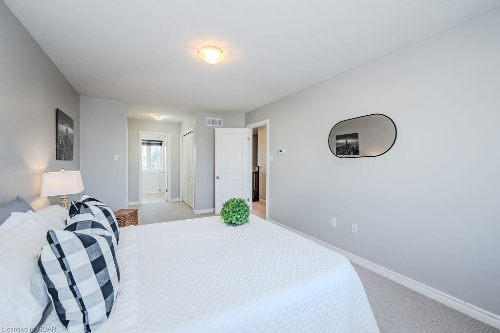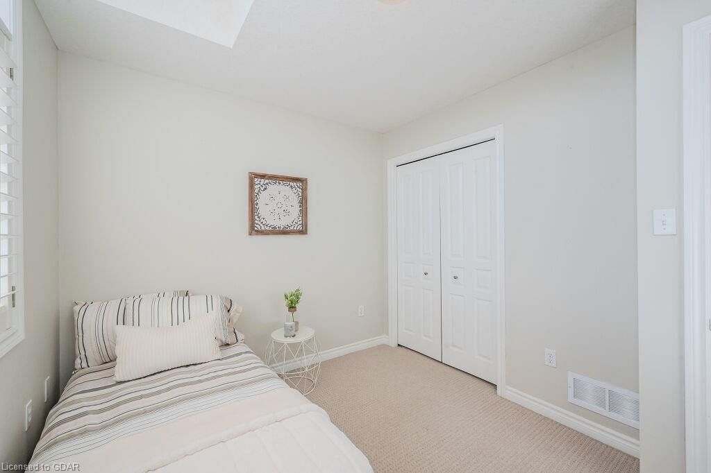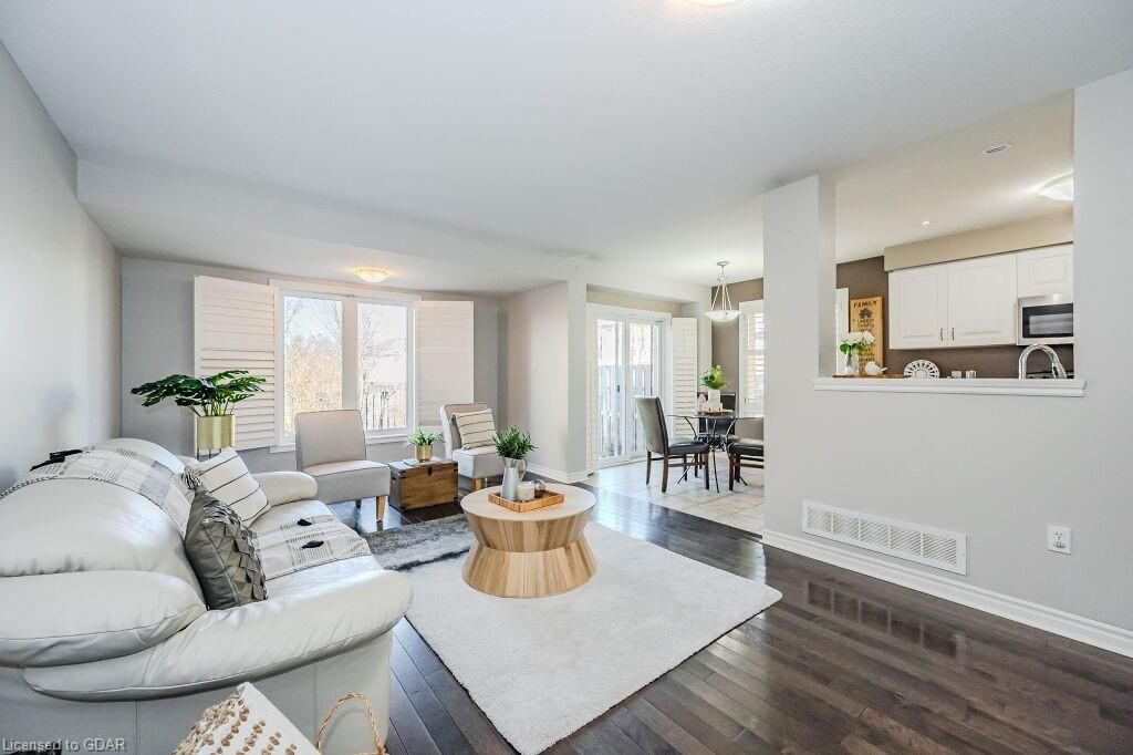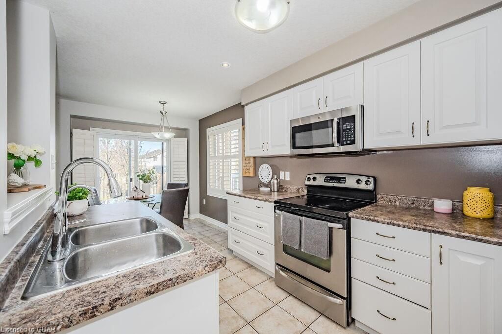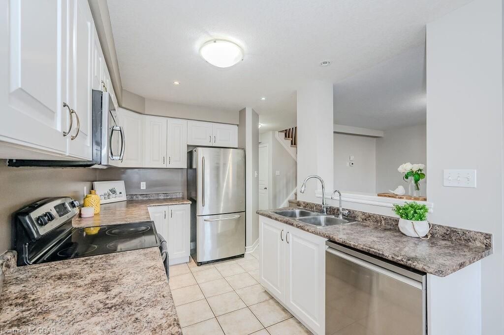 This home has South end Guelph convenience with a reasonable price. End unit townhome (just like semi) that is 2 minutes drive from the Clair/Gordon complex with its grocery stores, restaurants, gyms, and banks. Possibly the quickest access to the 401 that you can get from Guelph. Three nice sized secondary bedrooms and a long/deep primary bedroom with ensuite. Ceramic floor at entry as you enter into a mostly open main with SS. California shutters on the main floor windows. It comes with some energy efficiency upgrades as well. There's a dedicated HRV, and a grey water heat recovery line. I even like the single car garage, that looks like it's a little longer for a toolbench. Great school district, it's located in the Westminster Woods/St Ignatius catchment. This is perhaps the most reasonably priced way that you will have of living in the far South end of Guelph. Take a look, and let us know what you think! Roof 2017, Washer 2019, Dishwasher 2020.