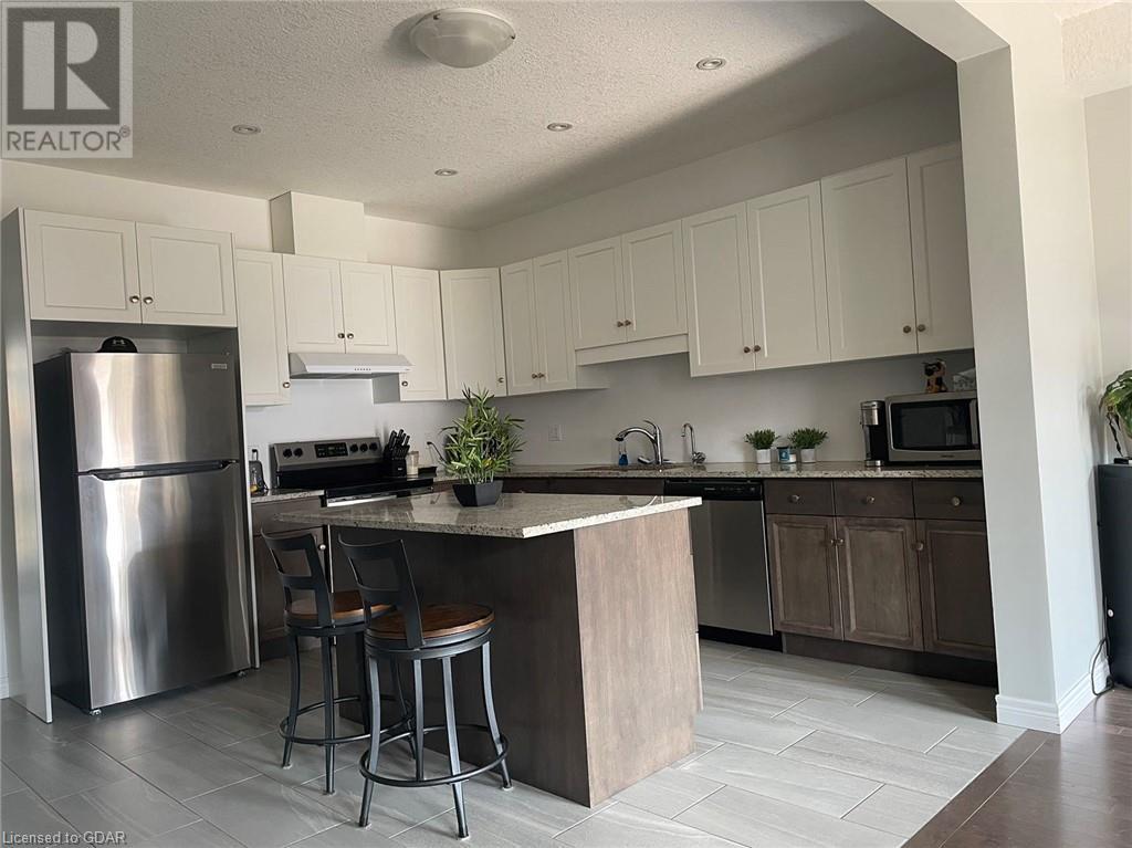 2 year old/1650 sqft/3 bedroom end unit townhouse available for lease in the south end of Guelph. Main floor has an open and functional layout. Kitchen features granite countertop and stainless-steel appliances. Great room walks to a beautiful deck. Upstairs you will find three good sized bedrooms with two full bathrooms. Master bedroom has private en-suite. Laundry is conveniently located on the second floor. Includes a full unfinished basement. Walking distance to all the amenities such as movie theater, playground, grocery stores, restaurants, banks etc in the south end and quick access to 401. Bus route on the street. Make this your next home. (id:22211)