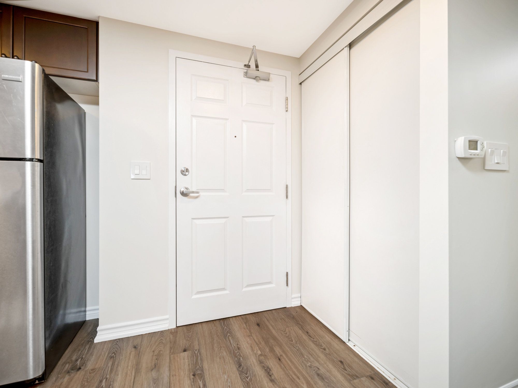 Spectacular ground floor unit, close to the front entrance in a quiet, pet friendly building. This 2 bedroom plus den layout has the largest Primary Bedroom out of all 2 bed models in the Building. Open concept den is the perfect office nook. Freshly painted throughout with high end vinyl plank flooring throughout the entire unit. New Decora switches and led overhead lighting. Huge Laundry/utility room gives you plenty of room for storage. Stainless steel appliances. Walkout from Living Room to private balcony on the quiet side of the building. One parking spot. Lots of visitor parking. Great south end location close to schools, trails, shopping, restaurants and a cinema. Save over $600/month with an assumable Mortgage opportunity on this property!