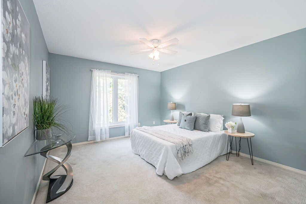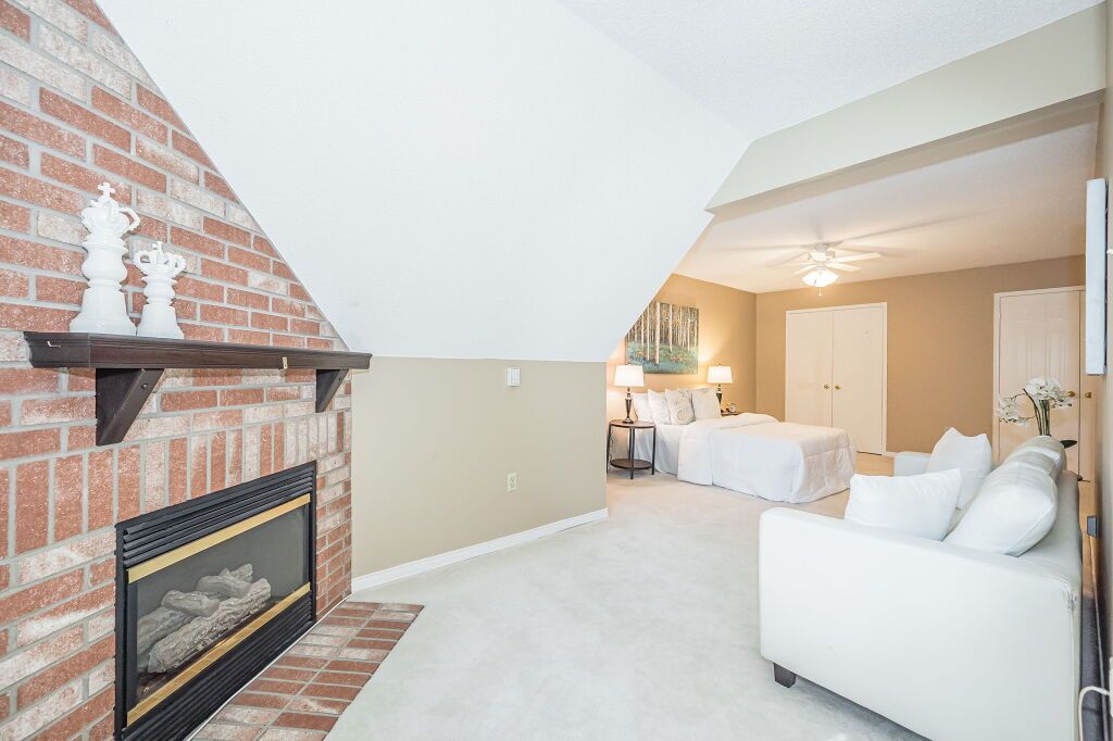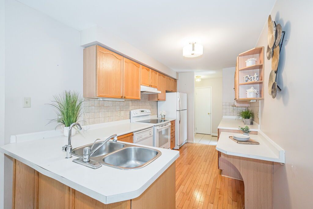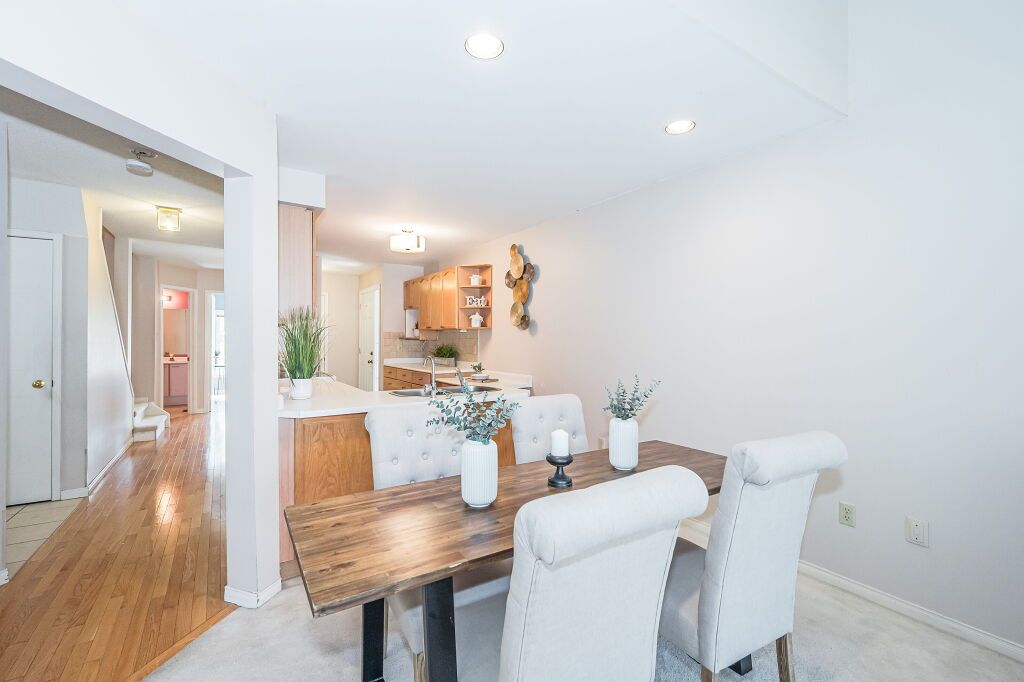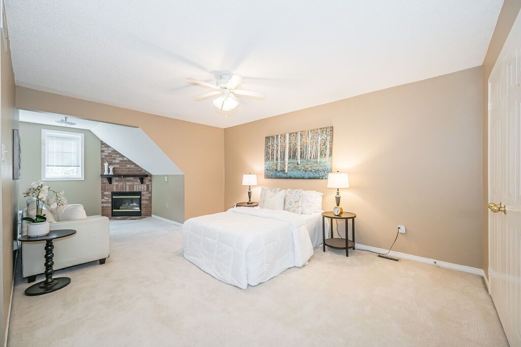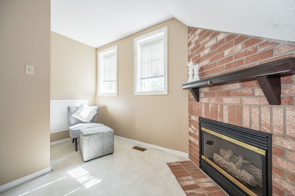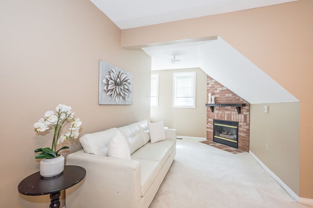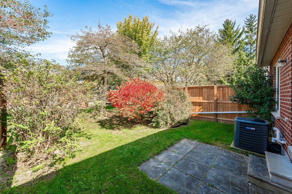Inviting 3-bdrm townhouse nestled in tranquil family-oriented neighbourhood surrounded by amenities! Upon entering you'll notice spacious kitchen W/solid hardwood floors, tiled backsplash & ample counter space. Open to living/dining room W/vaulted ceilings & massive window. Sliding door provides access to back patio overlooking beautiful mature trees. There are tall wood fences on both sides creating ample privacy. Primary bdrm on main floor is generously proportioned & features large window offering views of backyard & W/I closet W/custom-built shelving. Ensuite W/spacious vanity & tiled shower/tub. Another well-sized main-floor bdrm boasts hardwood floors, vaulted ceilings & large windows. Completing this level is 3pc bath & access to attached 1-car garage. Upstairs massive bdrm with his & hers closets & brick fireplace creating the perfect atmosphere to relax & unwind. Ensuite bathroom offers expansive vanity & tiled shower. Large unspoiled bsmt is awaiting your finishing touches.Down the street from Kortright Hills PS & Mollison Park offering sports fields, natural ice rink, tennis court & trails. Mins from YMCA where you can enjoy swimming pool, fitness centre, daycare, camps & more! Easy access to 401 & Hwy 6!
