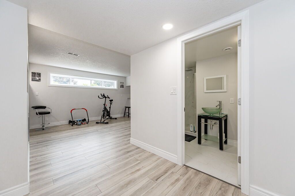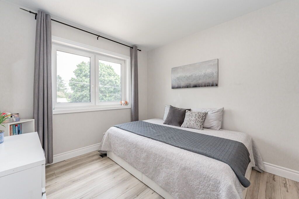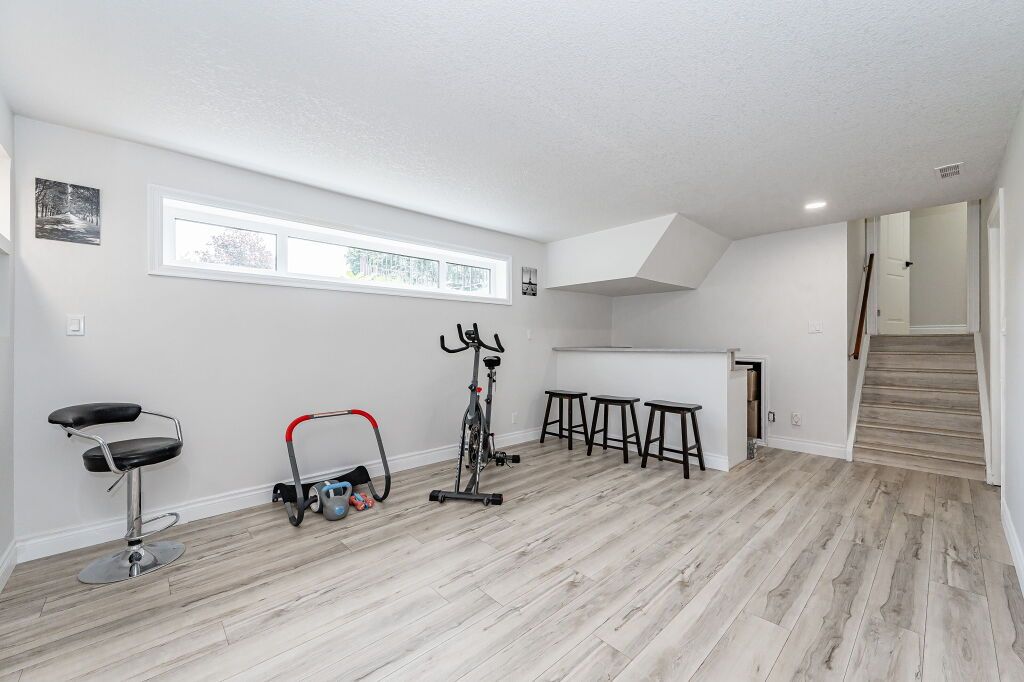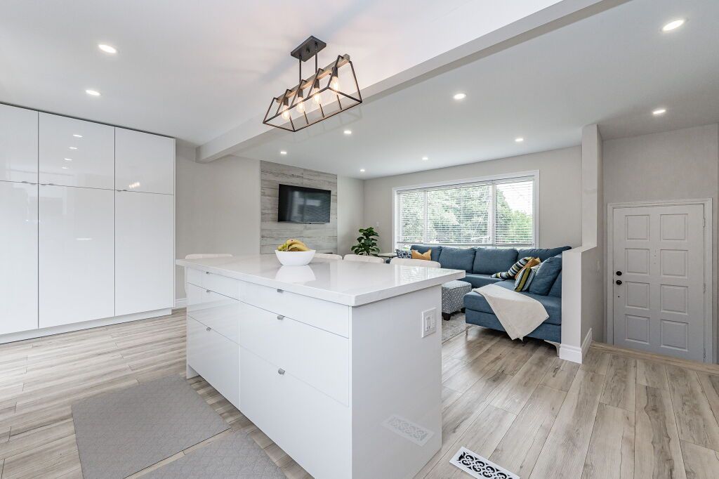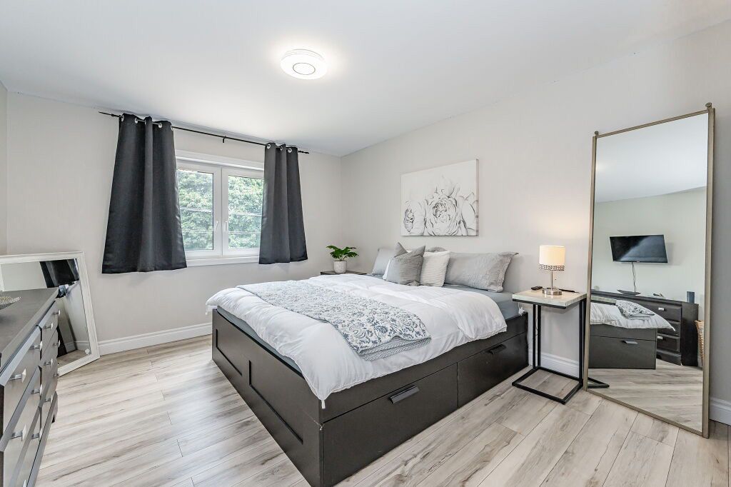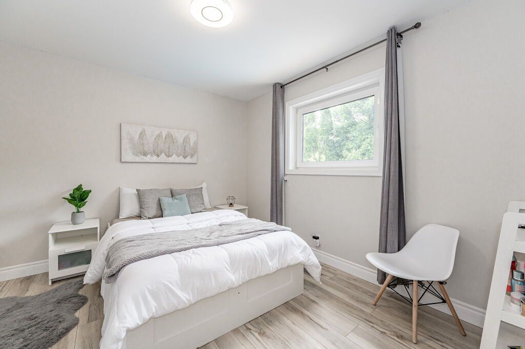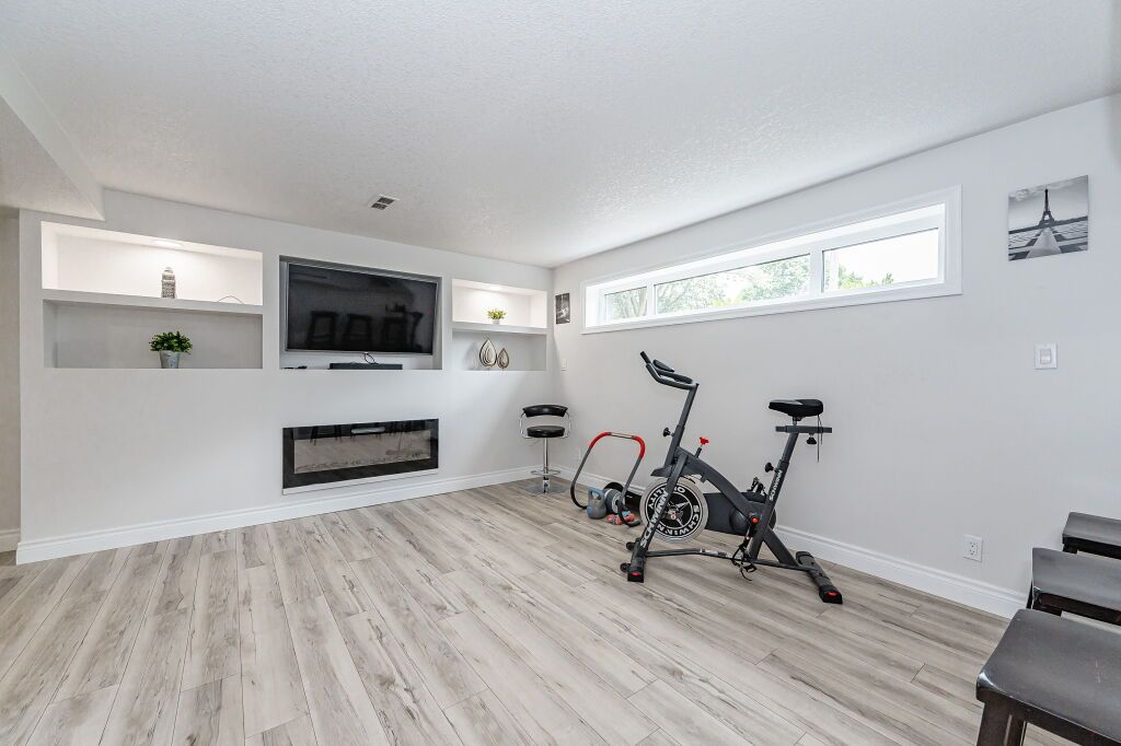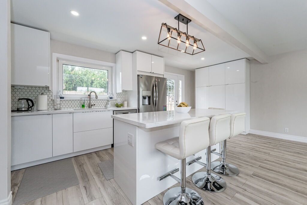 Exquisite home has undergone complete top-to-bottom renovation boasting gorgeous backyard W/inground pool! As you arrive double-wide stamped concrete driveway catches your eye accompanied by captivating gardens & front porch. Eat-in kitchen W/fresh white cabinetry, quartz counters, high-end S/S appliances, tiled backsplash & generous bank of pantry cupboards. Centre island features elegant light fixture & overhang for dining & entertaining. The kitchen seamlessly flows into expansive living room W/high-end vinyl floors, abundance of natural light streaming through oversized window & stylish feature wall W/modern fireplace. Completing this level is 2pc bath & laundry room. Upstairs you'll discover 3 generously sized bdrms W/large windows & ample closet space. 4pc main bath W/sizable vanity & shower/tub combo. Finished bsmt W/rec room featuring vinyl floors, multiple windows, 3pc bath, feature wall W/custom B/I shelves & fireplace. The bar provides the perfect setup for entertaining.Backyard oasis complete W/stone patio for BBQing as well as upper deck for basking in the sun. 32 X 16 ft heated inground pool surrounded by concrete patio. Large shed for storage needs. Close to parks, schools & all amenities!