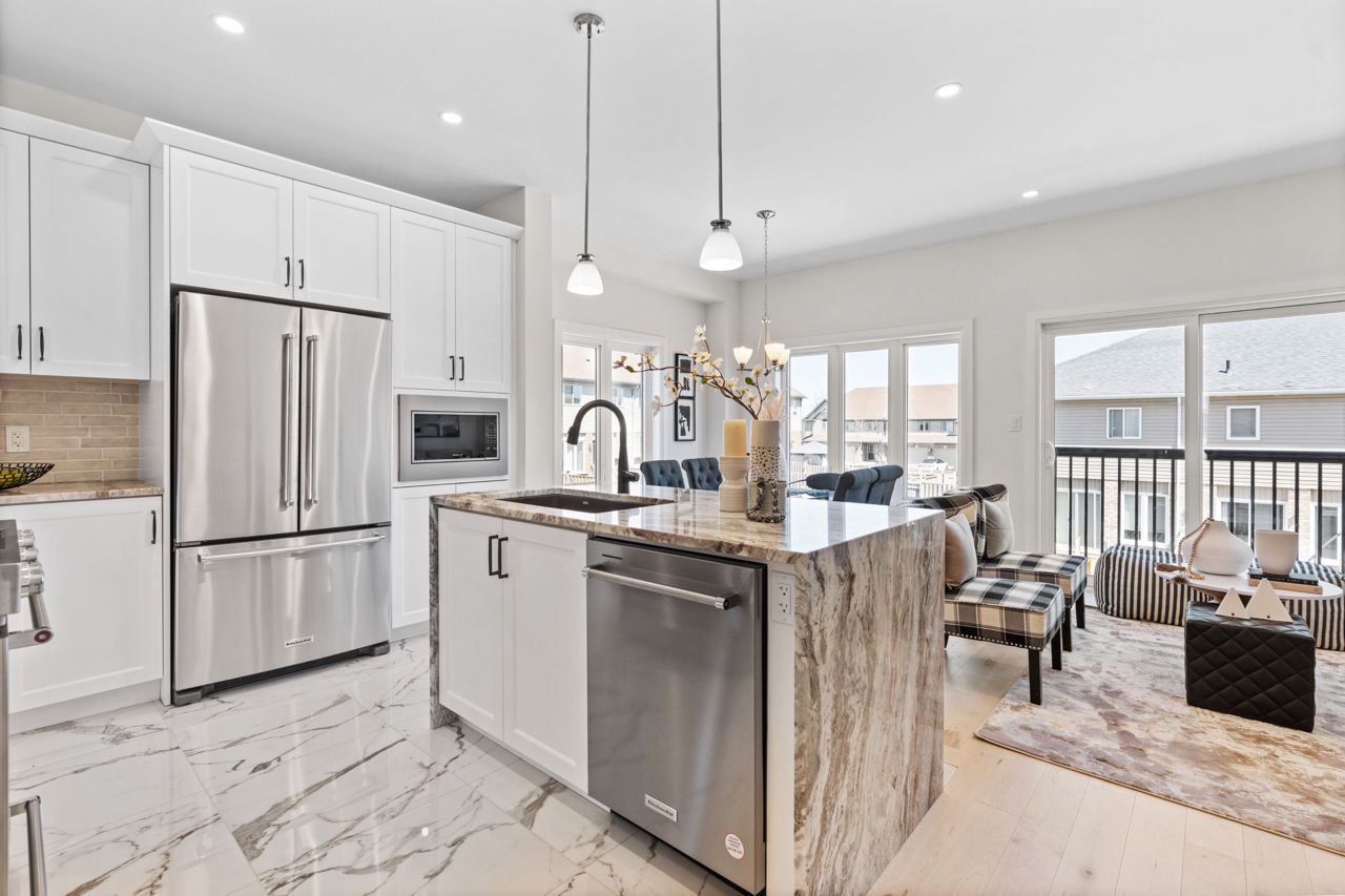 Small boutique style 31unit Townhouse complex is complete. All units are built and in drywall stage, 19 units remaining. Builder is offering a $10,000 credit for upgrades & 5 year condo fees included! The builder will install fencing around each individual backyard. Buyers can choose finishes, occupancy 90 days. Option to finish walkout basement. North Ridge Upscale Towns, where exceptional comes as a standard. Unmatched superior quality and building workmanship. Finishes include hardwood floors and stairs, crown moulding, free standing soaker tub, granite counter tops with undermount sinks. Interior unit with walkout basement, separate entrance available, 9' ceilings and oversized windows, creating the feel of a main level living space. The french provincial inspired exteriors are beautifully finished with upgraded stone, decorative columns with modern glass railings and accented by arches and keystones. RealPro has presented a brilliant grouping of finishes, paired with stunning sight lines and spacious layouts that make these homes ultra luxurious.Backing onto a beautiful buffer of green space. These gorgeous properties sit at the edge of Guelph, just moments to Guelph Lake and Guelph Lake Sports Fields. Less than 10 minutes to Guelph University.
