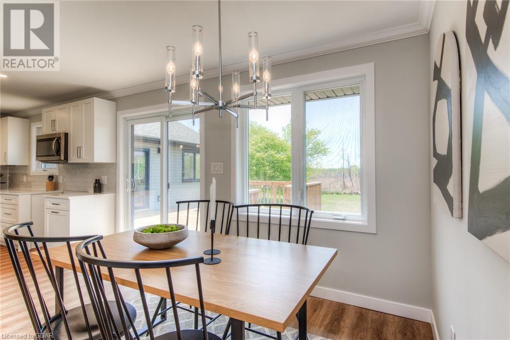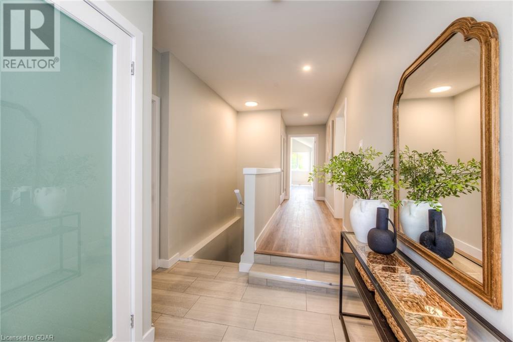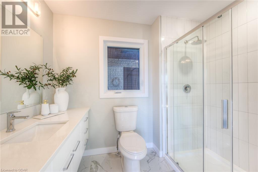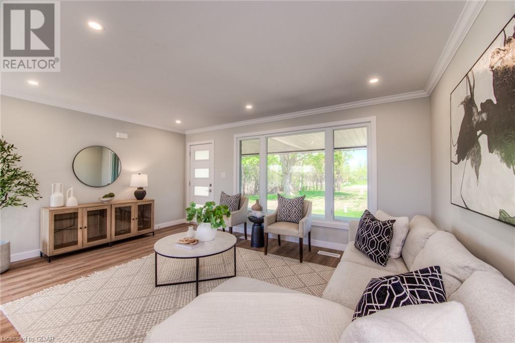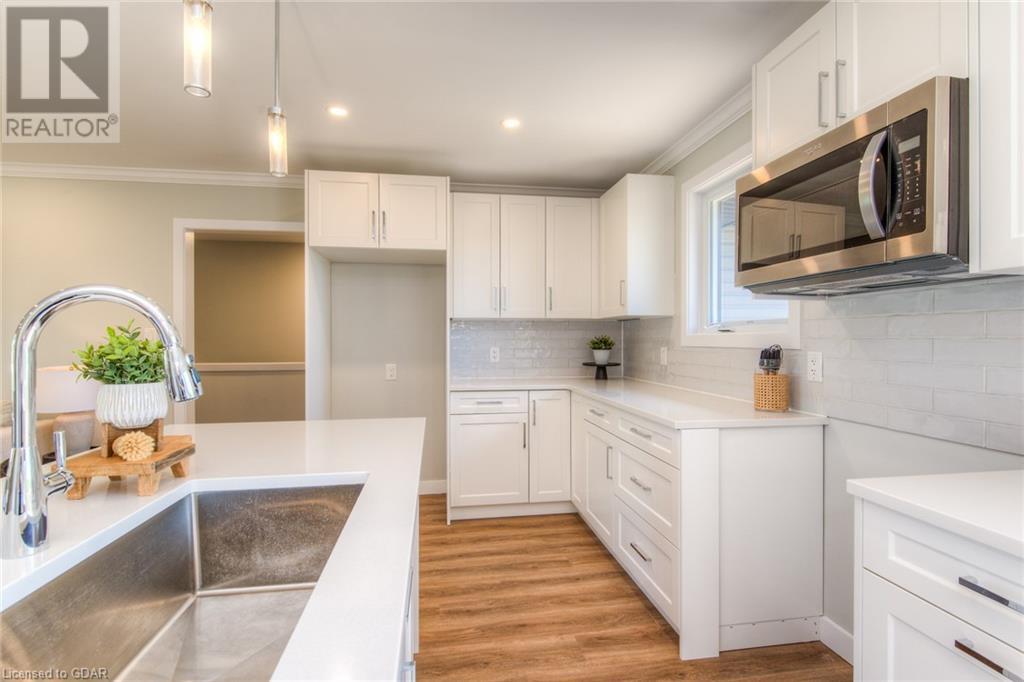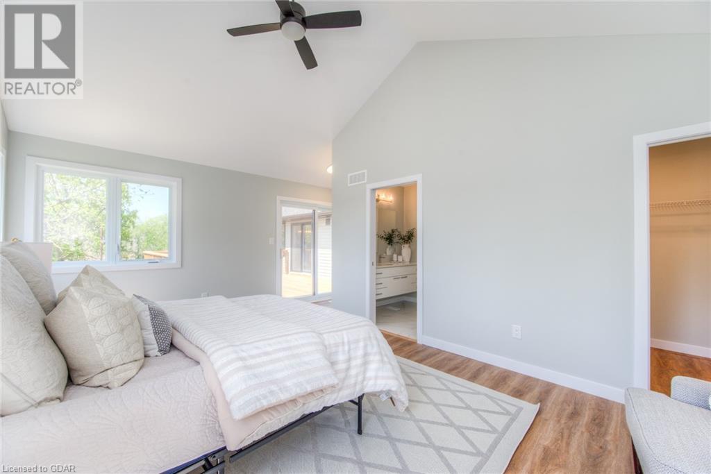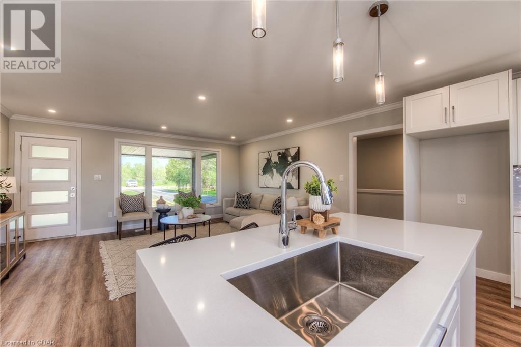 This fully renovated and updated modern 3-bedroom bungalow sits on a quiet dead end street in a desirable pocket of Guelph. Located o a beautiful 80x250 ft lot & surrounded by conservation land, this quintessential family home is move-in ready with some amazing updates. A long driveway offers ample parking. A covered porch off the front and deck out back allows you to be able to enjoy the beautiful yard space. Hard surface flooring throughout & updated EnergyStar windows offer tons of natural light, creating an open living space that connects the indoors beautifully to the outdoors. Open concept main living space will truly be the heart of this home, overlooking the living room, dining room & kitchen. The living room is complete with a panoramic window while the updated kitchen boasts tiled backsplash, brand new cabinetry & quartz countertops. Adjacent to the dining room are two bedrooms and a bathroom, updated with a ceramic tiled tub & shower combo and quartz countertops. Down the main hall you will pass main-floor laundry as you enter into the primary suite - boasting vaulted ceilings, rear deck access, and complete with walk-in closet & a 3-piece ensuite. The basement offers ample storage & workshop space. Furnace/AC (2023), roof (2022), windows (2022), reinsulated throughout (2022). Located conveniently too all major amenities and an easy drive to the 401. There is so much to experience & enjoy in this home's location - it truly has it all! (id:22211)