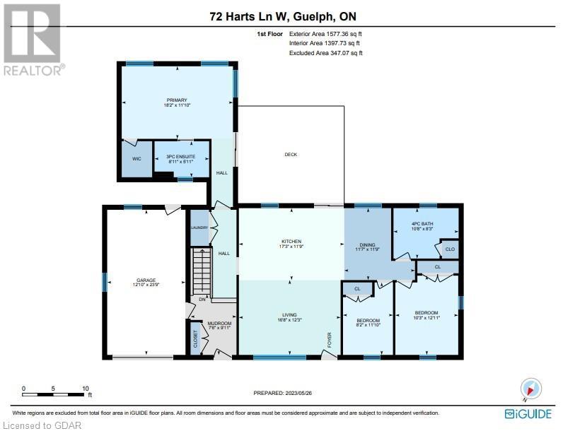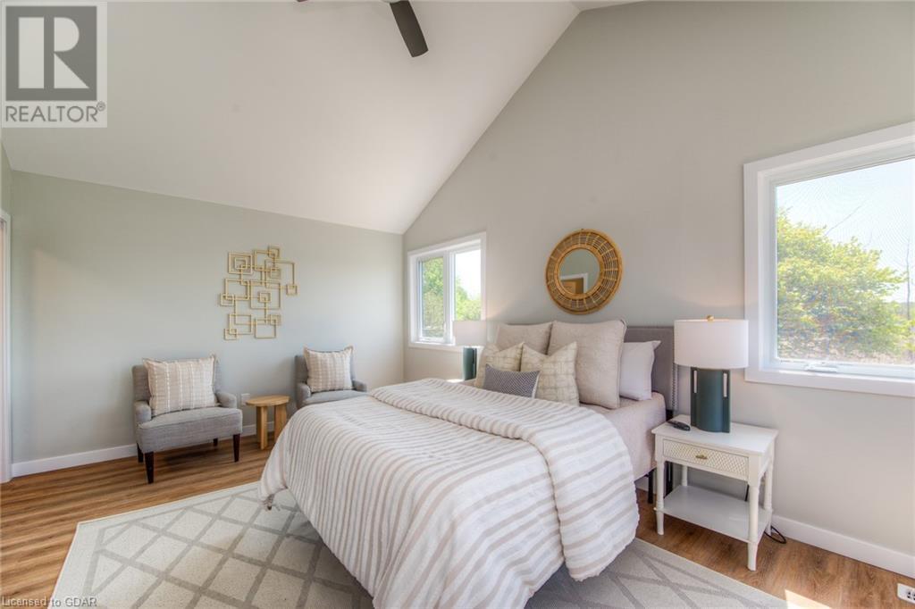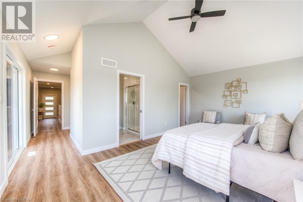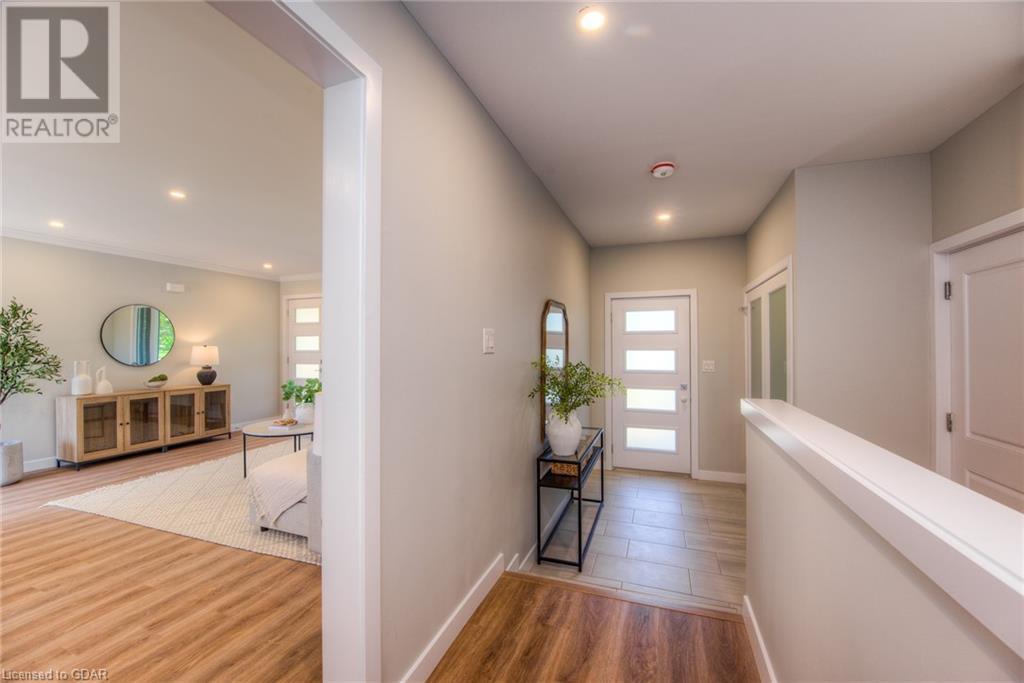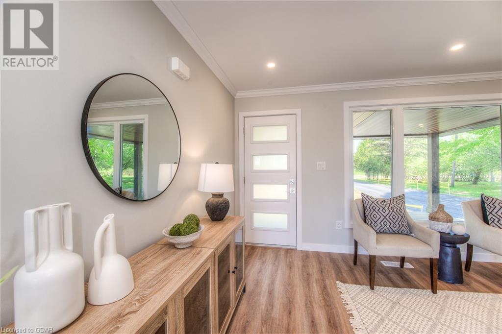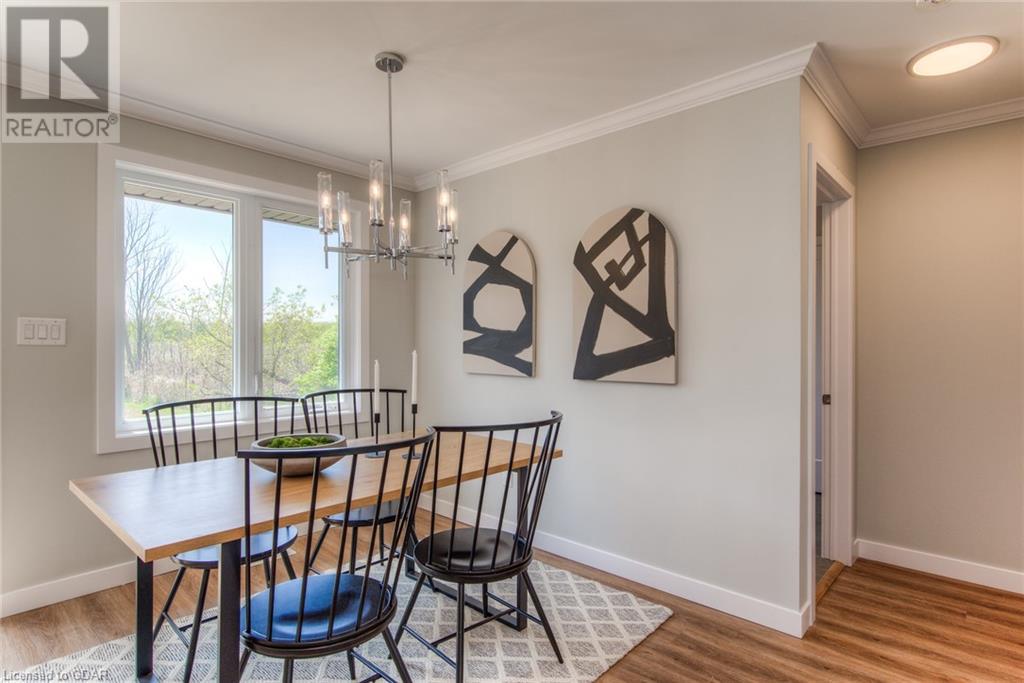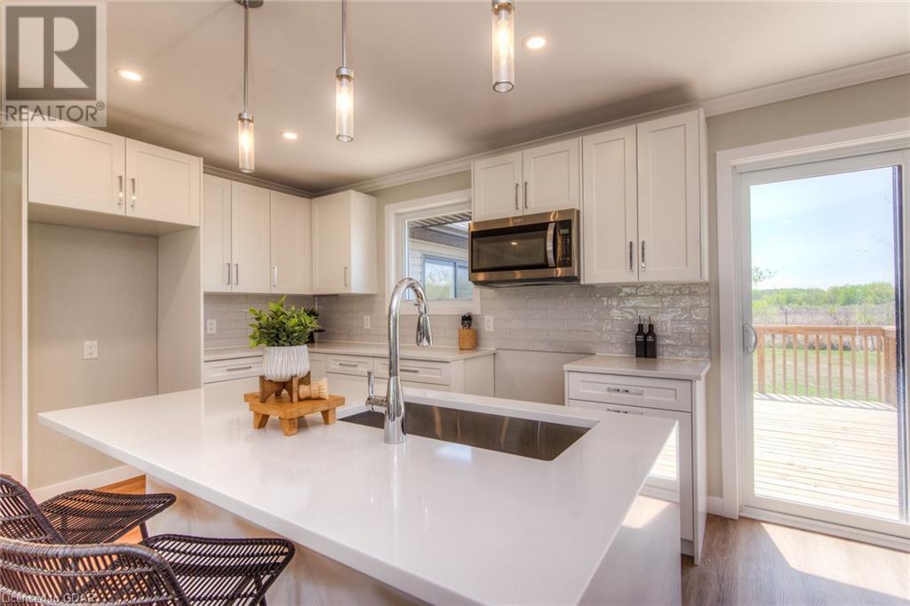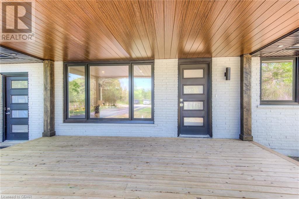 This fully renovated and updated modern 3-bedroom bungalow sits on a quiet dead end street in a desirable pocket of Guelph. Located o a beautiful 80x250 ft lot & surrounded by conservation land, this quintessential family home is move-in ready with some amazing updates. A long driveway offers ample parking. A covered porch off the front and deck out back allows you to be able to enjoy the beautiful yard space. Hard surface flooring throughout & updated EnergyStar windows offer tons of natural light, creating an open living space that connects the indoors beautifully to the outdoors. Open concept main living space will truly be the heart of this home, overlooking the living room, dining room & kitchen. The living room is complete with a panoramic window while the updated kitchen boasts tiled backsplash, brand new cabinetry & quartz countertops. Adjacent to the dining room are two bedrooms and a bathroom, updated with a ceramic tiled tub & shower combo and quartz countertops. Down the main hall you will pass main-floor laundry as you enter into the primary suite - boasting vaulted ceilings, rear deck access, and complete with walk-in closet & a 3-piece ensuite. The basement offers ample storage & workshop space. Furnace/AC (2023), roof (2022), windows (2022), reinsulated throughout (2022). Located conveniently too all major amenities and an easy drive to the 401. There is so much to experience & enjoy in this home's location - it truly has it all! (id:22211)
