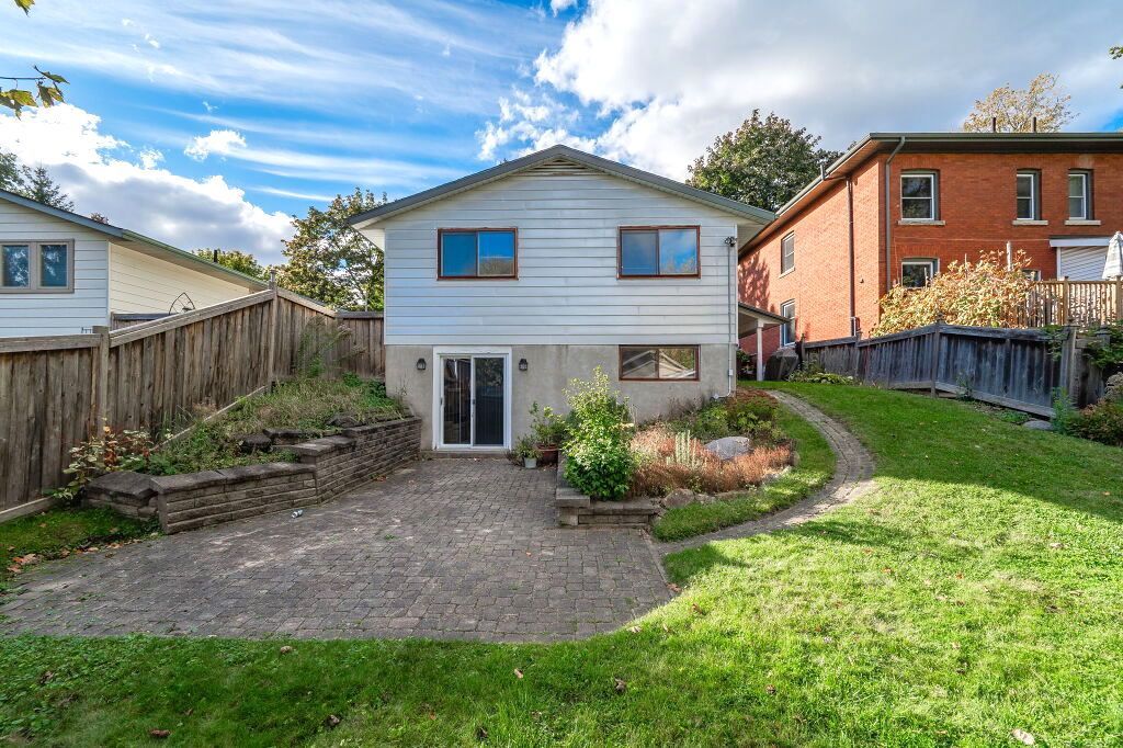 proximity to GO Station makes commuting a breeze. Upon entering you’ll notice the spacious eat-in kitchen offering plenty of cupboard/counter space as well as a cut-out overlooking the living room allowing you to keep an eye on children playing while cooking. Spacious living room features large windows allowing natural light to shine into the room. There are 3 generously sized bedrooms with large windows & 4pc main bath with shower/tub combo. Additional living space in finished basement offering large rec room & 3pc bath. There is an attached carport!Relax on your large back patio overlooking your beautiful, fully fenced backyard offering lush gardens and mature trees. Enjoy all the peace & tranquility of your serene backyard while being minutes from vibrant downtown Guelph!