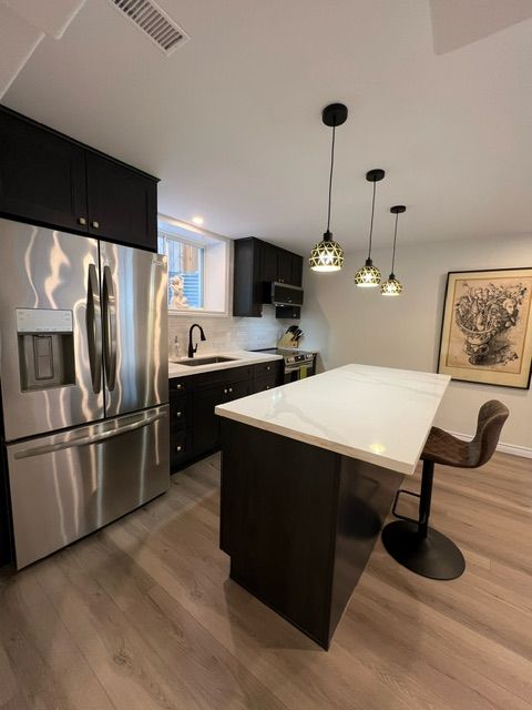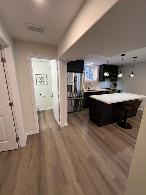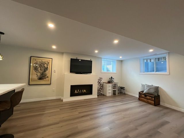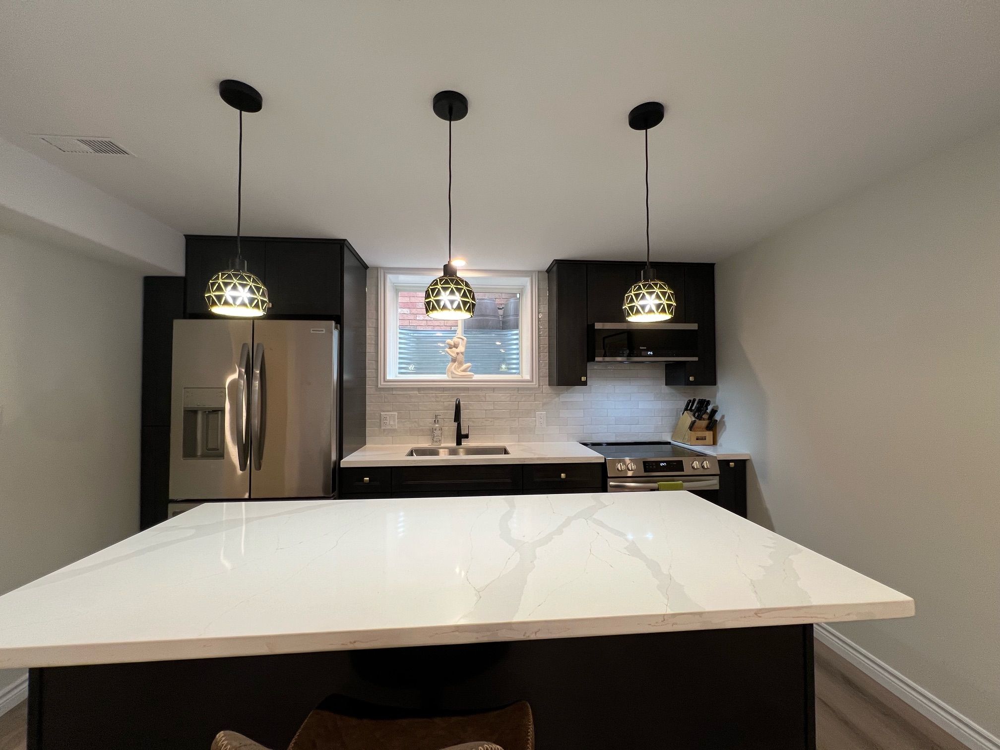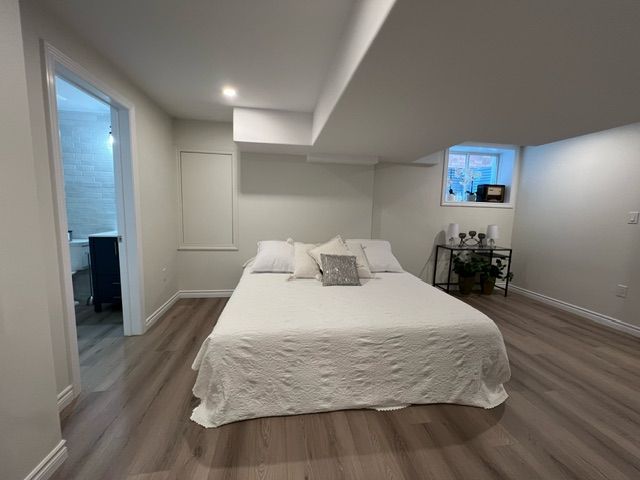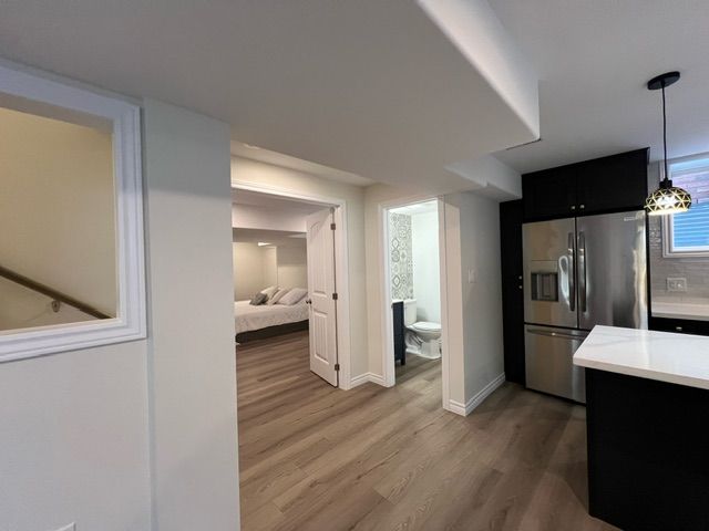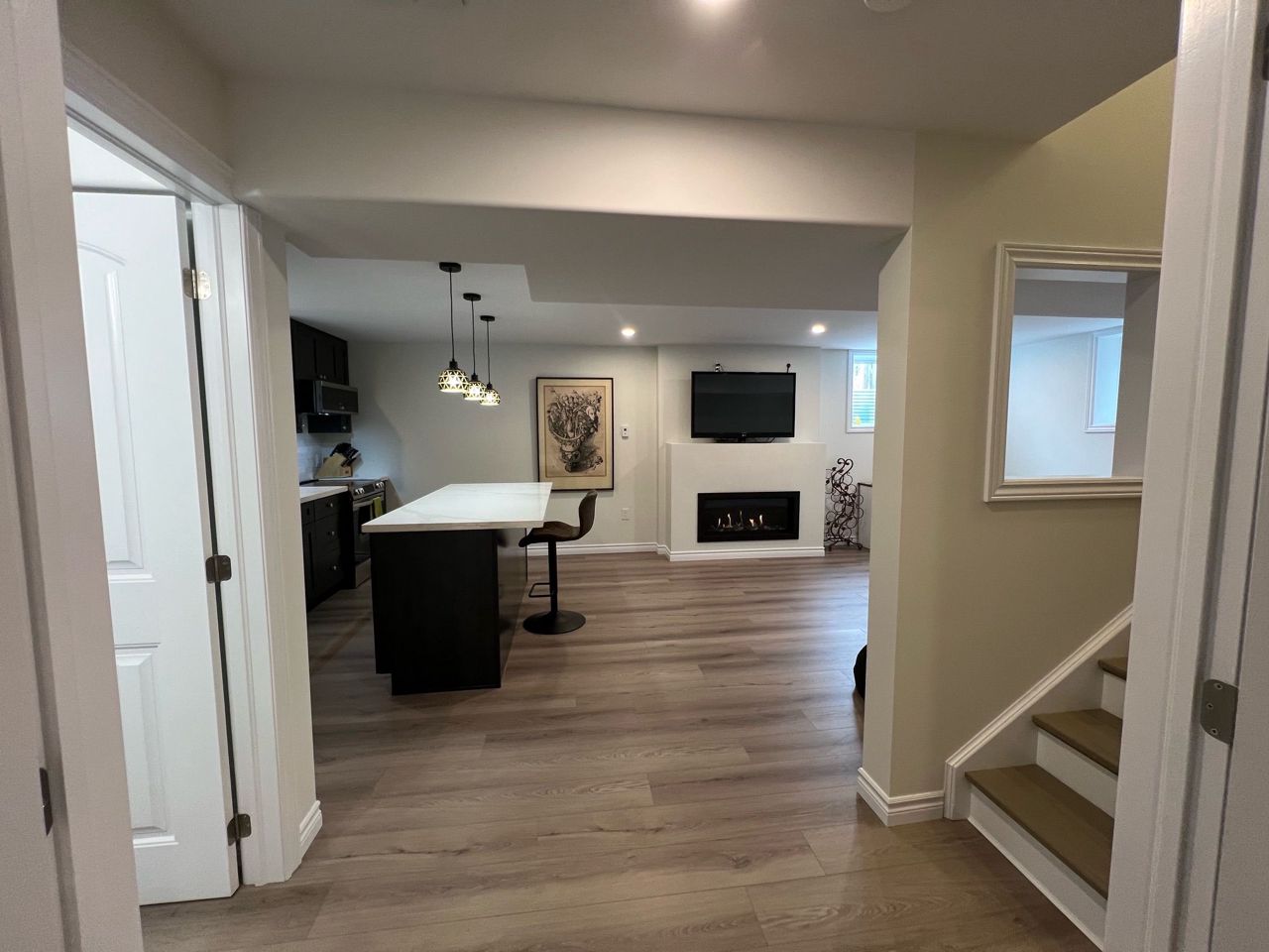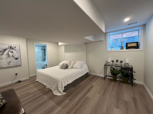 ALL INCLUSIVE RENT! New large Luxury one bedroom, two bath (approx 1000 SF) apartment in Guelph’s sought after South end. One oversized bedroom with a huge walk-in closet and Spa style ensuite featuring a 6’ Jacuzzi tub with both water and air jets along with a waterfall style shower system. The great room centres around a 46” Gas Fireplace. Both HDMI wires and electrical have been built in above the fireplace with space to mount a 70” TV. The Kitchen has Quartz counters, a Kitchen island with a built-in dishwasher, Water and Ice in the fridge and a built-in microwave. Laundry room and storage finish off the space. One parking space in the driveway with a private entrance at the side of the home. Close to shopping, restaurants, Gym's, the University Of Guelph, walking trails, parks, public transit, 40 min to the Toronto Airport and 12 min to the 401. Newly finished in December 2023 you can be the first to live in this space!The Apartment can be rented as a fully furnished short term rental at $1000 a week or ($3k a month). Rent is all inclusive (internet negotiable).