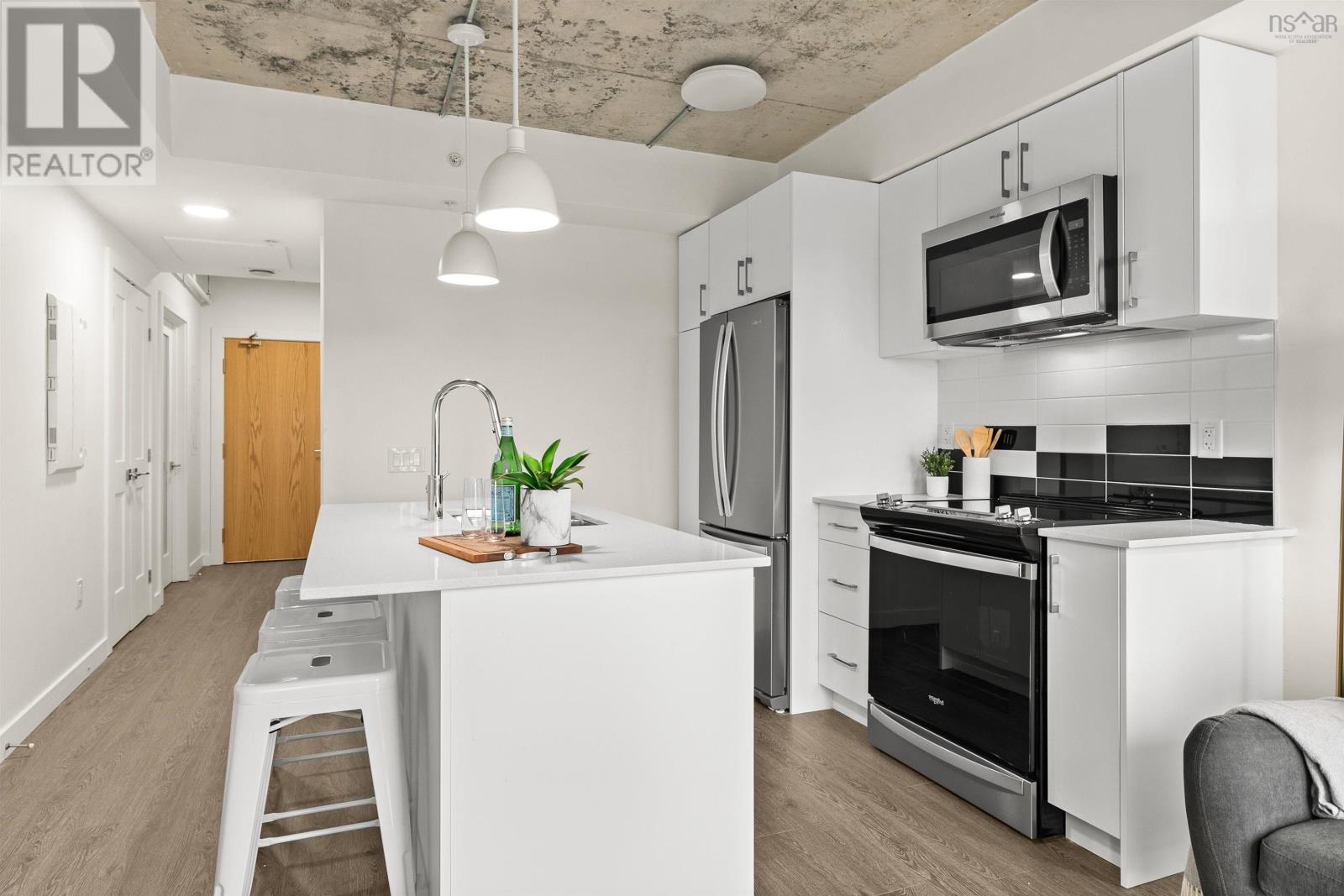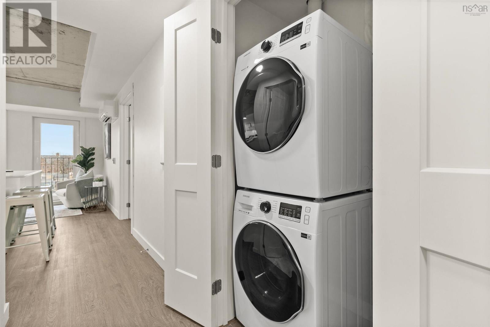 Welcome to Agricola West, Unit 301. Outstanding opportunity to purchase a 2 bed, 2 bath sleek, urban condo in a dynamic and eclectic neighbourhood in Halifax. Unit features include stainless appliances, in-suite laundry, quartz countertop, AC, Juliet balconies, luxury vinyl plank and ceramic flooring, electric baseboard heat, mini split for heating and AC. Condo fee includes water, hot water, contributions to Reserve and Contingency funds, building insurance, common area maintenance. This boutique concrete and steel condominium offering is 60% sold, with immediate closings available. Building amenities include rooftop lounge and terrace, conference room, main floor lounges. Deeded underground parking available at $25,000 (HST included). Monthly condo fee for parking stall is $32.06, includes heated underground garage and garage cleaning. Six-year new LUX home warranty. Photos are of 01 unit, not necessarily actual unit. (id:22211)