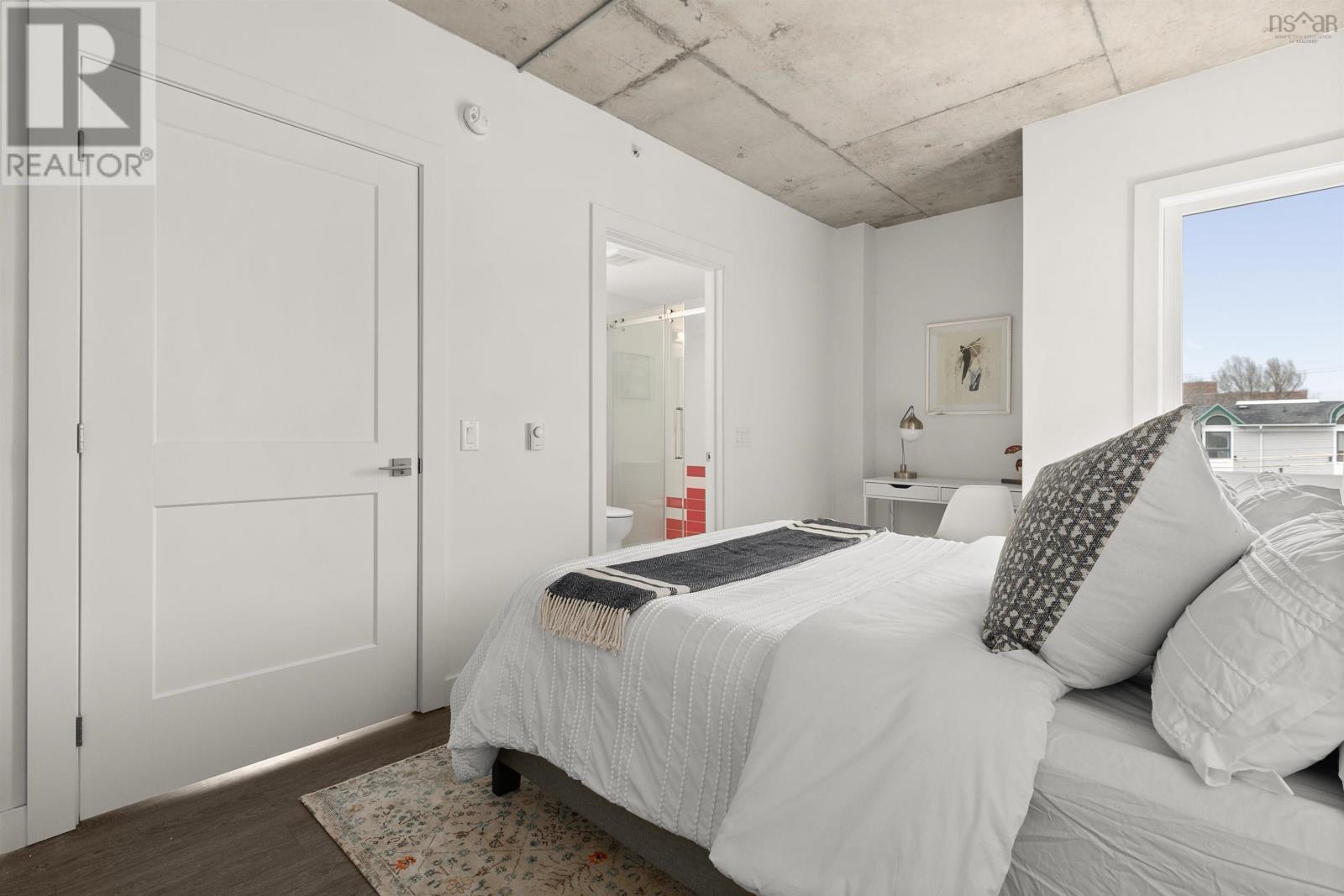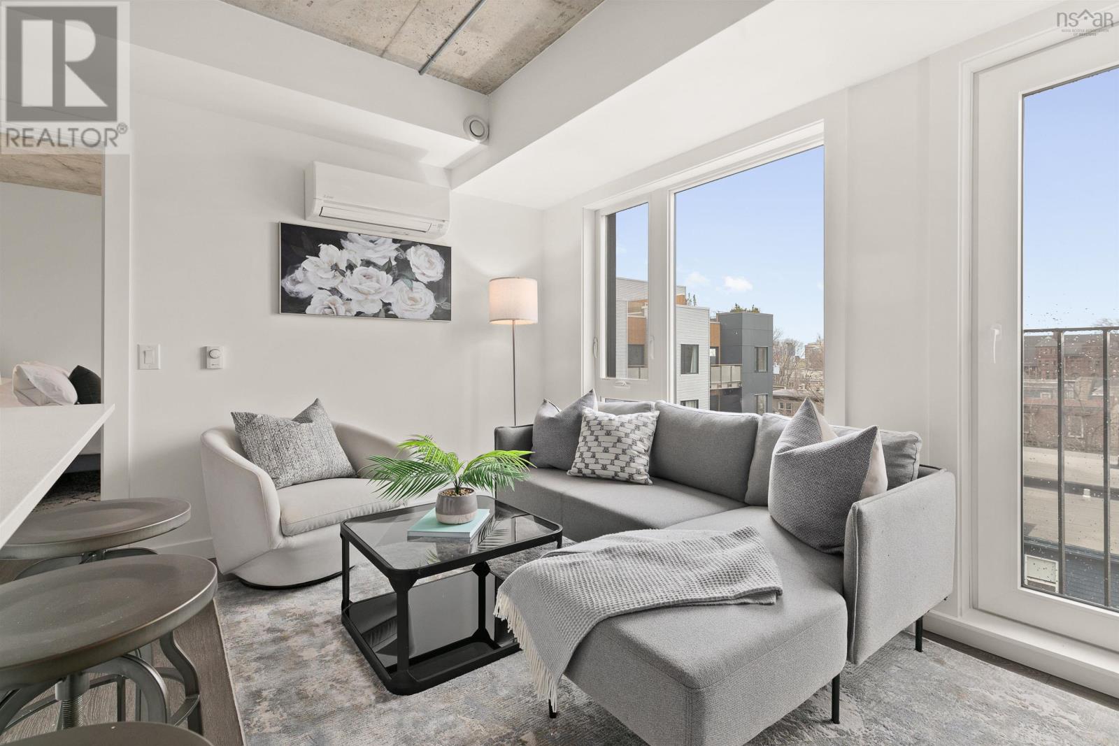 Welcome to Agricola West, Unit 402. Outstanding opportunity to purchase a 2 bed, 2 bath sleek, urban condo in a dynamic and eclectic neighbourhood in Halifax. Unit features include stainless appliances, in-suite laundry, quartz countertop, AC, Juliet balconies, luxury vinyl plank and ceramic flooring, electric baseboard heat, mini split for heating and AC. Condo fee includes water, hot water, contributions to Reserve and Contingency funds, building insurance, common area maintenance. This boutique concrete and steel condominium offering is 60% sold, with immediate closings available. Building amenities include rooftop lounge and terrace, conference room, main floor lounges. Deeded underground parking available fat $25,000 (HST included). Monthly condo fee for parking stall is $32.06, includes heated underground garage and garage cleaning. Six-year new LUX home warranty. (id:22211)