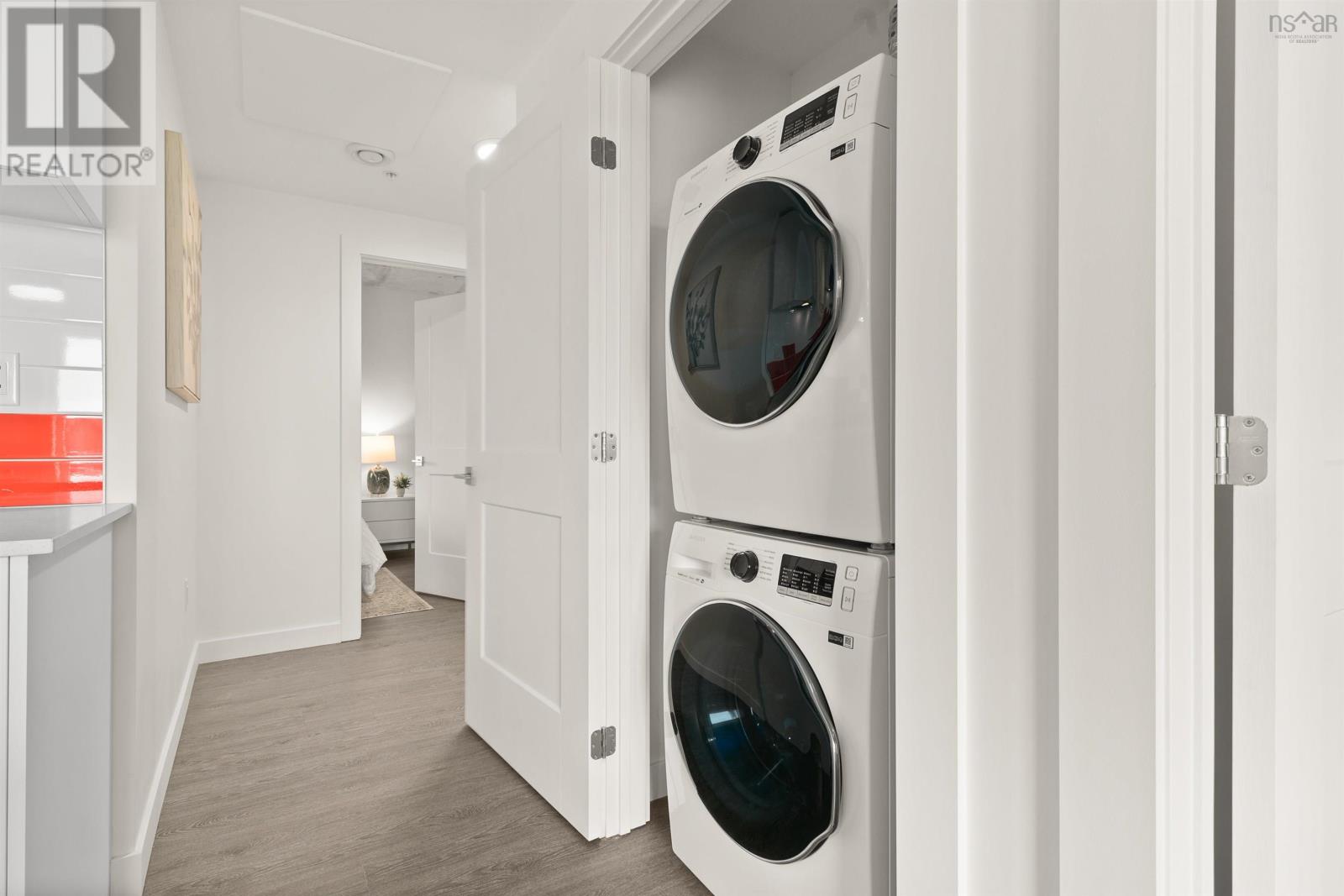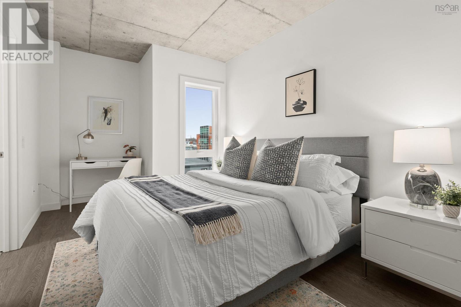 Welcome to Agricola West. Outstanding opportunity to purchase a sleek, urban condo in a dynamic and eclectic neighbourhood in Halifax. Unit features include stainless appliances, in-suite laundry, quartz countertop, AC, Juliet balconies, luxury vinyl plank and ceramic flooring, electric baseboard heat, mini split for heating and AC. Condo fee includes water, hot water, contributions to Reserve and Contingency funds, building insurance, common area maintenance. This boutique concrete and steel condominium offering is 60% sold, with immediate closings available. Building amenities include rooftop lounge and terrace, conference room, main floor lounges. Deeded underground parking available for certain units at $25,000 (HST included). Monthly condo fee for parking stall is $32.06, includes heated underground garage and garage cleaning. Six-year new LUX home warranty. Photos are of 02 unit, not necessarily actual unit. (id:22211)
