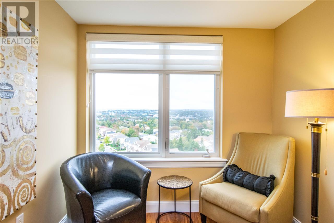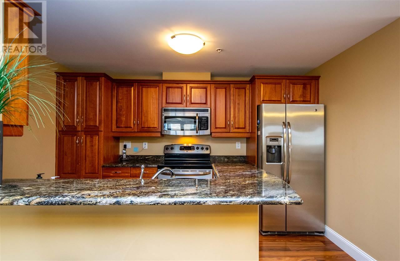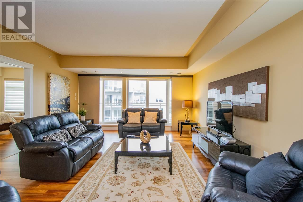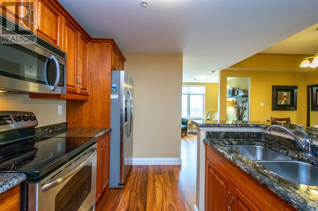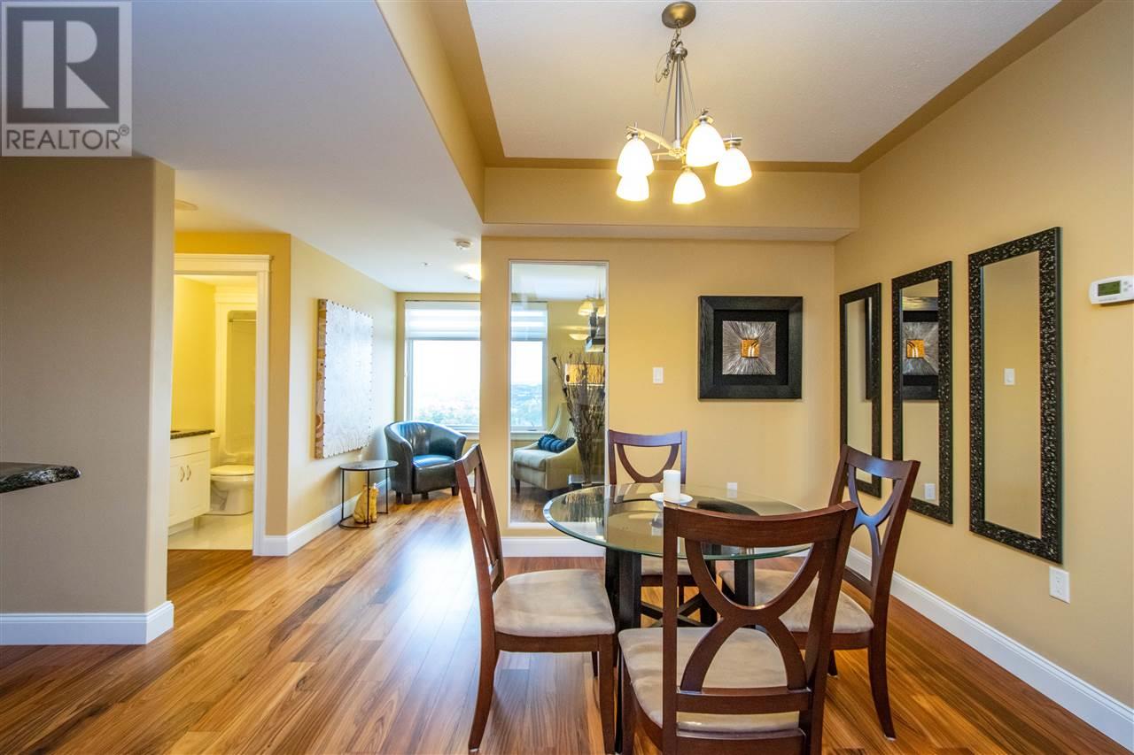 Unbelievable value in this 2-Bedroom+Den corner unit condo unit offering an abundance of natural sunlight and picturesque views from every angle. The upgrades, quality, and pride of ownership is evident; enjoy granite counters, custom blinds, stainless steel appliances and much more. With over 1200 SQ FT of living space, the open concept living area is great for entertaining and optimal use of the space and views. The Master Bedroom is luxurious and offers a double vanity, stand-up shower, and walk-in closet. Theres an efficient geo-thermal heating and air conditioning system. The location of this condominium building is unique in that it offers easy access to the Downtown core, major highways, and is adjacent to beautiful walking trails around Hail Pond and Long Lake Provincial Park. Theres underground parking, storage locker, a gym, live-in Superintendent and much more. This unit should not be over looked because it wont last long! (id:22211)