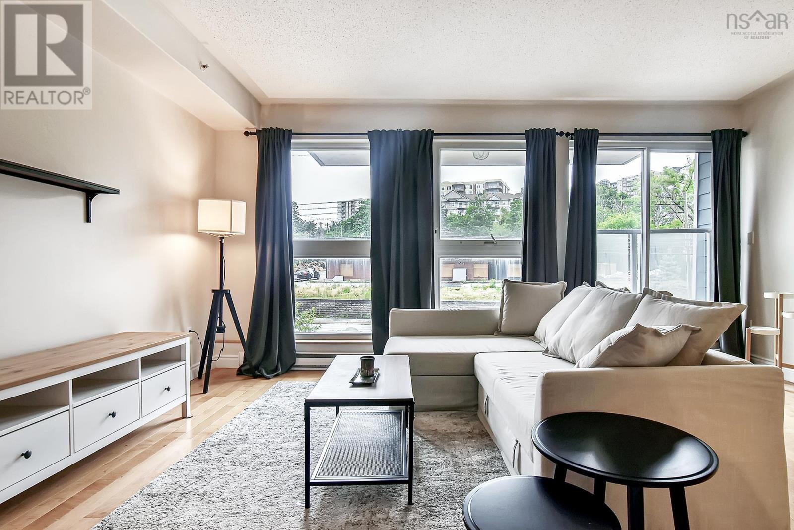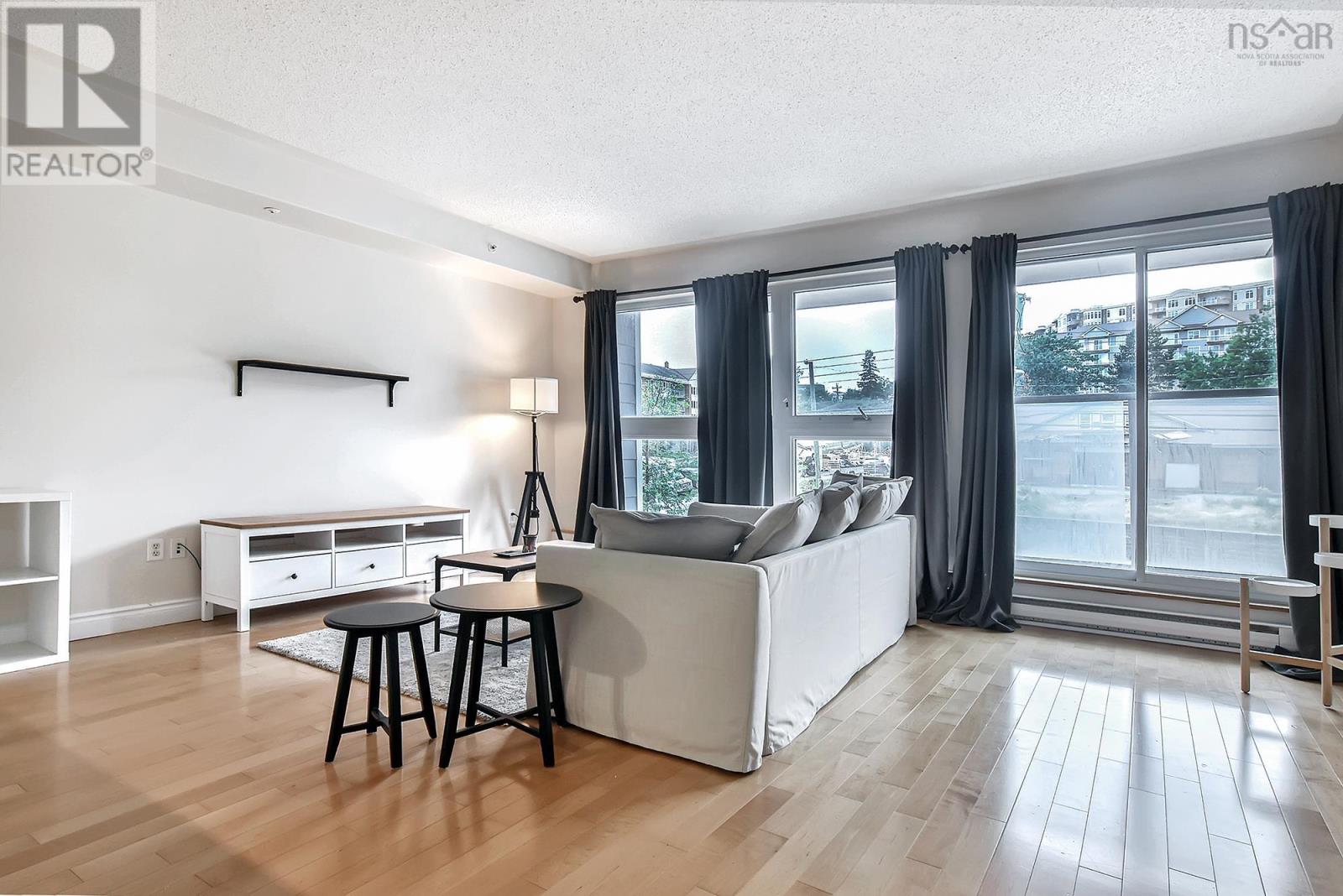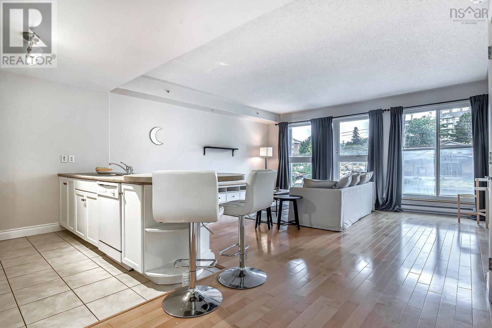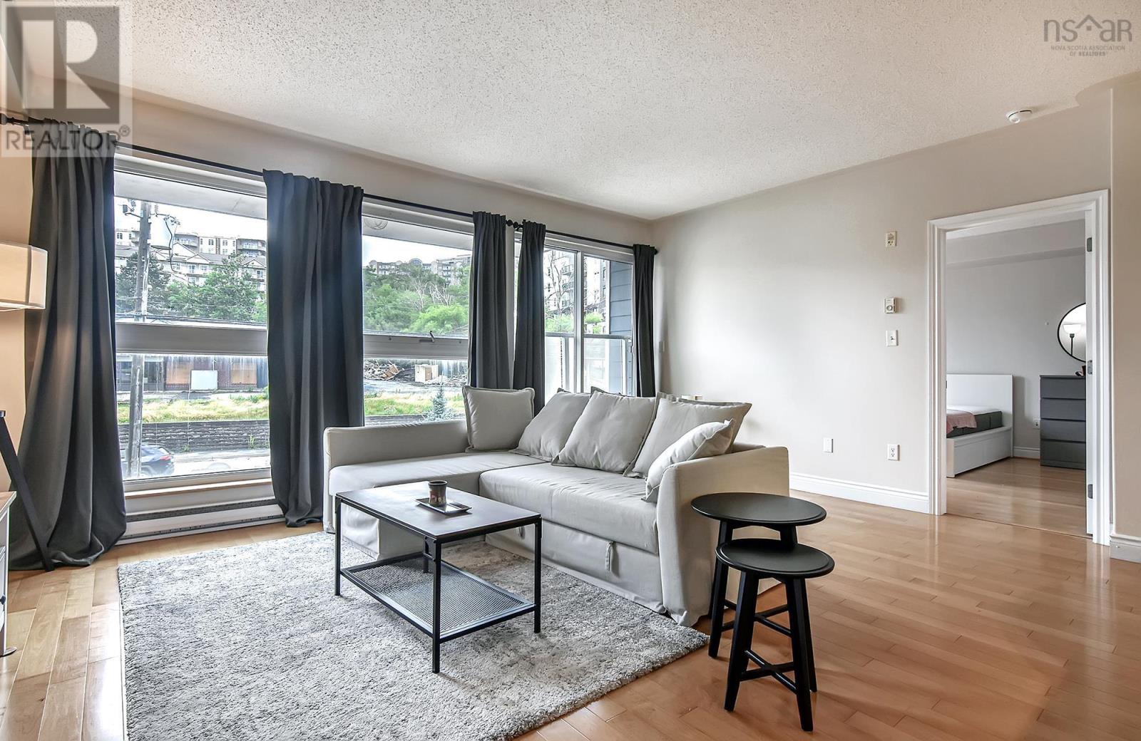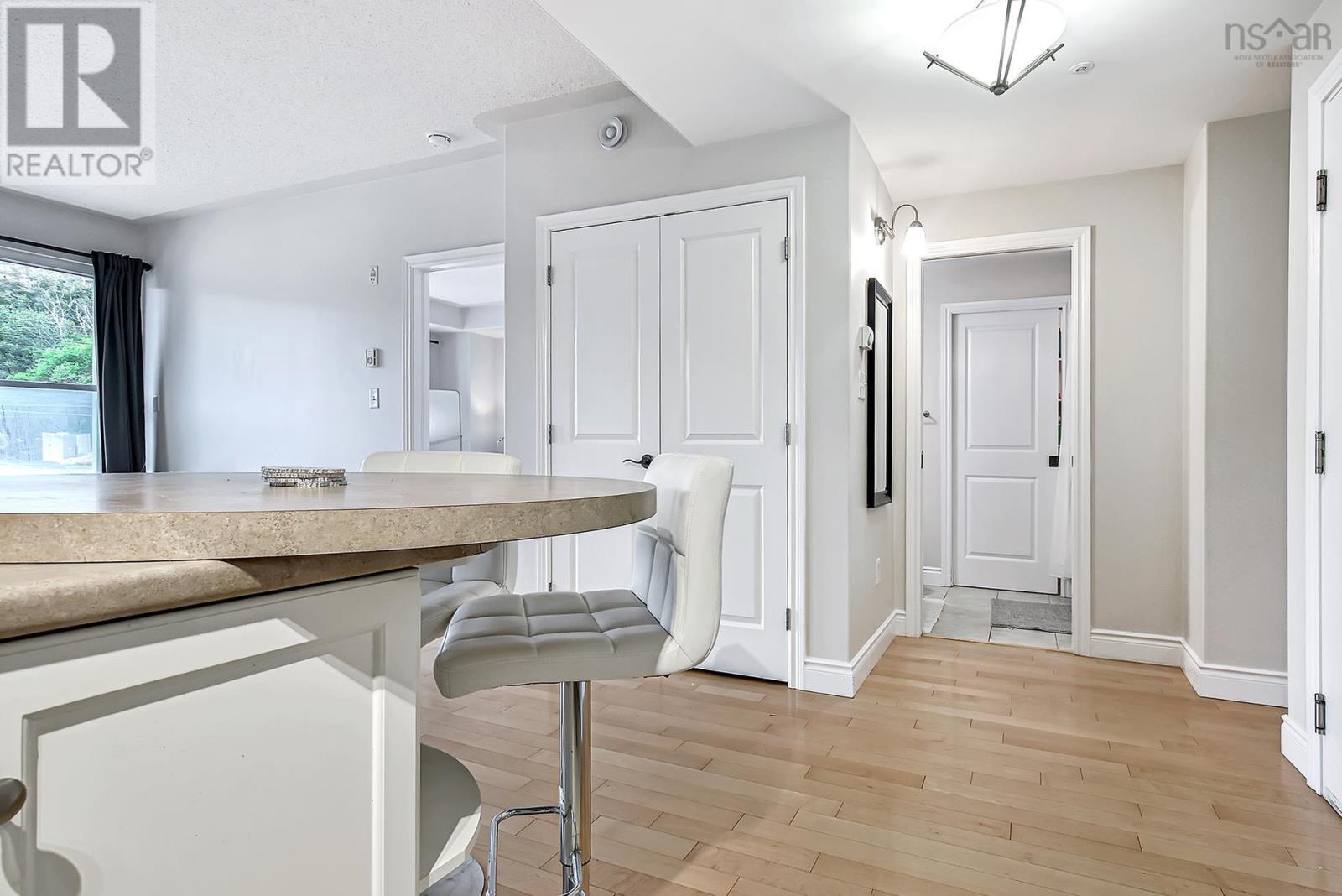 Situated along the Bedford Hwy, The Terrace offers a delightful opportunity to experience comfortable urban living. This furnished 1 bedroom, 1 bathroom condo, with in unit storage and laundry presents a perfect blend of convenience, style, and proximity to essential amenities, including the picturesque Bedford Basin at the back of the building. This unit has engineered hardwood floors and Tile in the bath area and kitchen. There is 1 assigned outdoor parking space marked for unit 205 right outside the main entrance (id:22211)