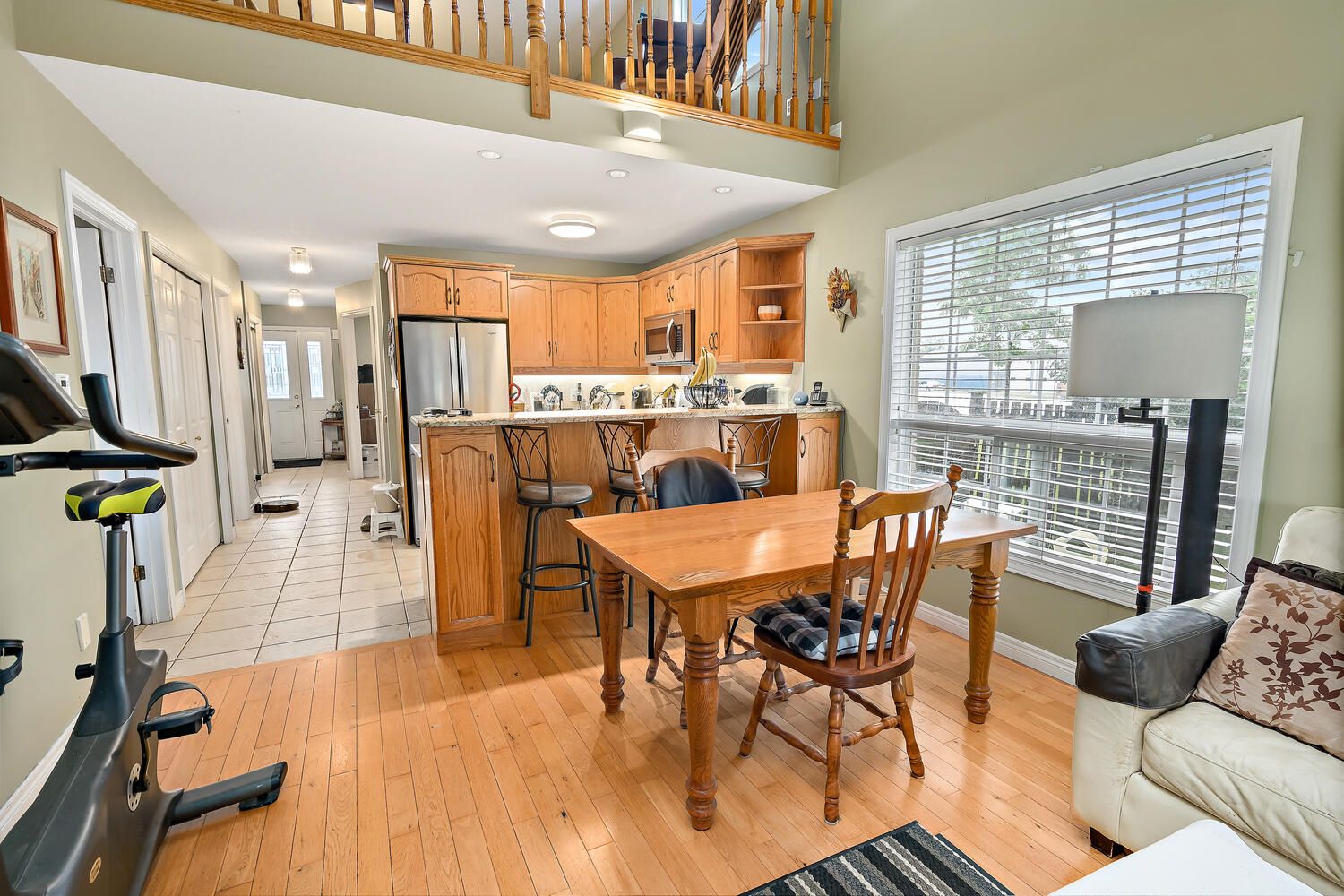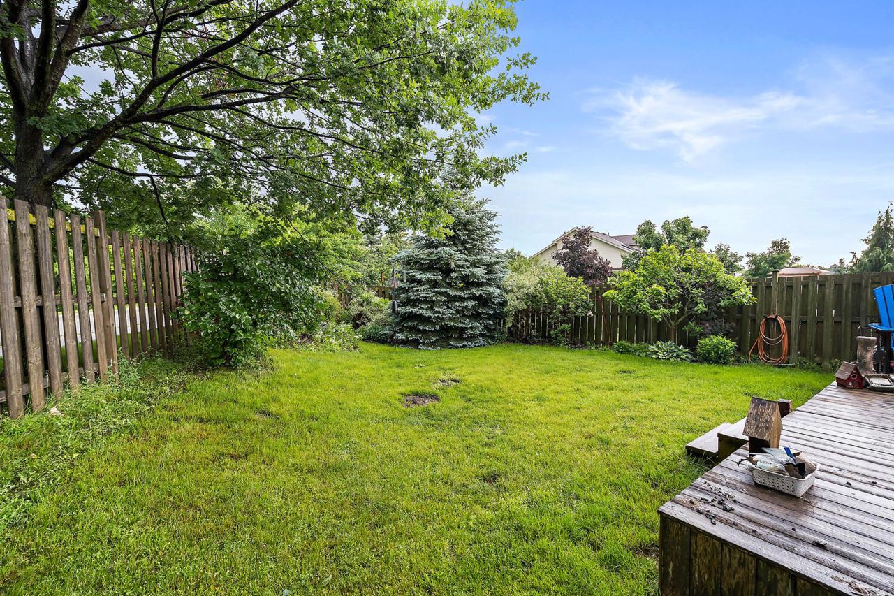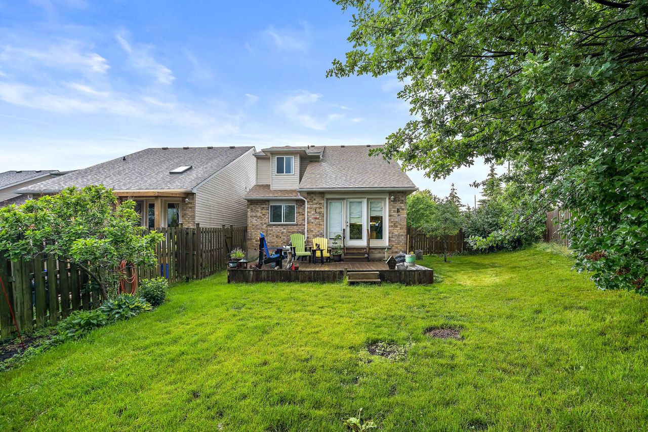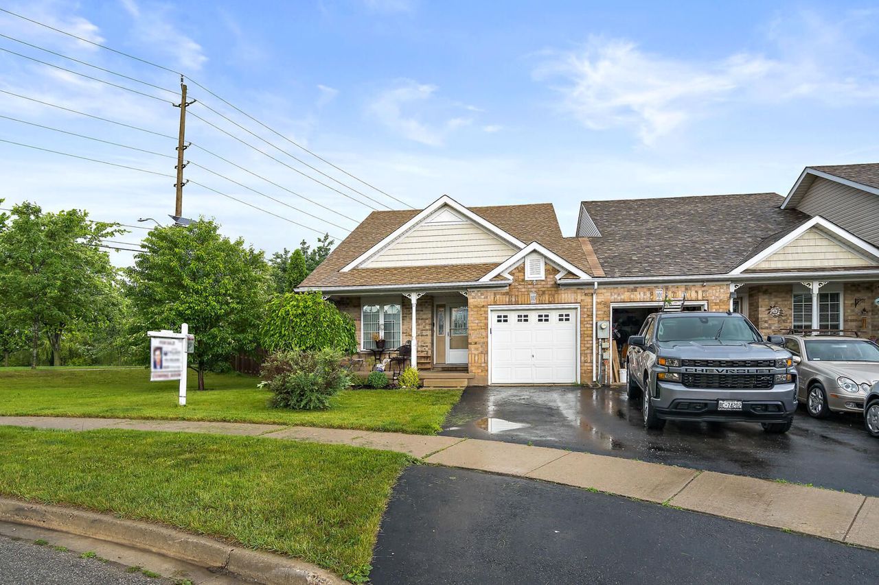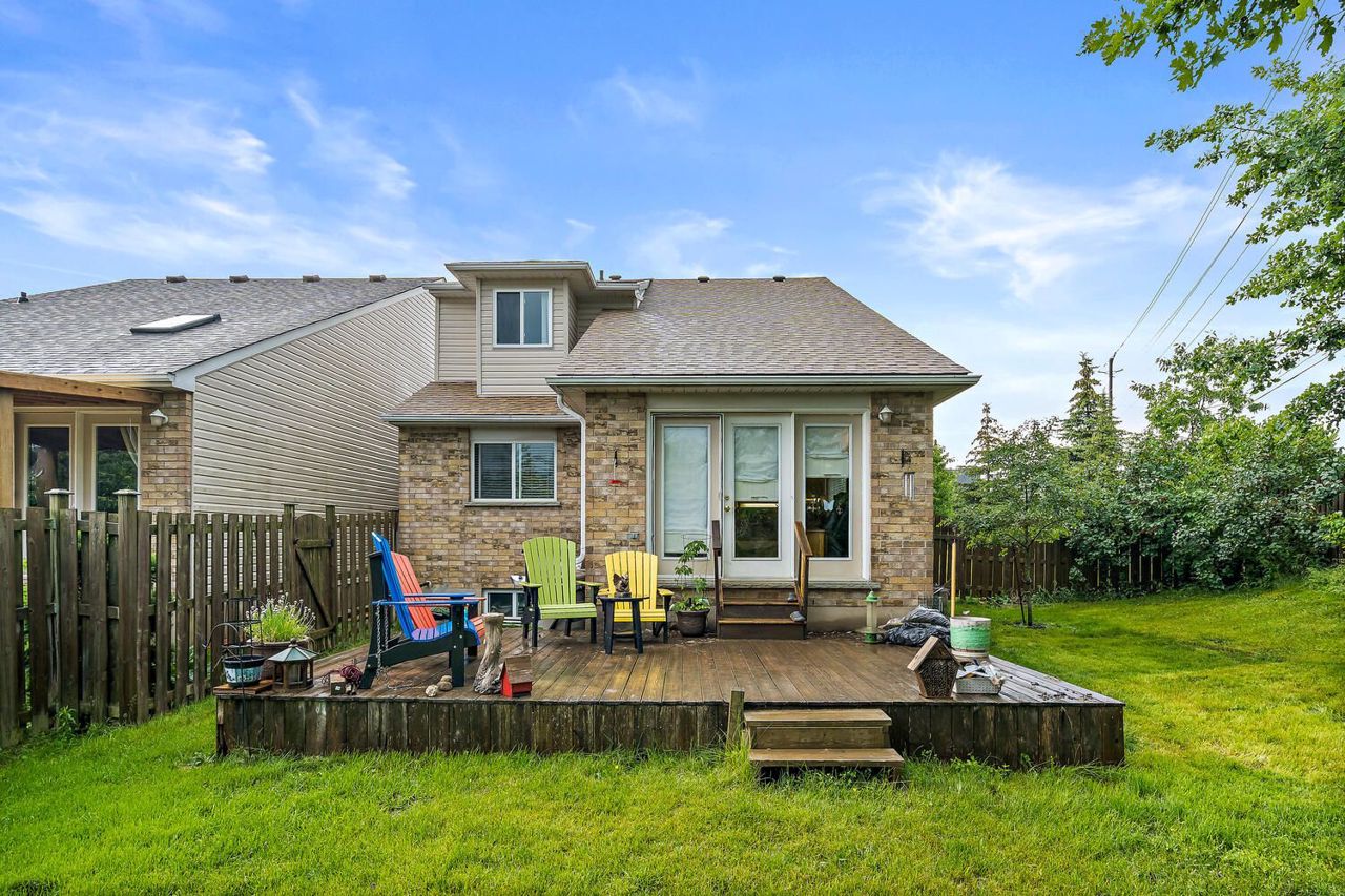 This stunning bungaloft townhouse offers spacious living with desirable features. Spanning 1439 sq ft, it has 3 beds and 3 baths, ensuring comfort. Located on a quiet cul-de-sac, privacy is guaranteed without condo fees. The open-concept main floor boasts a modern kitchen with a raised breakfast bar. Cathedral ceilings add grandeur, and optional laundry access in the pantry offers convenience. The primary bedroom has a walk-in closet and semi-ensuite. Upstairs, a loft area includes a full bath, third bedroom, and sitting area. Features include a cold cellar and garage access. The large reverse pie-shaped lot provides ample outdoor space for activities. Step onto the cedar deck to admire mature gardens. Backyard access is available through the garage. Enjoy luxurious living in this exceptional property.Access to shops, amenities, and GO-Service. Together, the end unit location, quiet cul-de-sac, unique reverse pie-shaped lot, and convenient location make this property a rare find that's sure to impress.