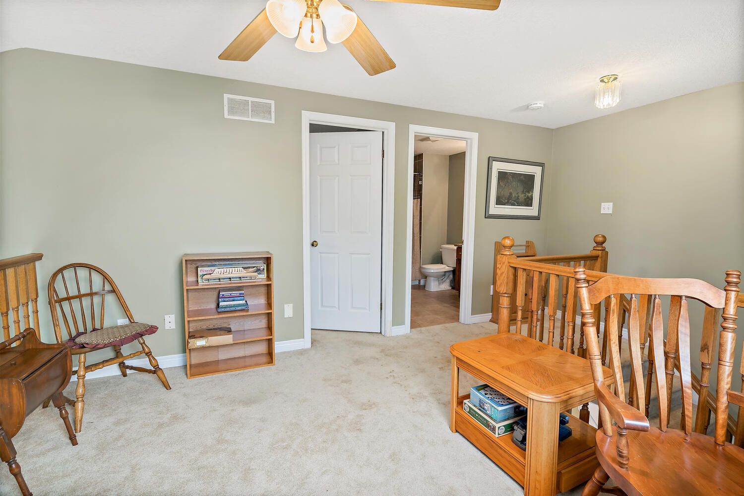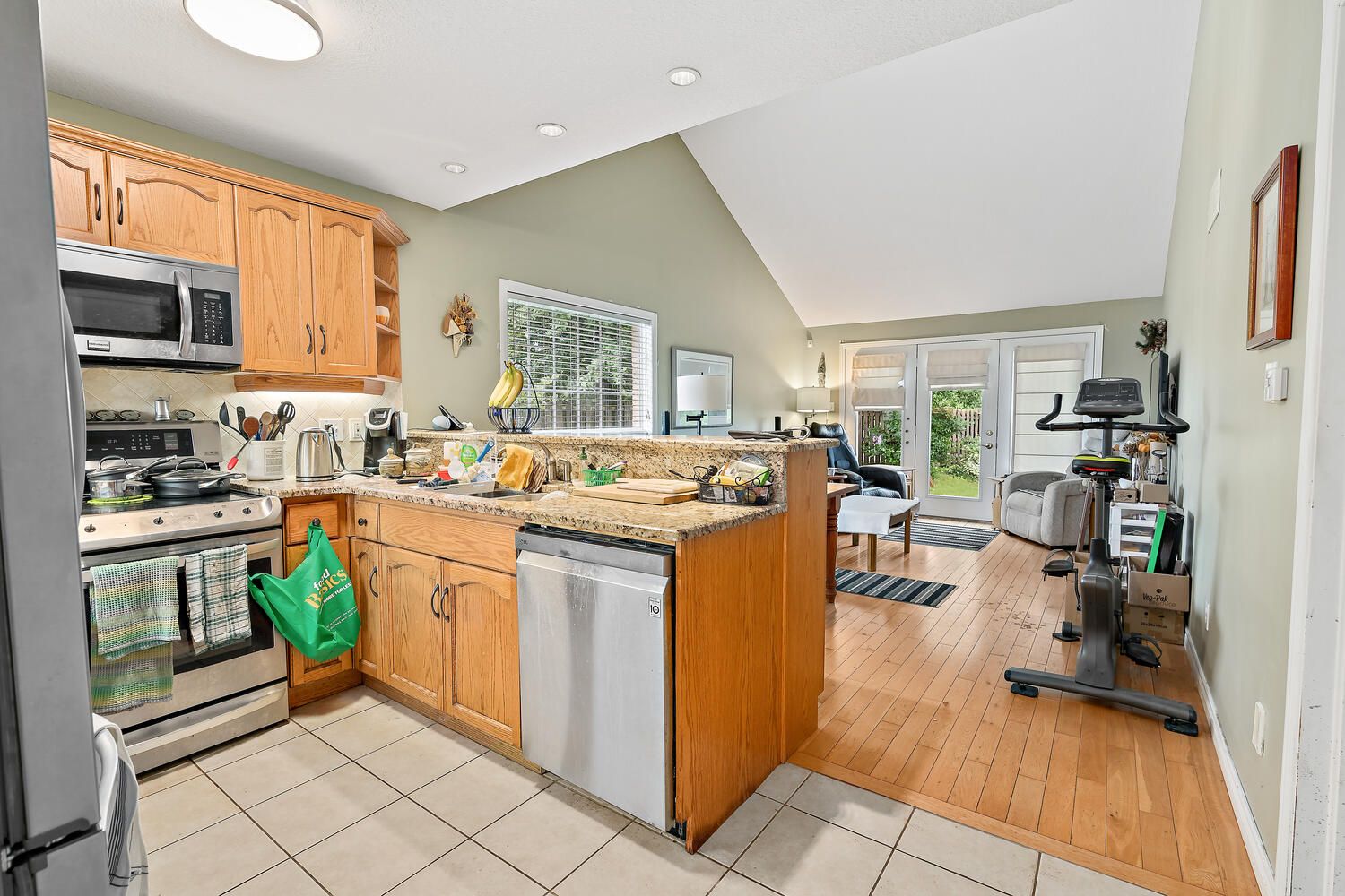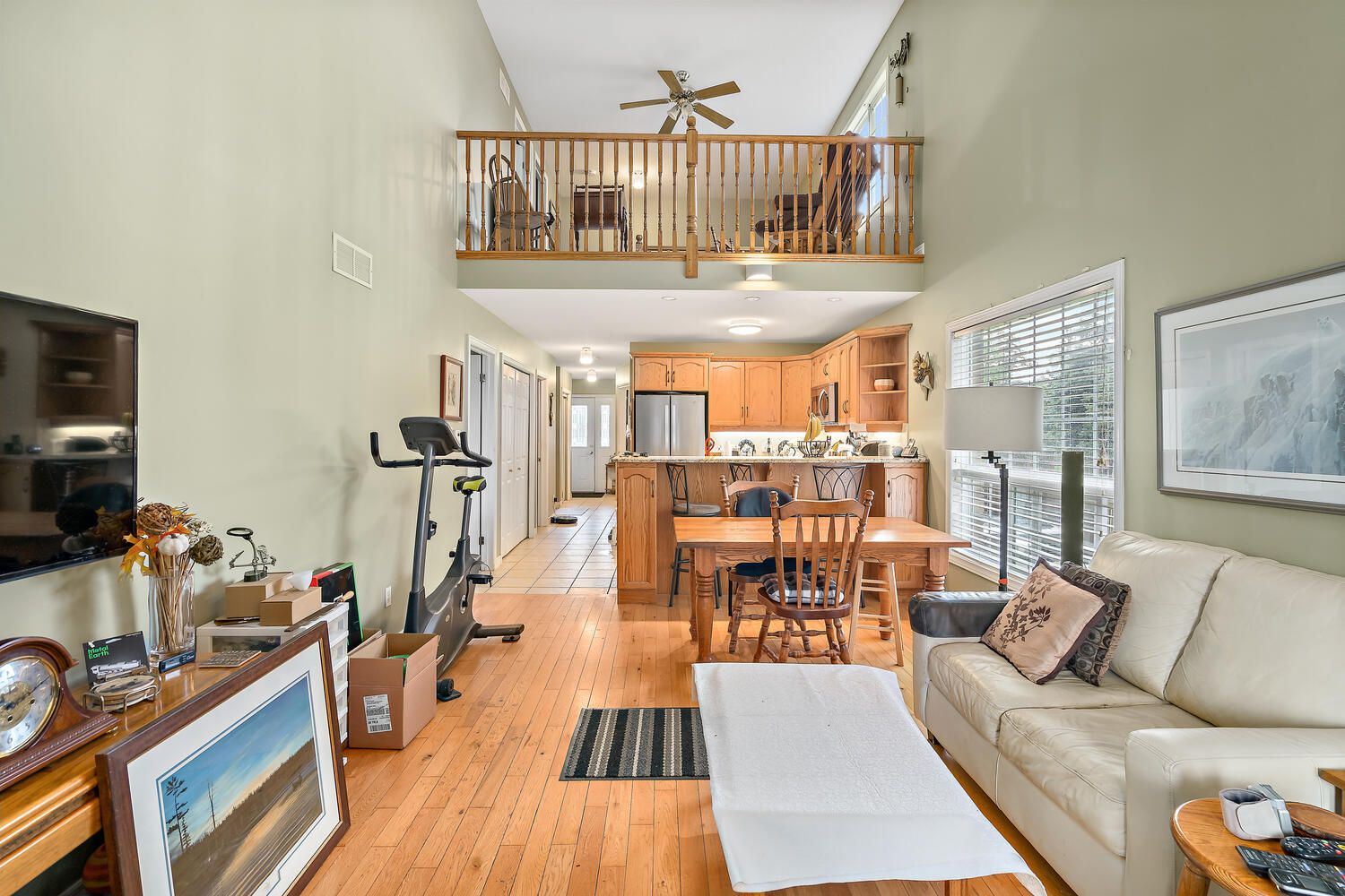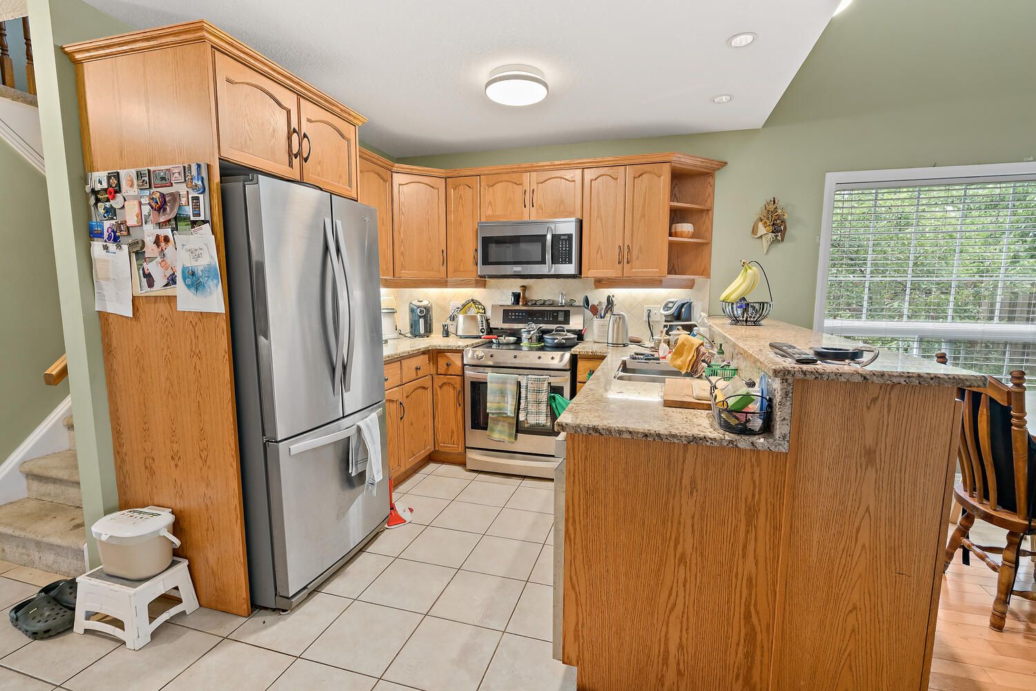 This stunning bungaloft townhouse offers spacious living with desirable features. Spanning 1439 sq ft, it has 3 beds and 3 baths, ensuring comfort. Located on a quiet cul-de-sac, privacy is guaranteed without condo fees. The open-concept main floor boasts a modern kitchen with a raised breakfast bar. Cathedral ceilings add grandeur, and optional laundry access in the pantry offers convenience. The primary bedroom has a walk-in closet and semi-ensuite. Upstairs, a loft area includes a full bath, third bedroom, and sitting area. Features include a cold cellar and garage access. The large reverse pie-shaped lot provides ample outdoor space for activities. Step onto the cedar deck to admire mature gardens. Backyard access is available through the garage. Enjoy luxurious living in this exceptional property.Access to shops, amenities, and GO-Service. Together, the end unit location, quiet cul-de-sac, unique reverse pie-shaped lot, and convenient location make this property a rare find that's sure to impress.