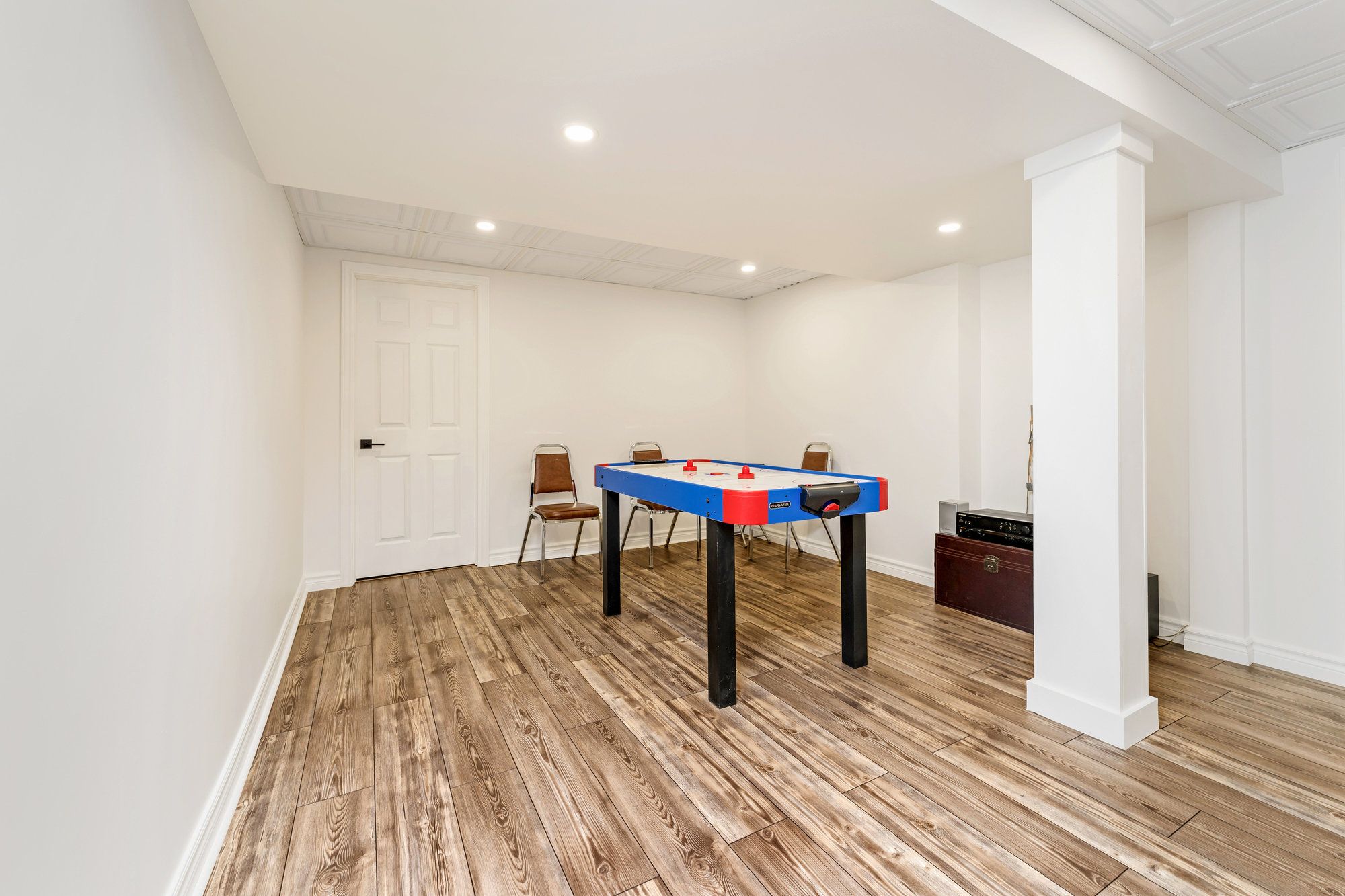 Well appointed Charleston bungalow with 9 ft ceilings and hardwood throughout the main level. Large eat in kitchen with SS appliances open to the Great Room w/gas fireplace and access to the private landscaped backyard. Primary bedroom boasts ensuite and walk in closet w/organizer. Main floor laundry. The lower level is perfect for multi-generational family or overflow with large bedroom w/walk in closet, full bath and new kitchen with quartz counters and vinyl waterproof flooring . Wall to wall built-ins in rec room and lots of space for a home office. Upstairs kitchen stove/dishwasher (2022) Fridge/microwave (2019) Basement kitchen appliances (2022) This home has been well maintained.Rental: Hot water tank