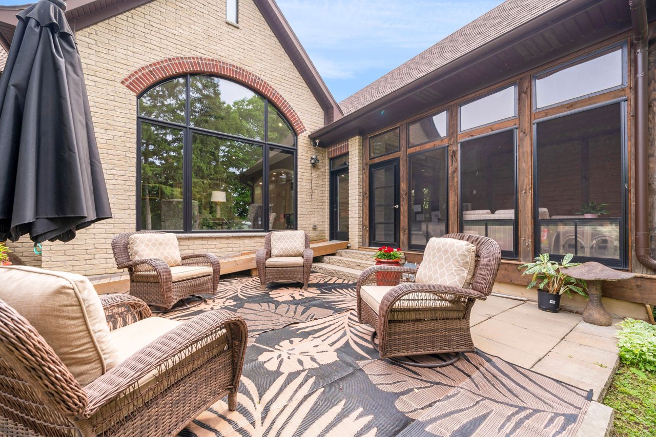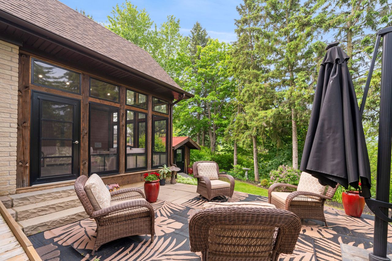 When only the best will do! This could be the one. A larger parcel of land. Property encompasses the area of one full lot plus half of another adjacent lot. Welcome to one of Georgetown's most beautiful custom bungalows, perched above the ravine with breathtaking views right from your great room. A rare offering on one of our most sought-after streets, this 2821 sq ft home blends timeless elegance with exceptional craftsmanship and thoughtful design. Inside, every inch of this residence is finished to the highest standard, from the exquisite millwork to the luxury fixtures and finishes. The heart of the home is a show-stopping Aya kitchen, anchored by a stunning stone feature wall and a 60-inch Wolf range complete with six burners and a French plaque, perfect for entertaining and gourmet cooking. The oversized island invites connection, conversation, and casual meals, keeping everyone part of the moment. The great room is warm and inviting, with a feature fireplace and wall-to-wall windows that frame the natural landscape like a piece of art. Step just beyond the kitchen into the expansive three-season room wrapped in wood and oversized windows that swing open to let the outside in. Its a peaceful, private spot to sip your morning coffee or unwind in the evening. A heater extends the seasons, making this space a true lifestyle enhancer. The primary suite is a sanctuary all its own, with a spacious walk-in closet, custom cabinetry with built-in lighting and fan controls, and a luxurious ensuite complete with soaker tub and walk-in shower. Imagine turning off the lights in bed with the touch of a button, drifting off to sleep at night then waking up to realize it wasn't a dream. This is home. There's so much more here than meets the eye. A full list of thoughtful features and upgrades is available including details that even the most discerning buyer will appreciate. Homes like this don't come along often.